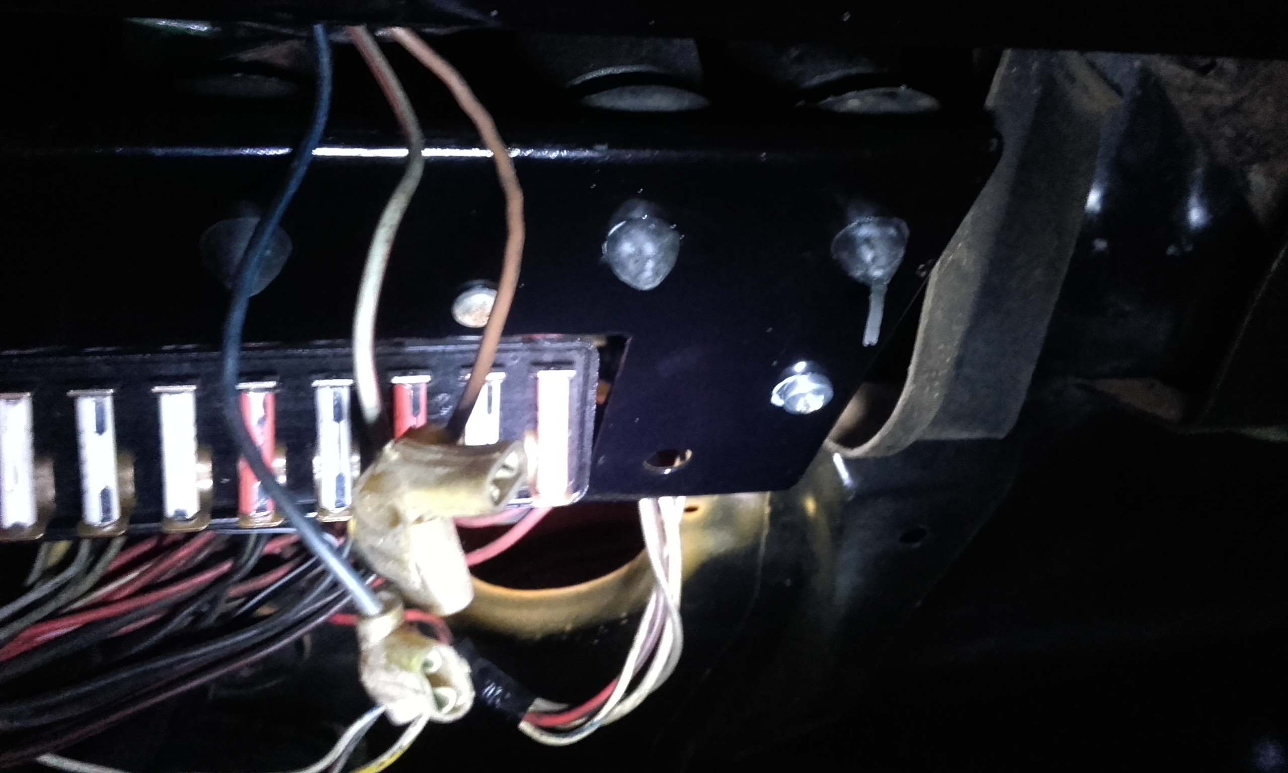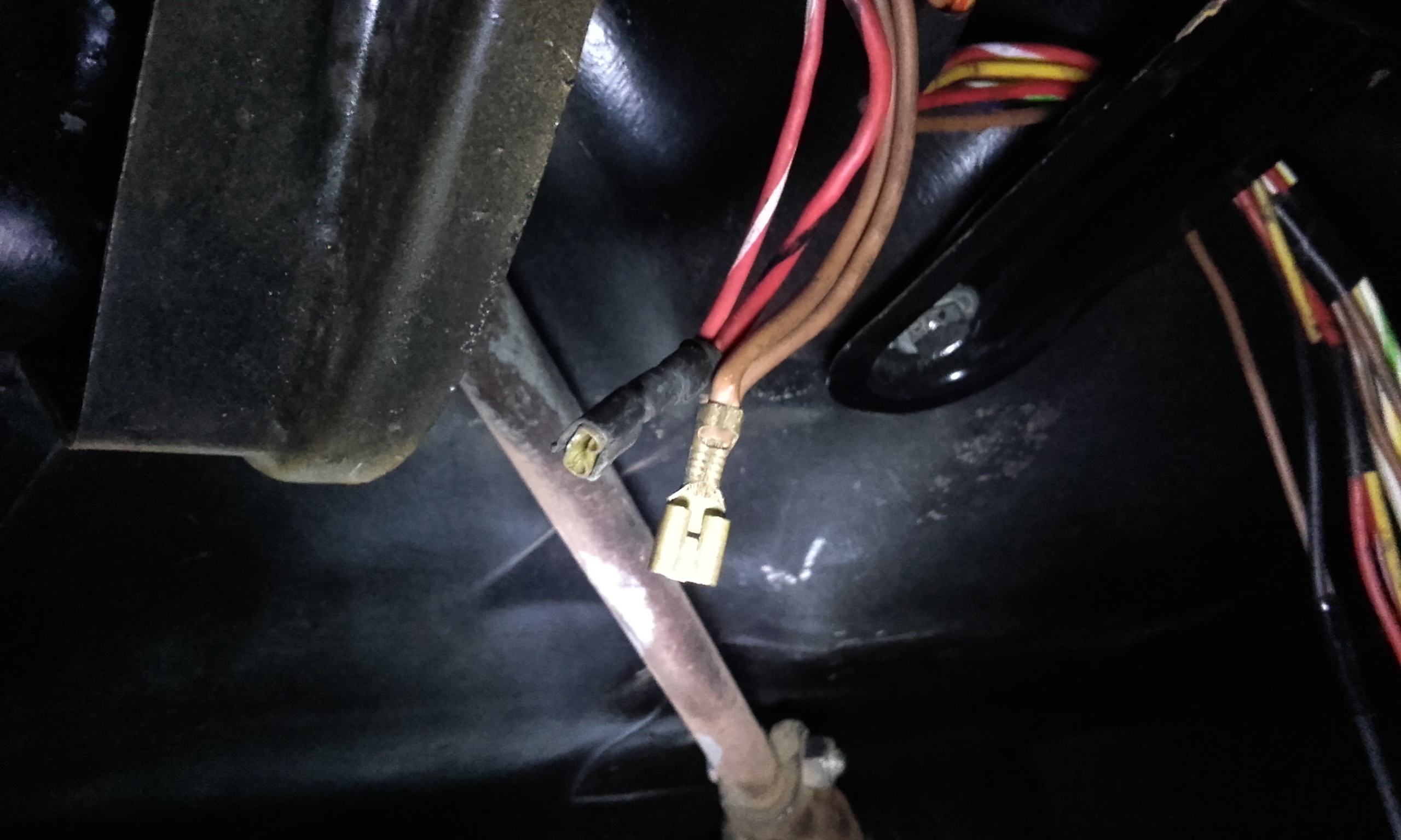 Red/white (red with a white stripe) -- switched power, goes from the fuse box and the relays on top of the fuse panel to a lot of things in the car. Solid brown -- ground. Always ground. Black/blue -- instrument illumination. Hot when the headlights or parking lights are on. Yellow/red, thin -- wire for the (optional) intermittent wiper setup. White/green -- parking light indicator wire, goes from the headlight switch to the speedo (I think?). Not sure if the black wire in your last pic has a stripe on it or not. If not, it would be constant power, and either run to the clock in the (optional) center console, or to the cockpit light in the backpad. If it has a stripe, its function would depend on the color of stripe. --DD |