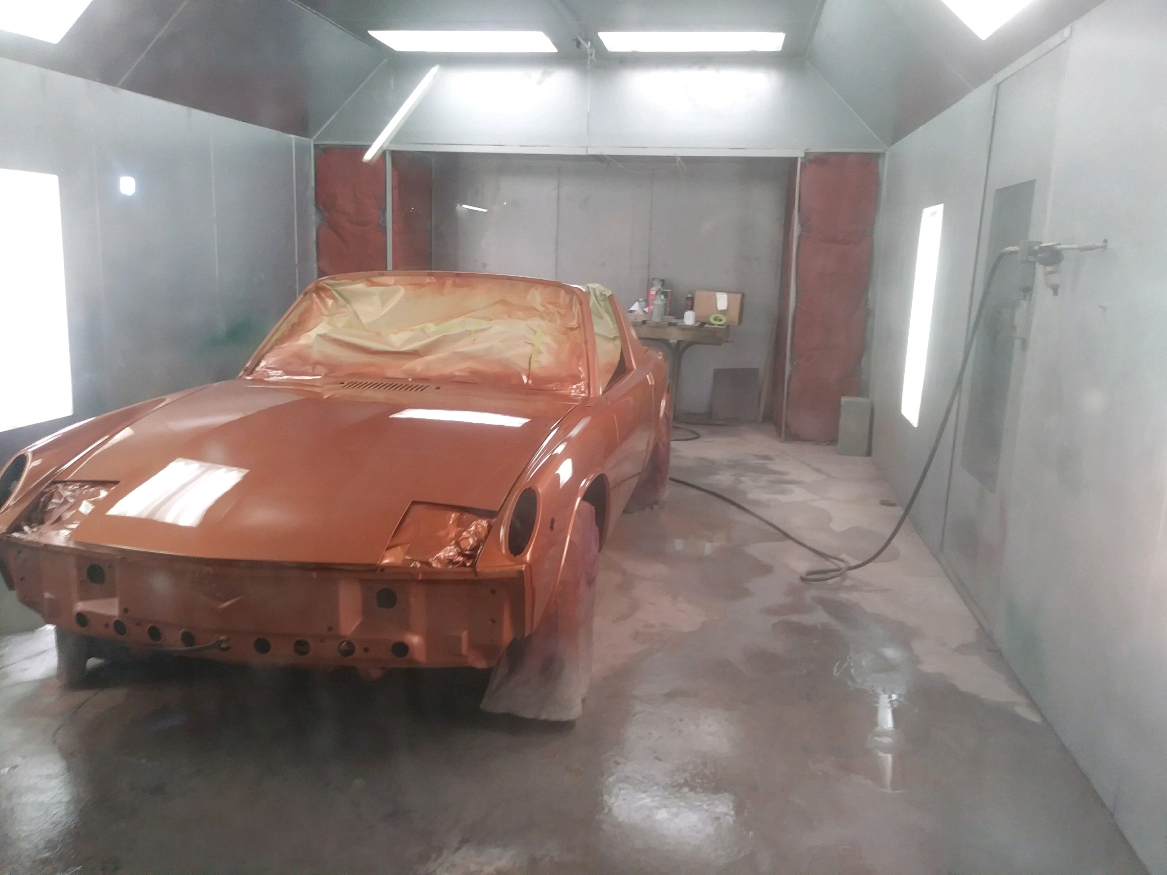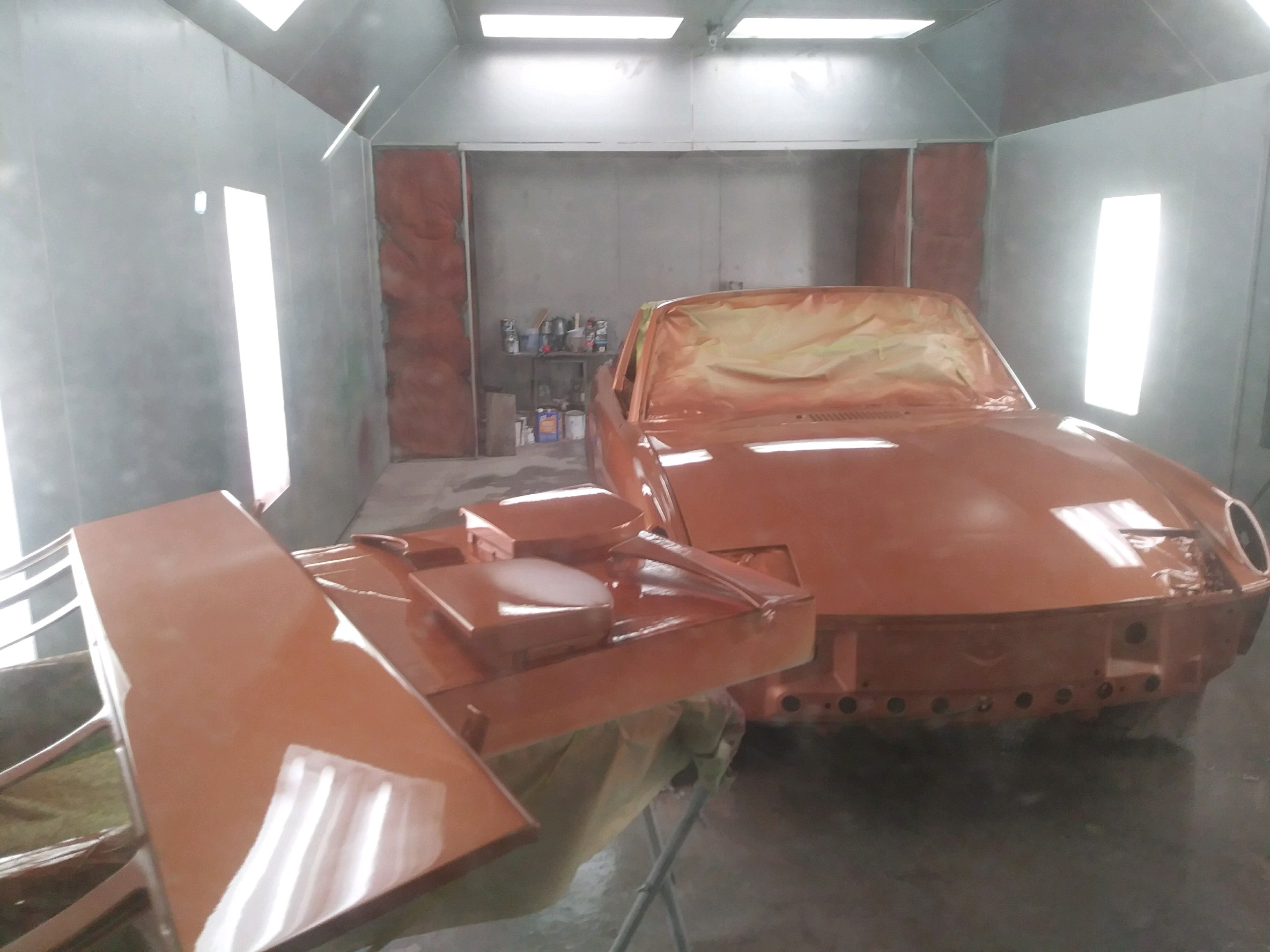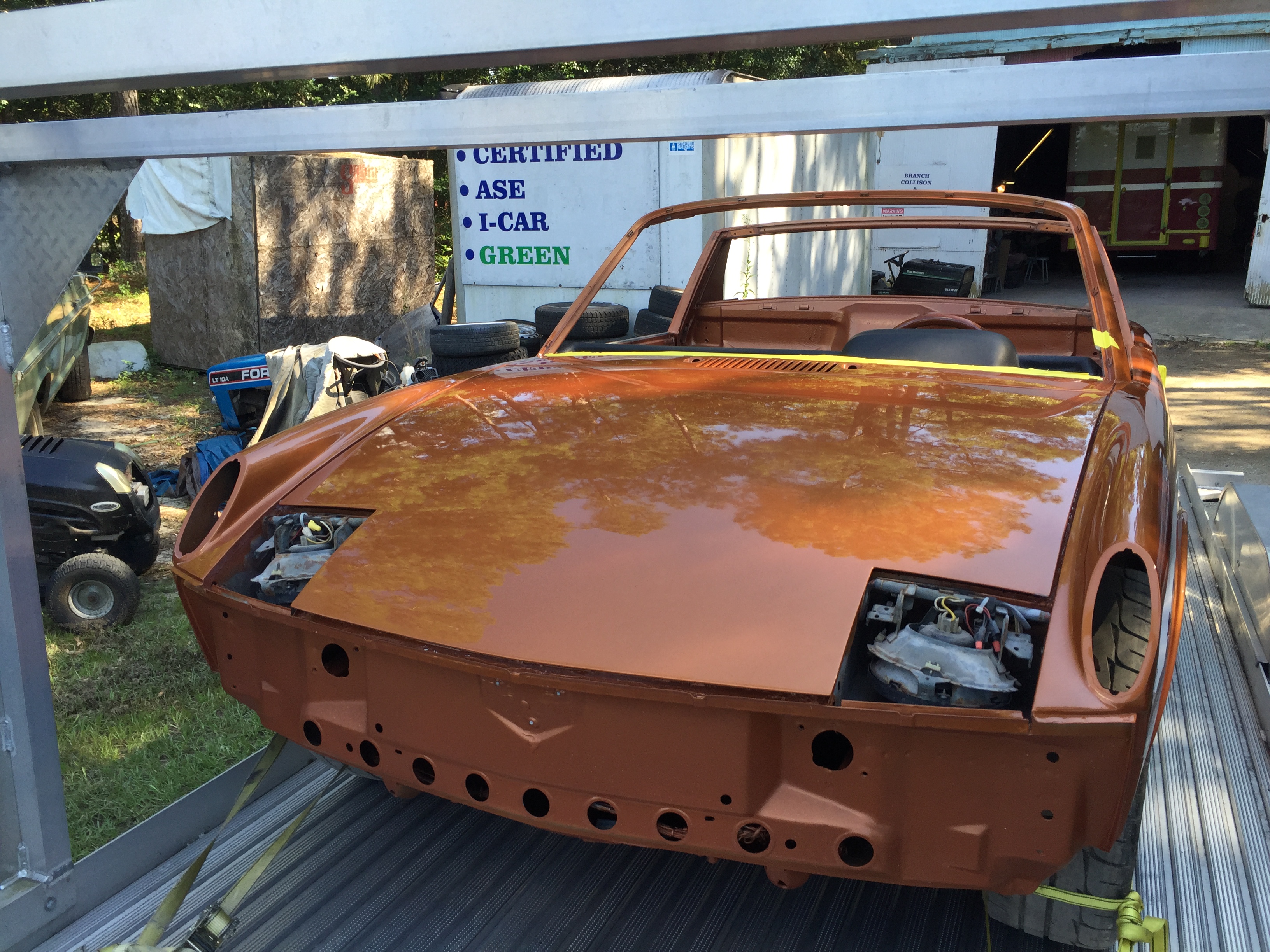 30 days to cure so no cover , no wax, just light polish or buff. there are a few spots to buff up- I have to take it back next month for 2 days, there are a few spot to touch up and he didn't fully paint the under side of the targa bar, he missed this actually he thought it was covered like the top- like I said, he has done many cars, many classics, just not a 914, and I stripped most of it down so he didn't know - no biggie, it will get done- that part was still original paint and even the original plugs for the the rack mounts are still there too. in the mean time I can get all the rest of the stuff put back together, motor , etc etc. lights and electrical , get the wiring run for the head temp gauge. , get the front air box rebuilt and installed if I cant find one out there to save me the time- hello, anyone have one?