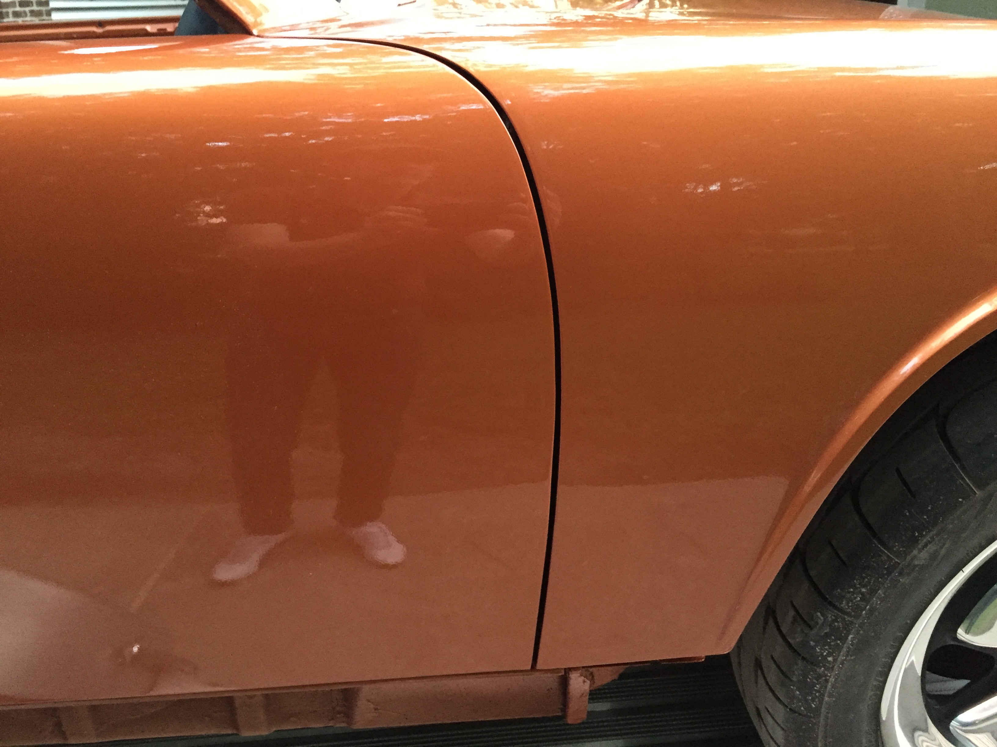 does anyone remember what my rear wheel wells and fenders looked like? yes the 7" fuchs will fit no rubbing and these look stock but actually are about 3/4" more room than before- first work replacing the arch was Ed at Tangerine Racing when the did the floors and jack points, and they pounded them out quite a bit , all metal work, they just were not paint ready, Mike finished it all off and i am very pleased with the results!