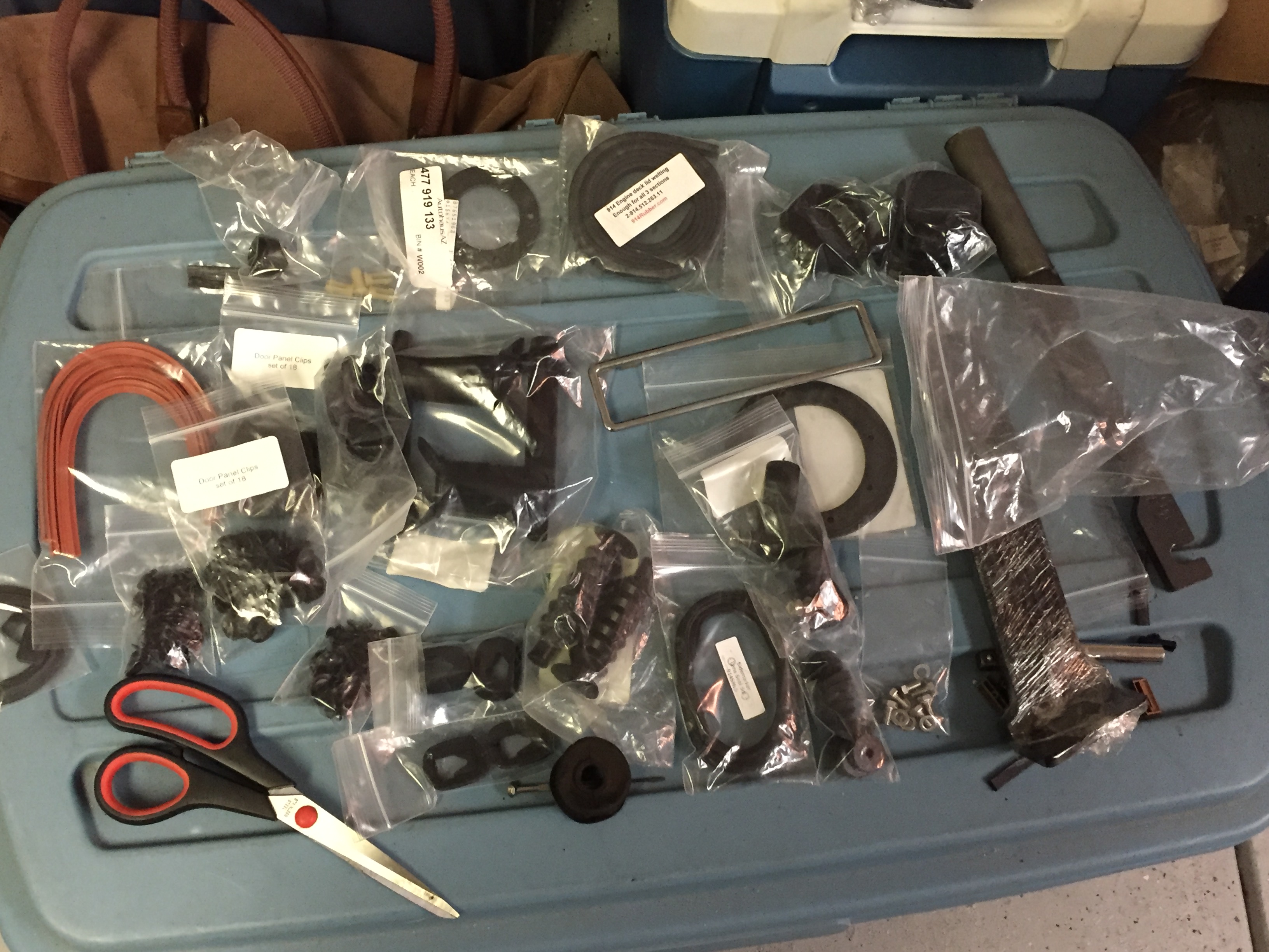 more stuff from Bruce! now i can get my doors put back together , will look and work like new! as luck would have it i won brand new outer door handles from Stoddard 2 years ago at the Okteenerfest! very excited to get at this stuff this weekend! New windshield scheduled to be delivered to Porsche tuesday! i am also getting the full door rebuild kit from 914rubber. door assembly will be interesting, it is nice to be able to put it all back in rust free doors!