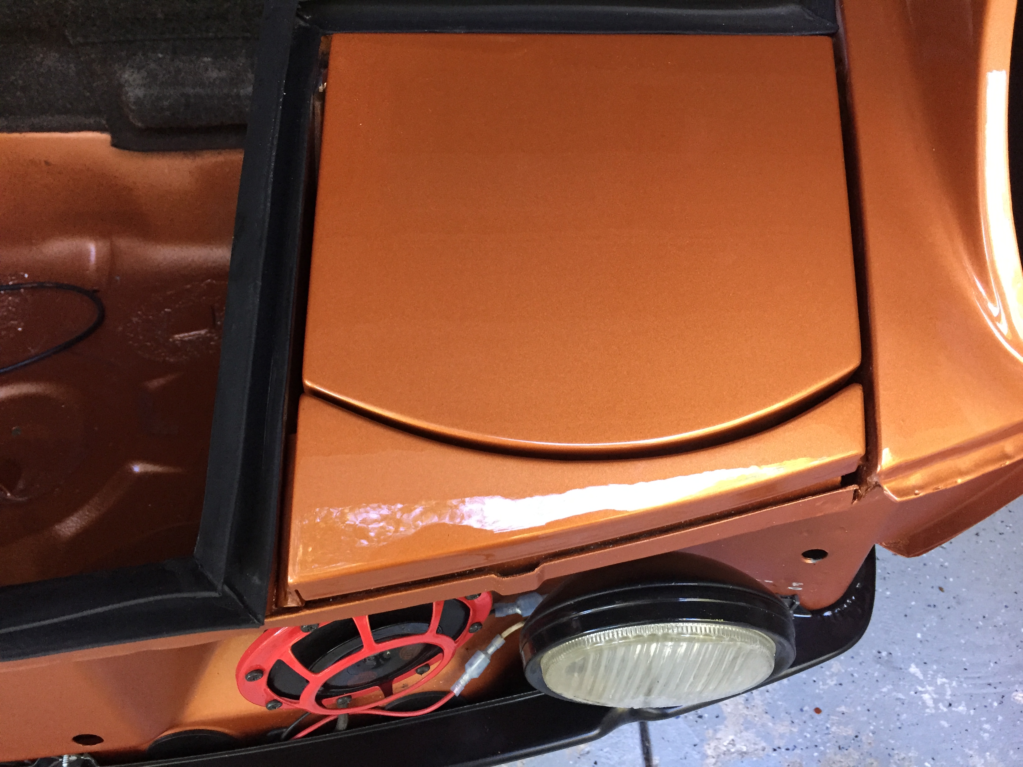 been a long day already, drove 2 hours up to the shop and picked up the car again, took it up last week to get a few things soeted and touched up. got home and went to work! the front valence is on, next is the front bumper( this is my temporary one) What a car! If you get jammed for time for Okteenerfest my offer is still good. This car has to be there. I would leave mine at home to be sure everyone gets to see this! thanks for the offer, we will se where i am in a couple weeks. i am going to start at the front and work my way back. I need to figure out a solution on how to block the holes left behind from the old bumper shocks. I am most overwelmed with the rebuilding of the doors- i have all new hardware and seals including door stay kit- well everything but the actuator/scissors mechanisms. putting the drive train back in and getting all thst ready seems like an easier job since i have done that before |
