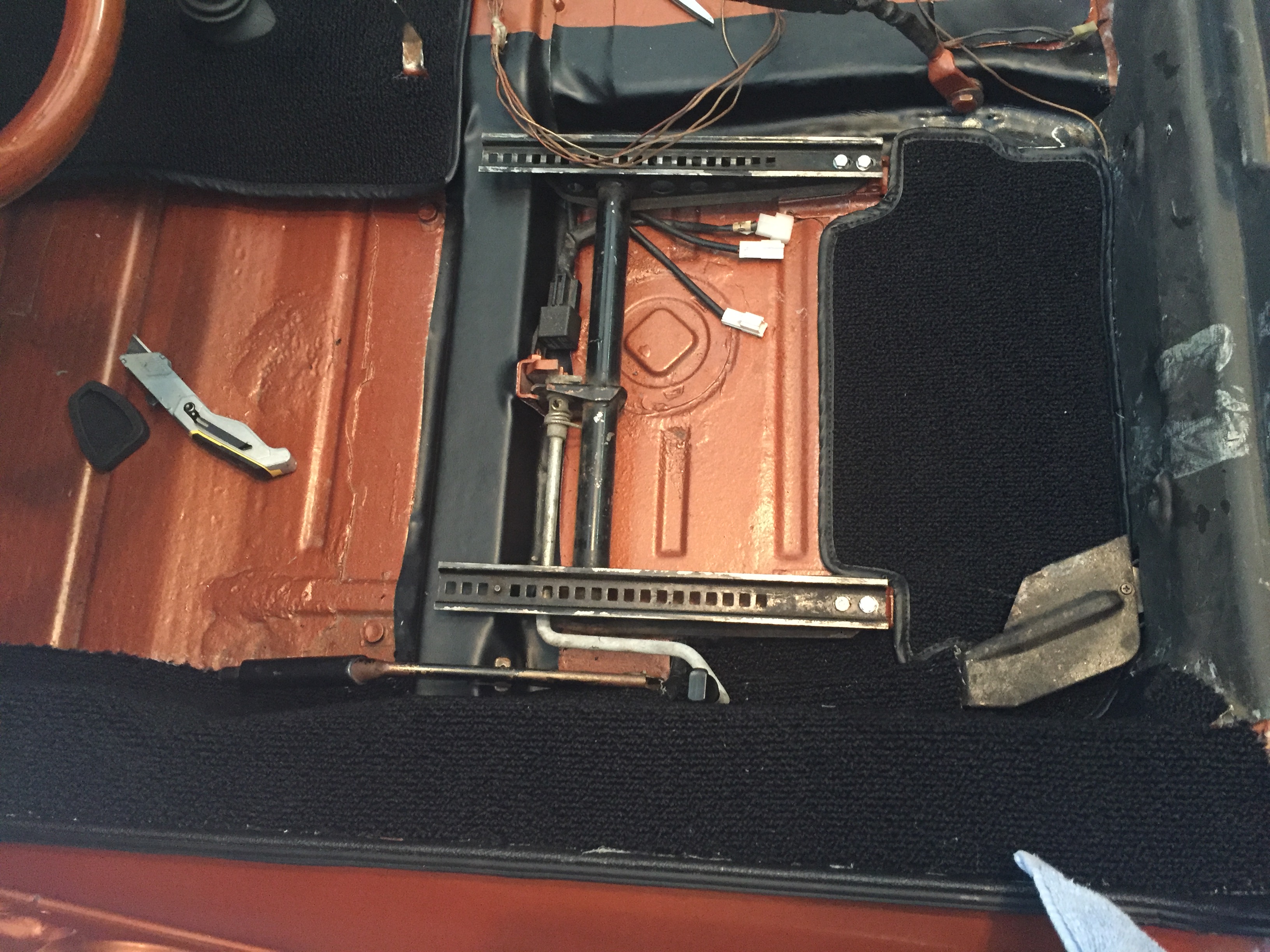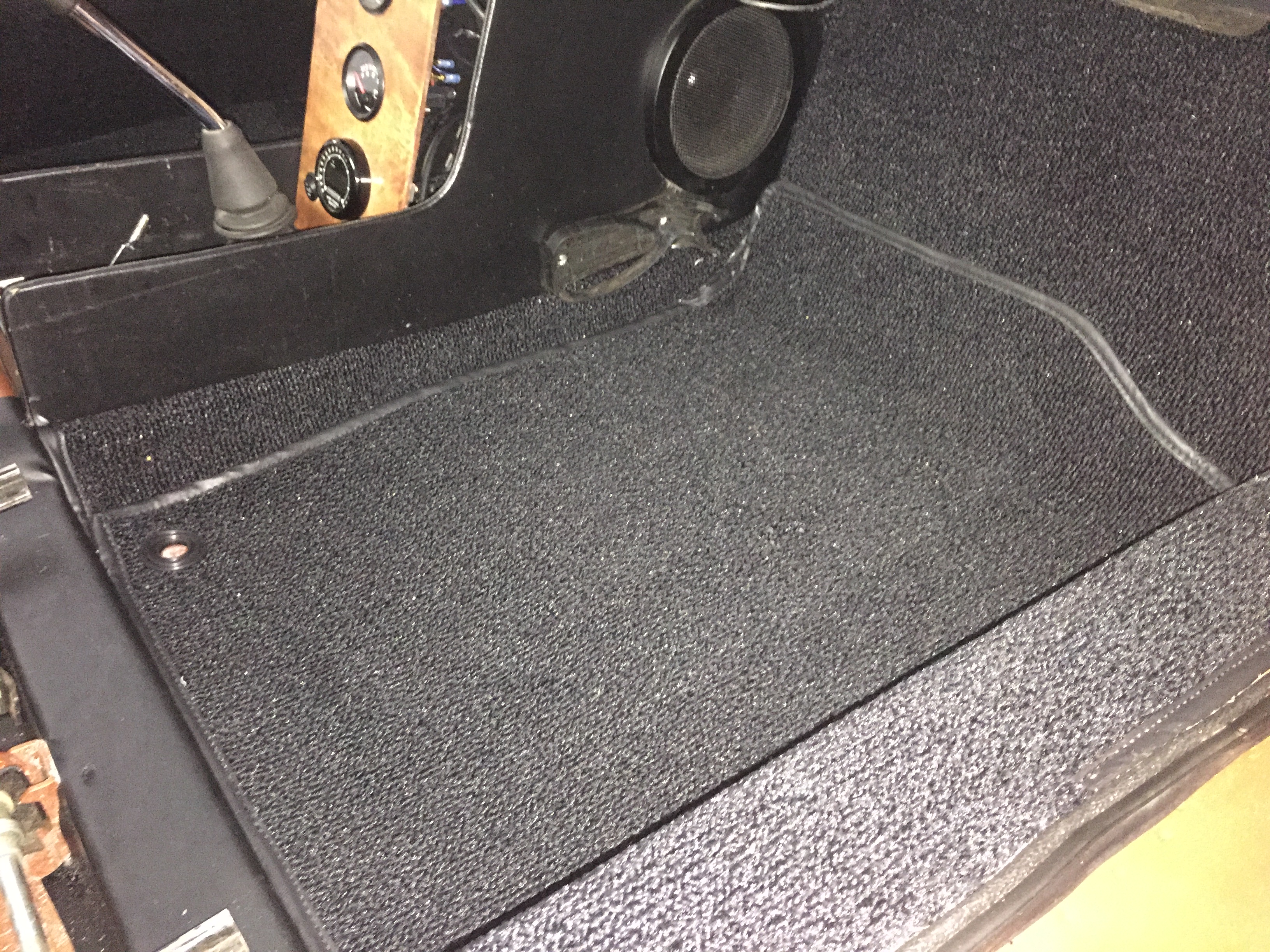carpets fit pretty good, Mark did a good job- slight alteration on the drivers side around the e-brake area, but turned out fine. i used up a huge can of spray stuff heavy duty, have to go back and get the stuff for the sail panel trim- Auto Zone does not carry the 3M 90, so i have to check out Advanced-
