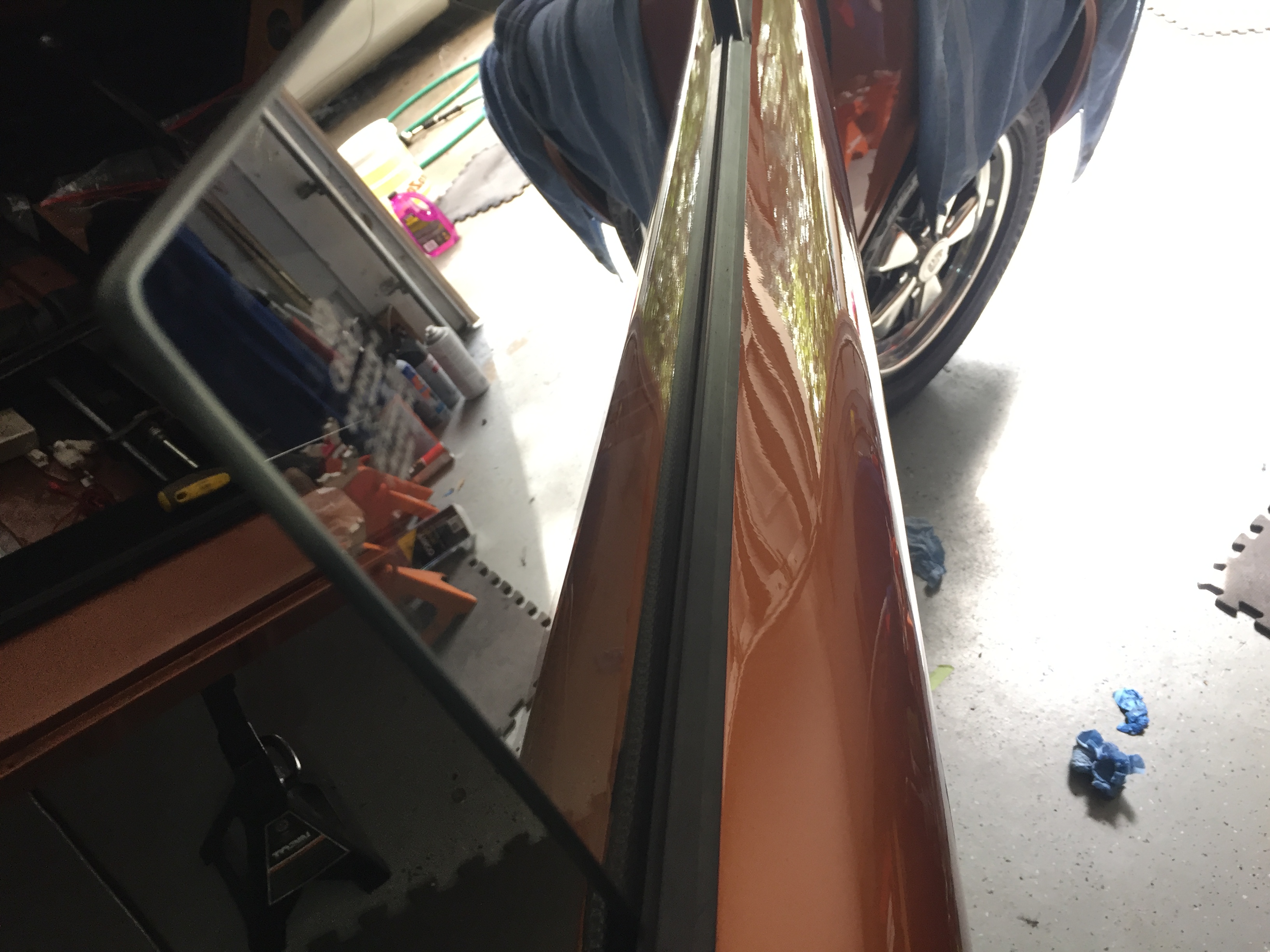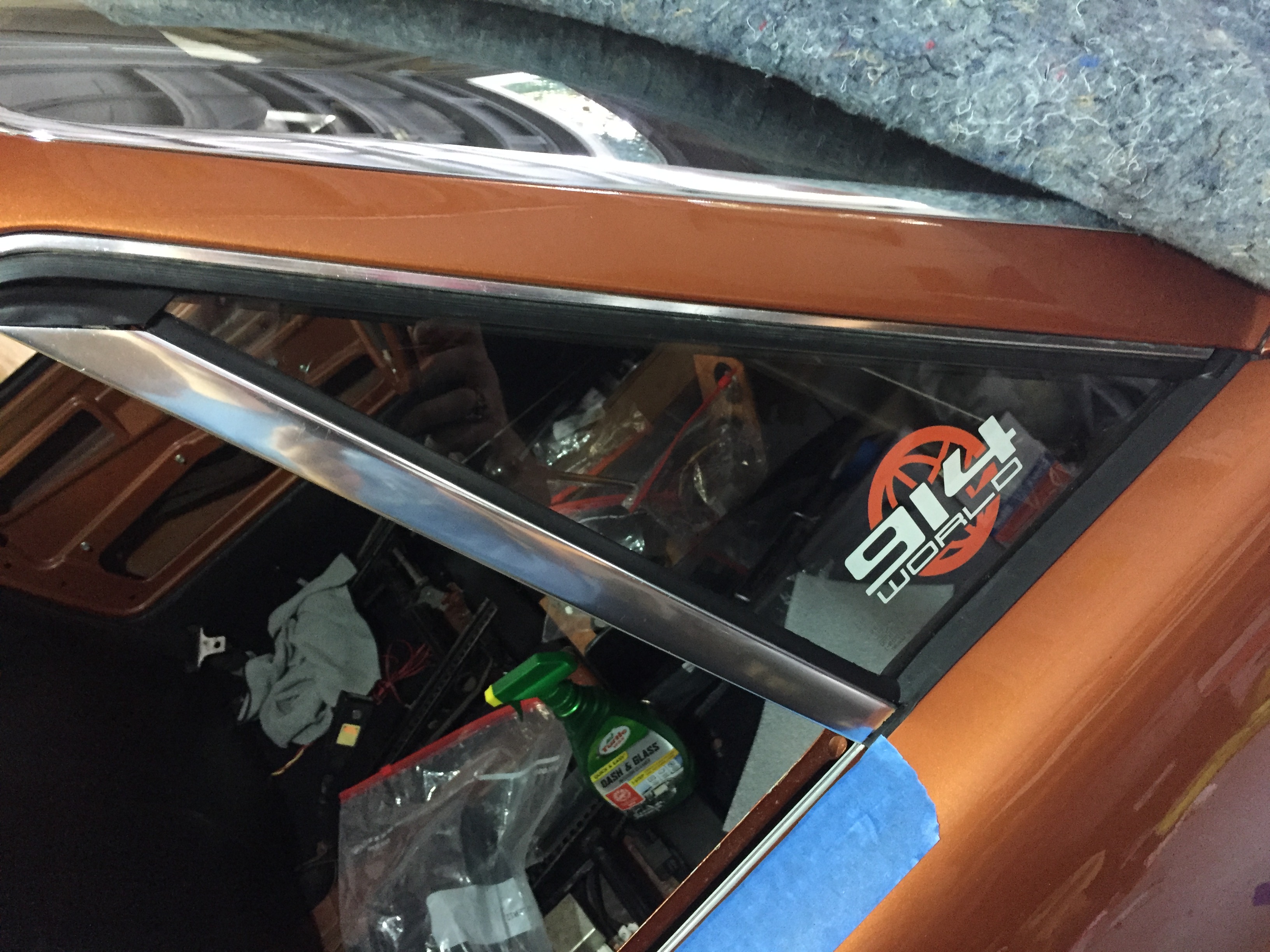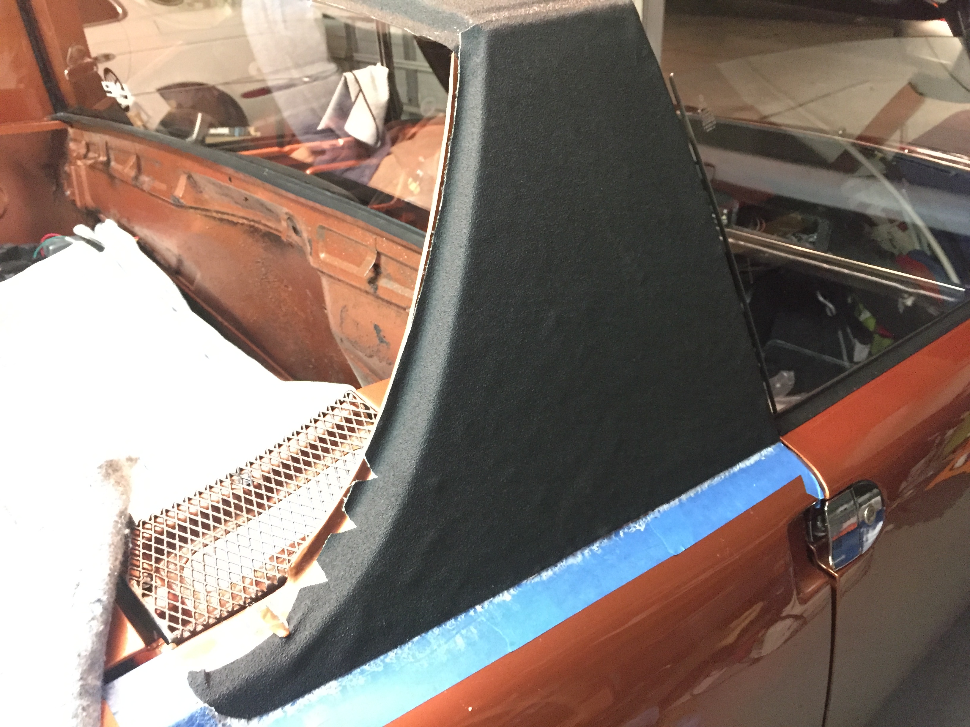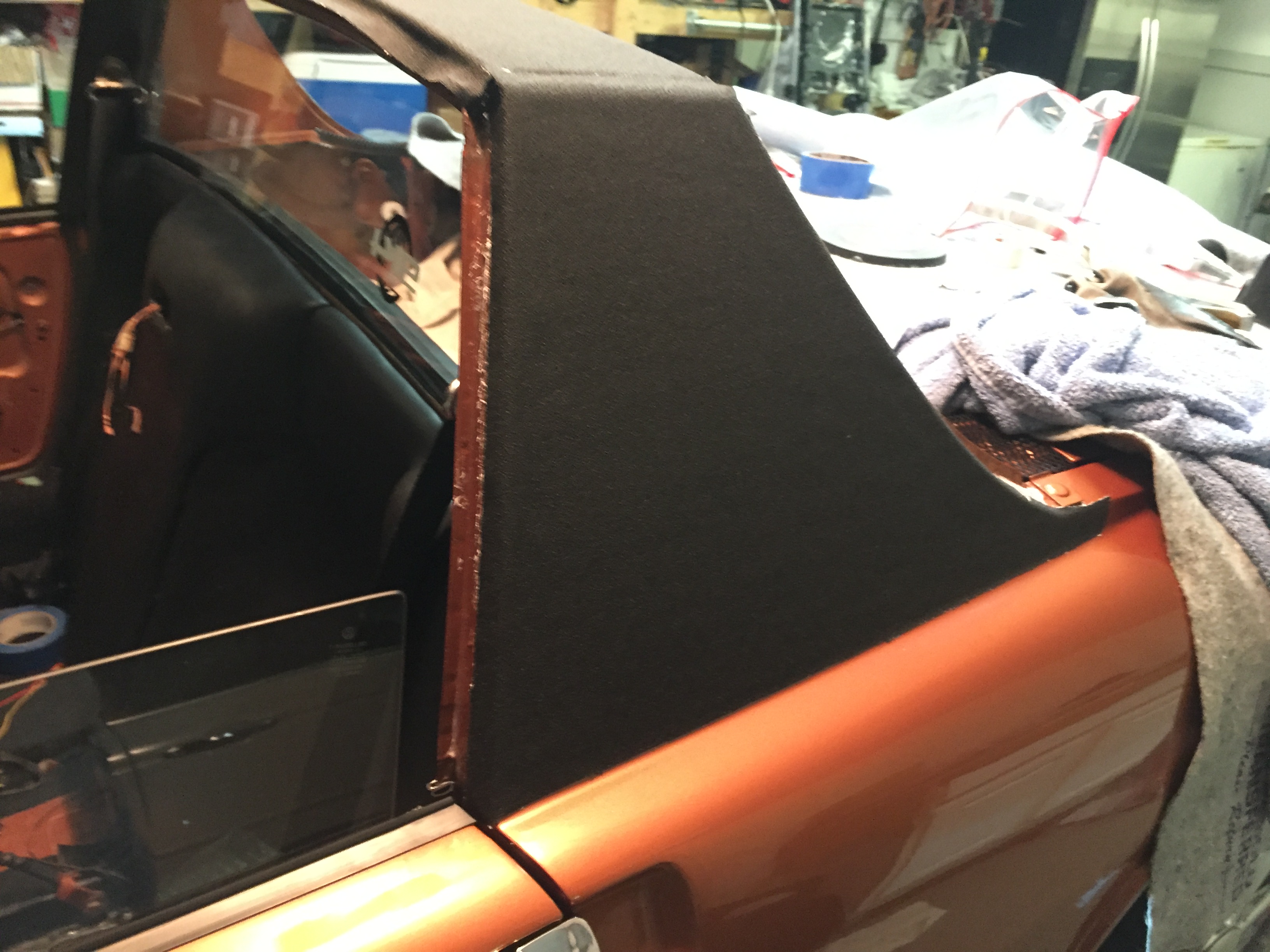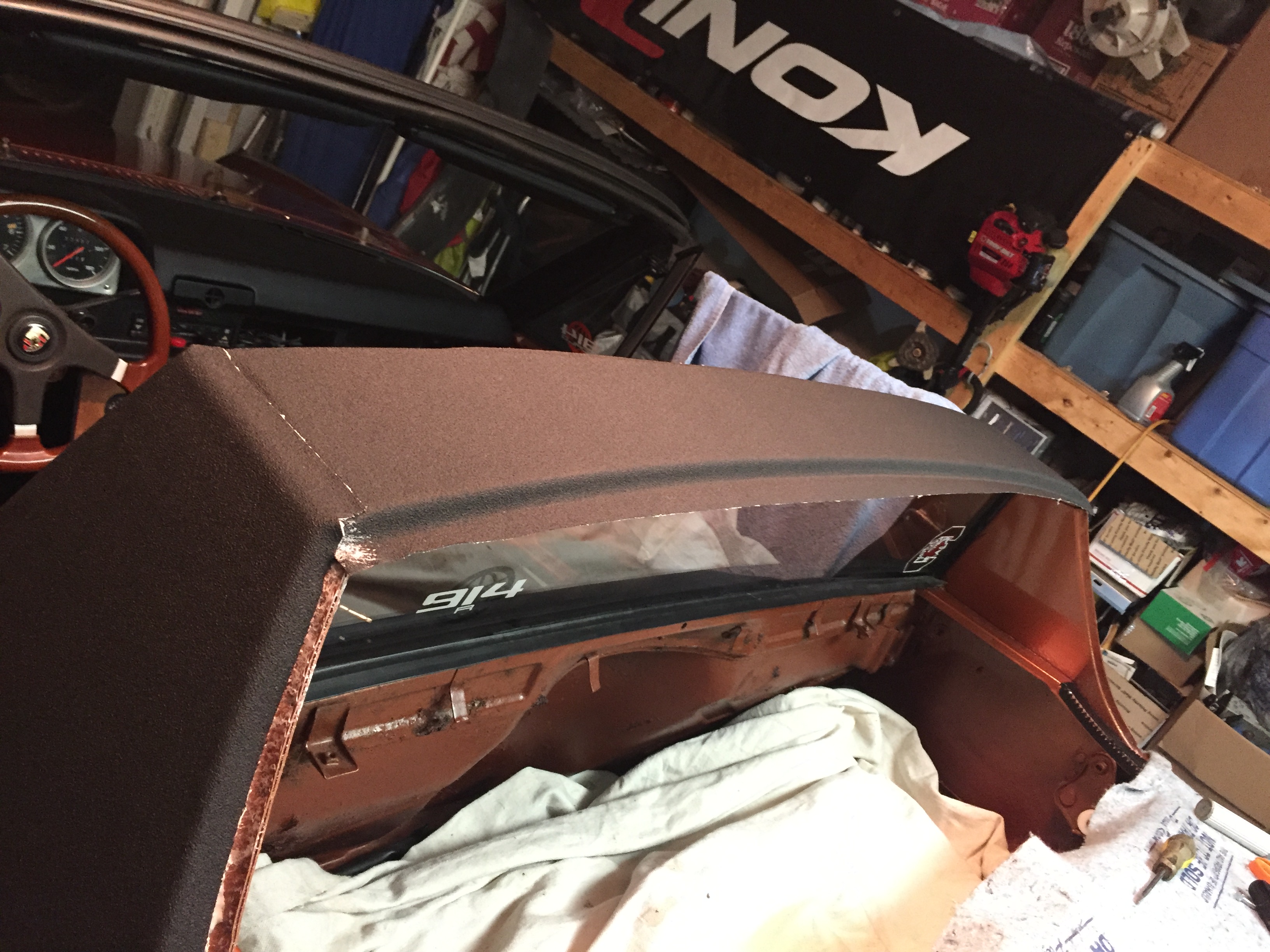 will probably have to re do the right side- I was a bit short on the cut and knew it might not fit, sure was tight , i think it would have been ok but no room for errors, well i had to pull it off and my mistake was trying to put it back on, cleaned up the panel, reglued it but it is now not smooth, a bit bumpy and that is not satisfactory so i have to reorder righr side sail vinyl- Calling Mark , hello 914rubber, i have a special request! Attached thumbnail(s) |