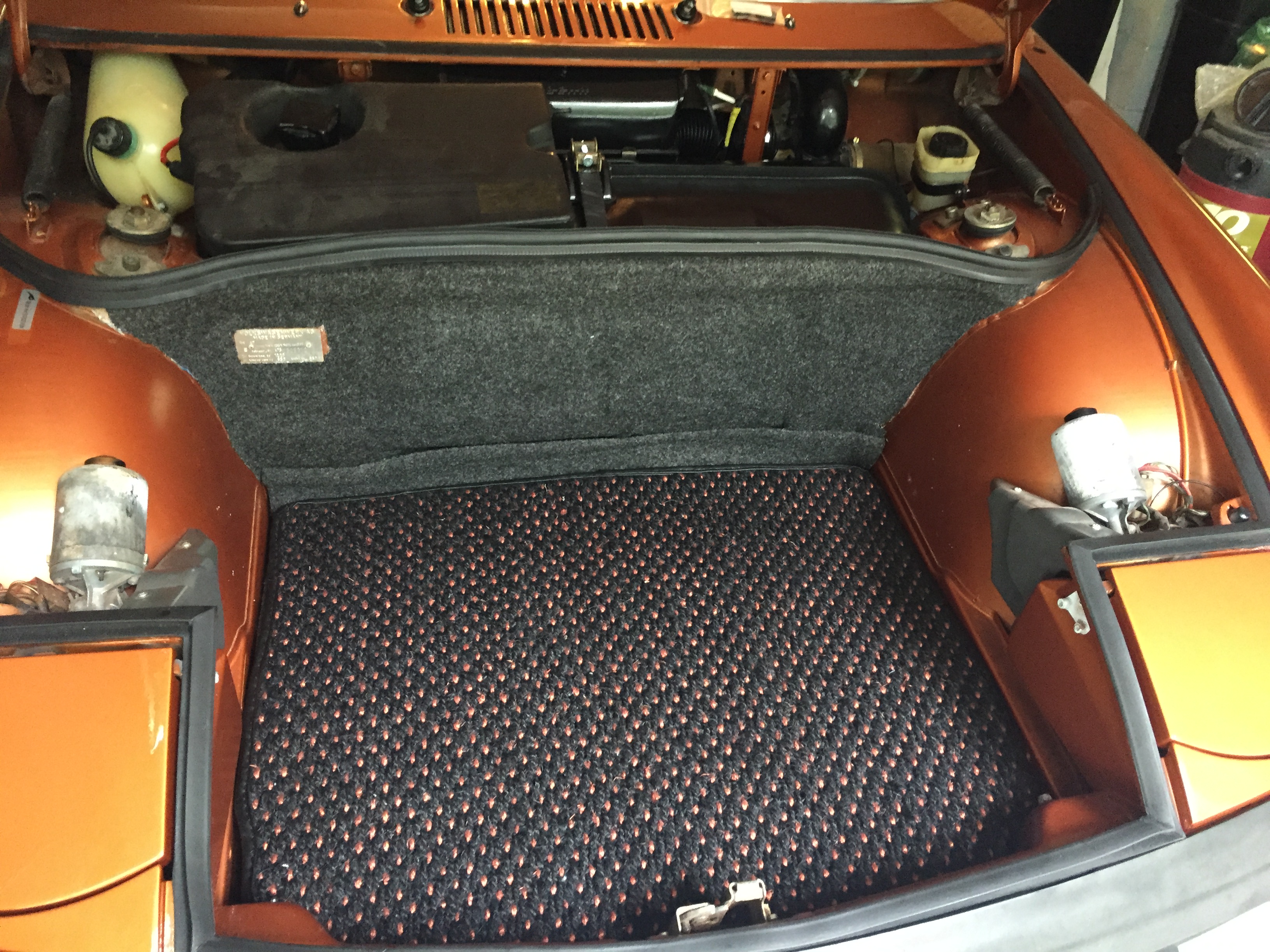 was some overspray on the old felt- also have a nice cocomat for front trunk
