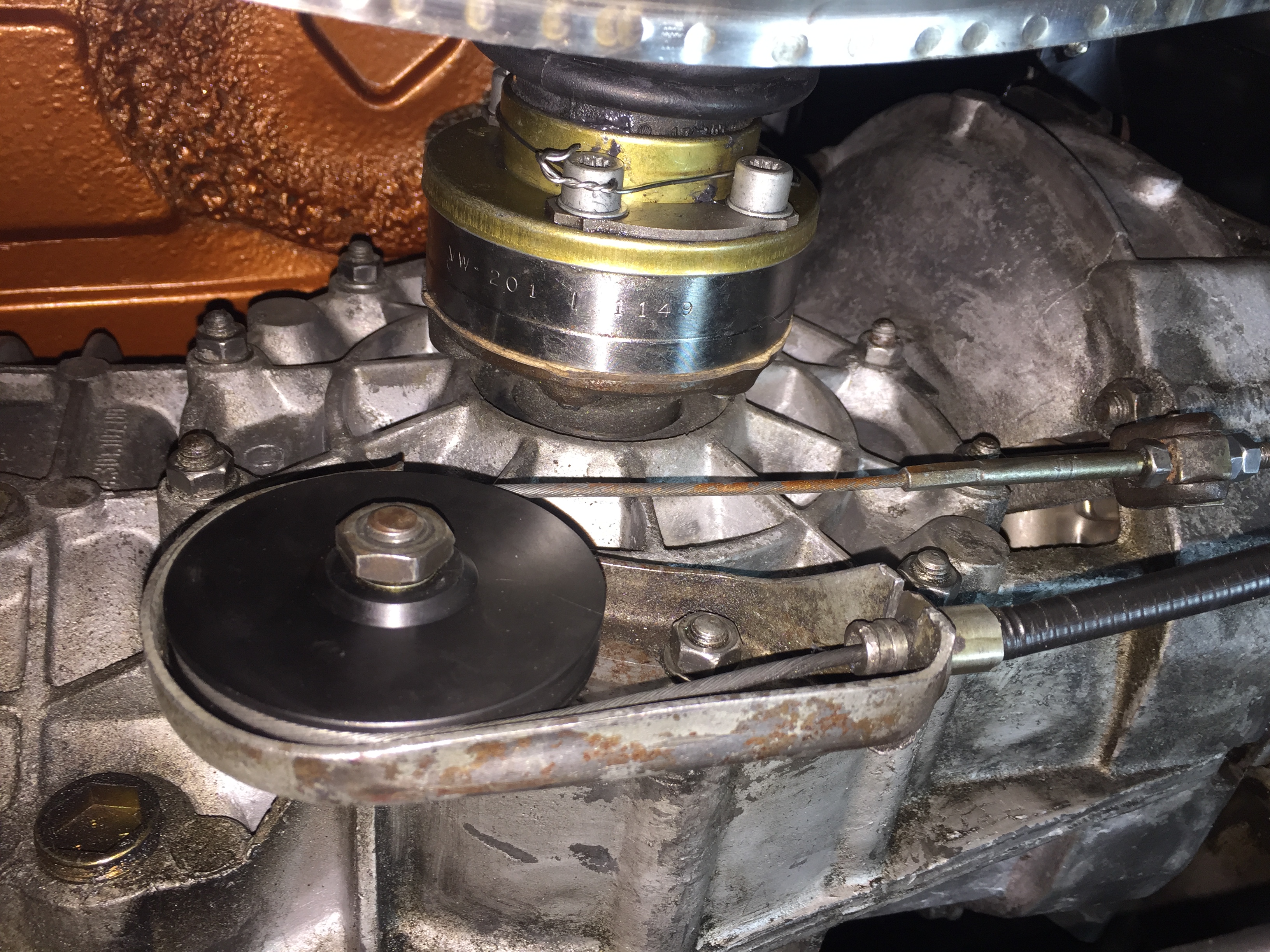 new CV boots, NOS from 914sixer, so now the 6 hole flange is gone, no more slinging grease all over! safety wire in place, also new retainer band on the shift linkage cover,