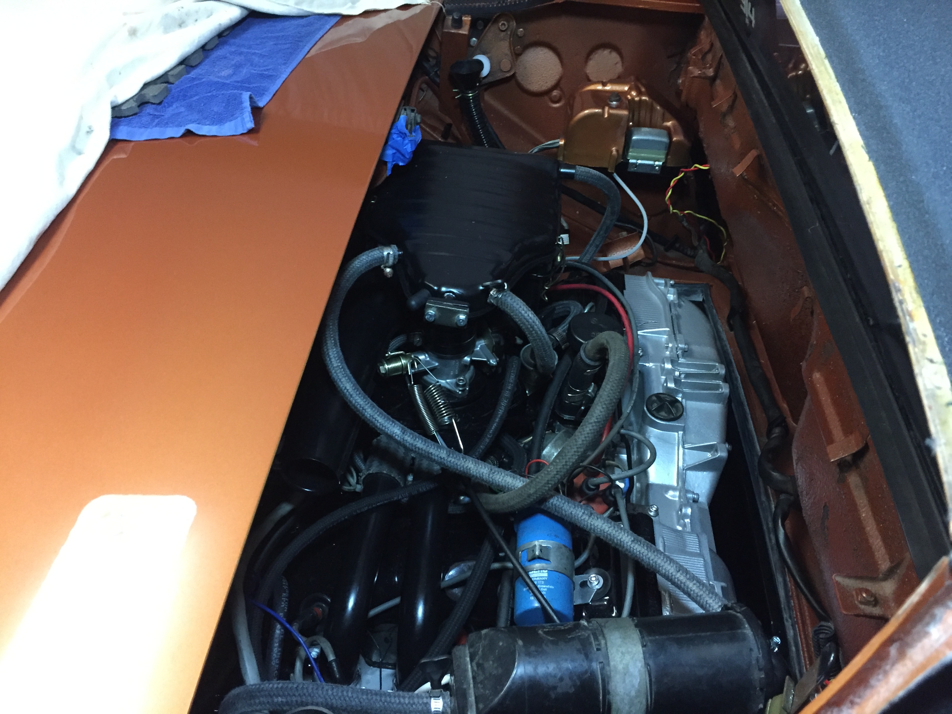When i started to get car ready for paint, it was running good but i noticed that the pump was becoming more noisy, so maybe a year of sitting did it in. i am hoping it is that easy. Tomorrow could be a long day! #1. figure out fuel pump #2. trouble shoot right rear tail light, left front euro conversion driving light is not working, but lights pop up all other lights seem to work. its hard to tell what could be the issue when there are so many things i worked on- new alternator and harness, all new fuel lines, fuel filter etc but i didnt change out the pump, or relay board, and the dash and fuse box is exactly how it was before. i have not yet wired the aux oil cooler fan, and it can wait. a few more pics from work today sail panel trim in! Attached thumbnail(s) |