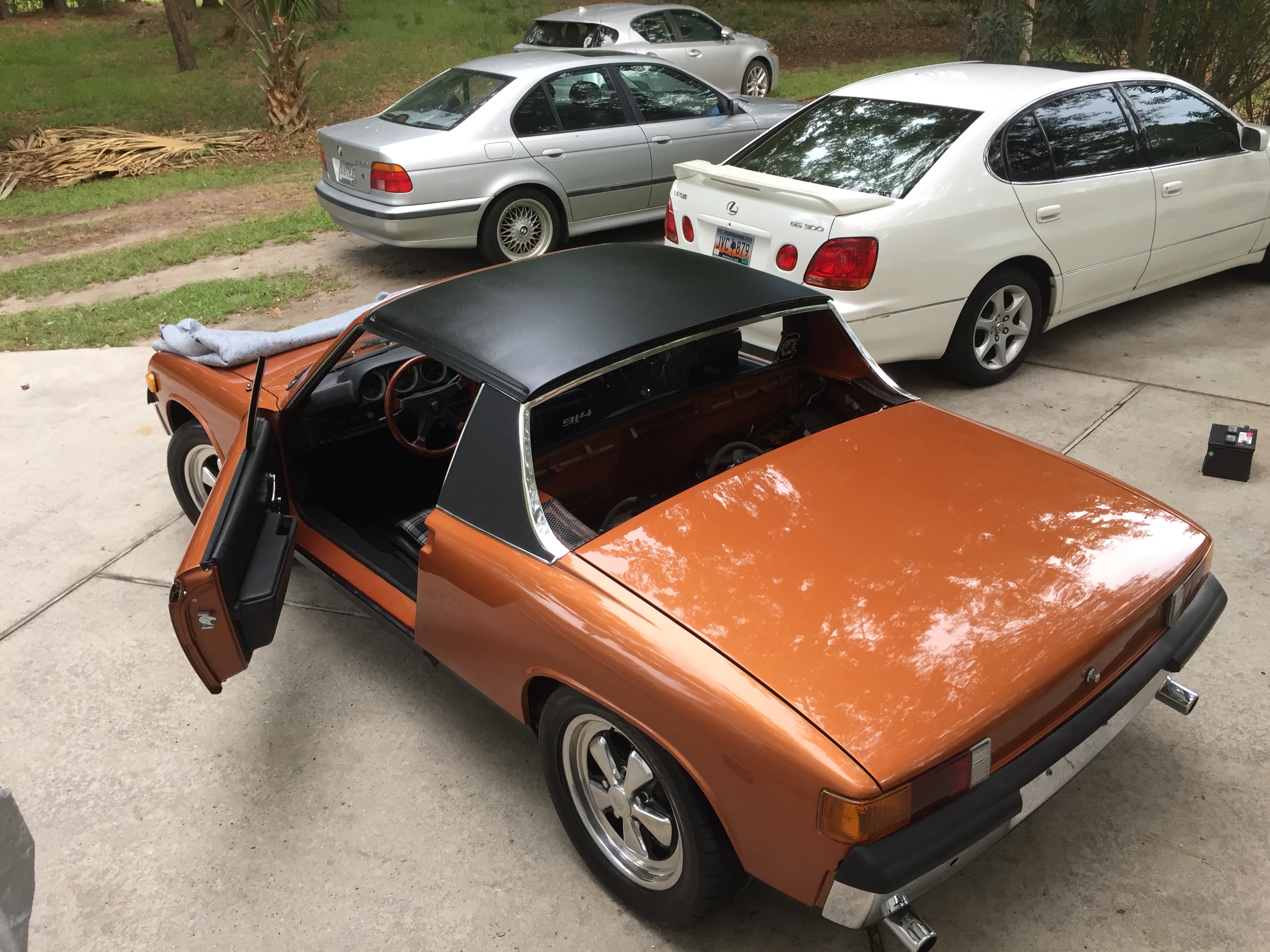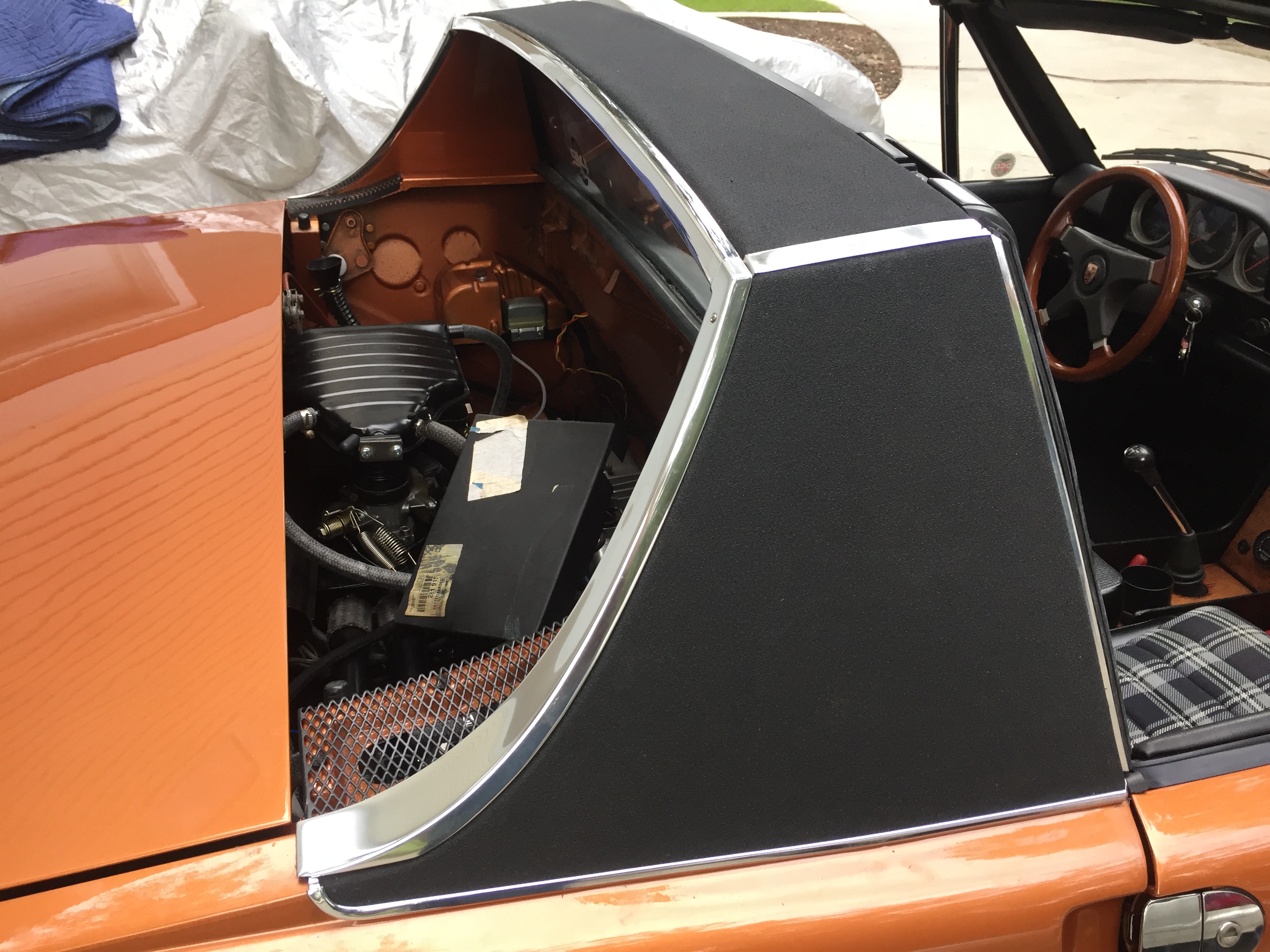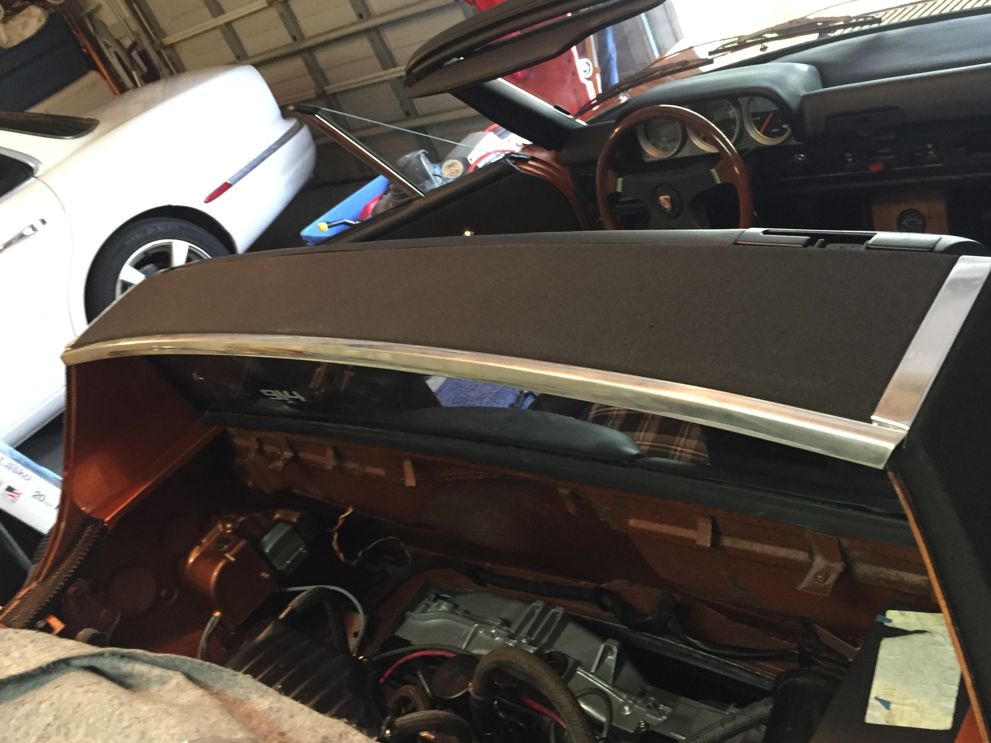 This rear targa bolster is the repro one being carried by 914rubber but i think has been made by AA - anyway the fit and finish is super and this will last a lifetime and not peel crack etc like the original ones. Yes, they can probably improve the grain to be more accurate for the concourse weenies but this is great for me and it really looks super, now for finishing off the rest of the trim around the targa bar/ sail panels. i have a few parts due in the next few days that i am excited about getting on the car to finish it up. Don't you mean "Concours Weenie?" FWIW, I prefer the term "Originalist!" (IMG:style_emoticons/default/lol-2.gif) Seriously, your progress is inspiring and the results, Amazing! (IMG:style_emoticons/default/smilie_pokal.gif) yep that too lol! well motivation has been not to miss the Okteenrfest! but i have to say i was going to give ip today, really close due to the oil line issue, but i am so close. i may have to install some stuff whenni get there , that is if the rain stays away. When you put in your sail panel trim, what adhesive did you use? |