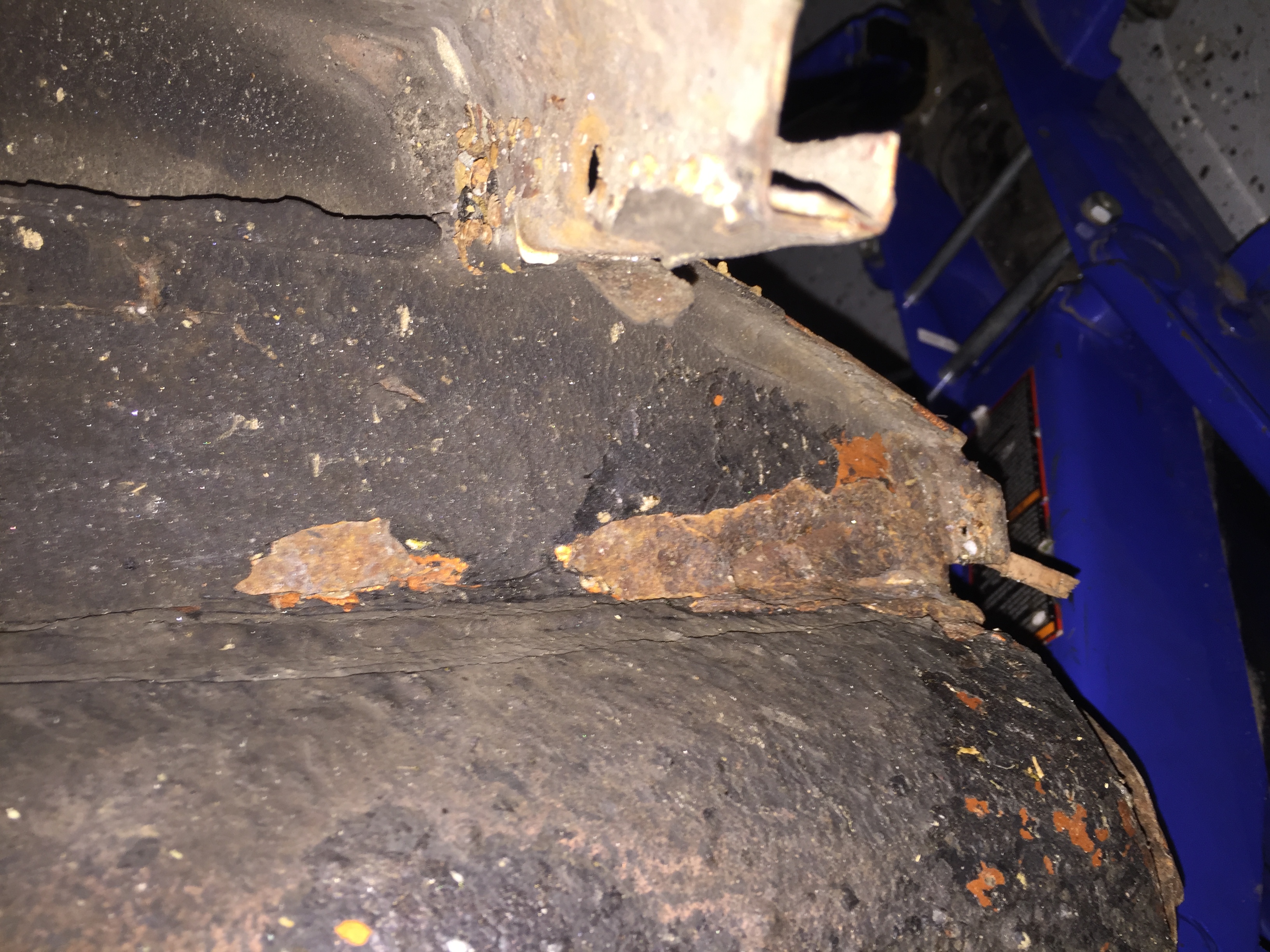 mess and a bit of rust in the fender wells behind front bumper