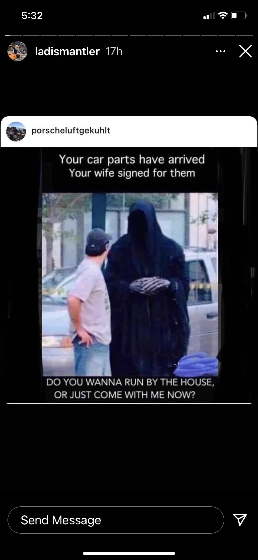 The back pad install was a year ago . Lots of little things since then! I will have to post some pics of the new steering wheel and other stuff to consolidate but I have more stuff coming and might be in trouble--- kind of like this guy.... Attached thumbnail(s) |