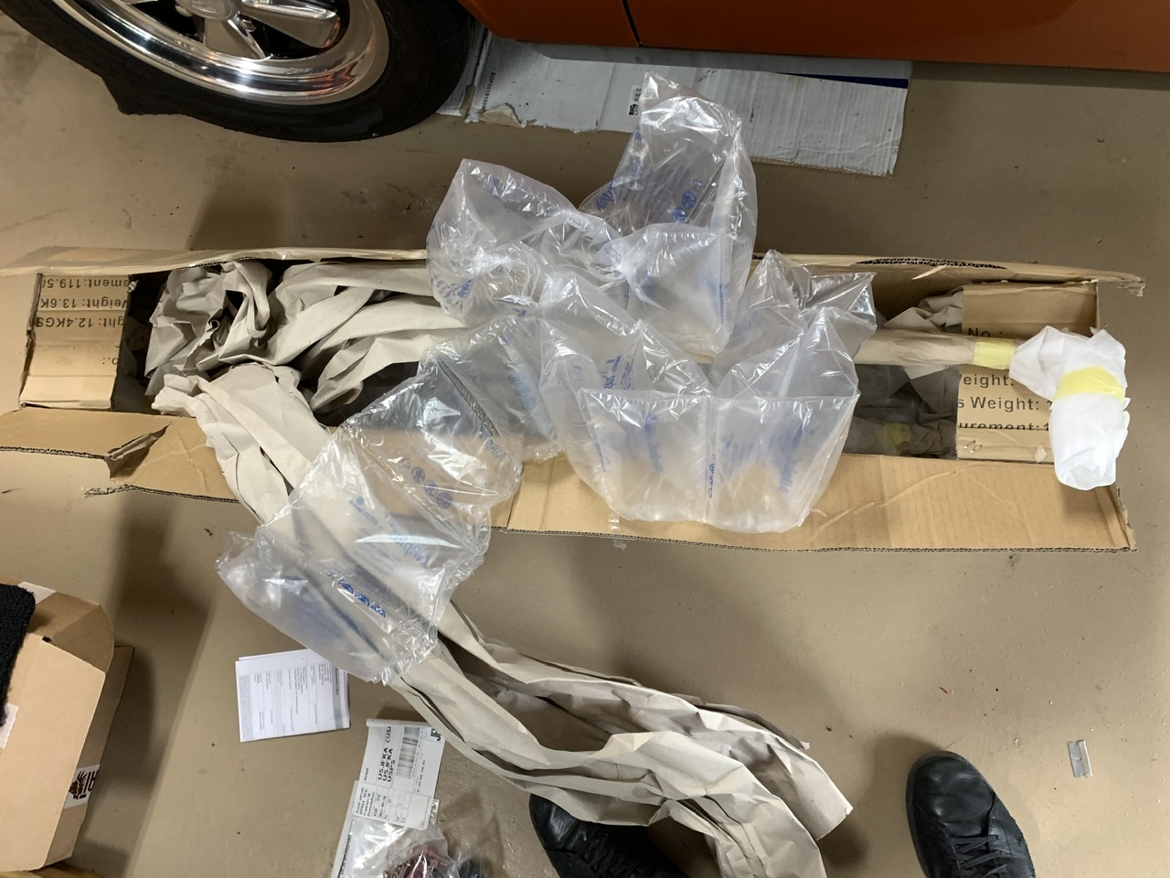 once unpackaged i sorted thru the mounting hardware, cleaned up the tabs for front clamp, had to clean out the rear mount threads that had some rust and paint, hard to clean those threads, took about 2 hours to get that done to get the mount screws in. The rack came supplied with new rear mount pads, some new bolts and screws, and some nice straps too. Attached thumbnail(s) |