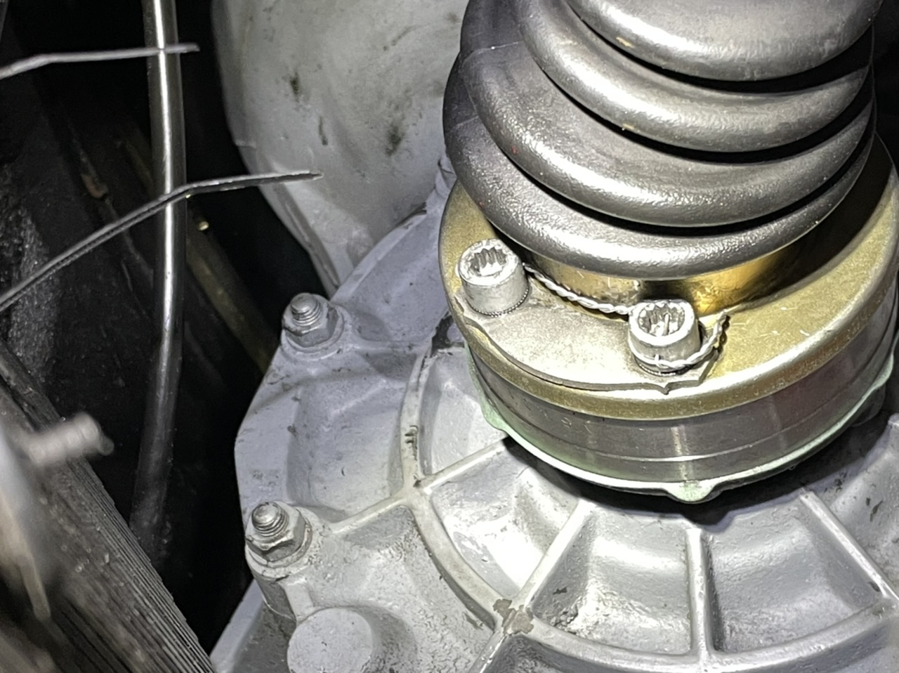 Are you missing the gasket between the CV joint and the transmission hub? 914.332.237.01. well i finally got around to putting new Schnor washers in the CV bolts and safety wiring them, but you were right, Karl, no gasket!! so now there is a proper gasket ! i will miles sure to check these after few drives but i think we’ll be ok now for trip to Townsend, TN next month!! Phil Hey Phil, that looks great and I'm not busting your chops but the next time you safety wire those bolts do it in a fashion that the wire limits the bolts travel so that it can only turn clockwise. About 35 years ago an old WW2 A&P chewed my ass out for that. Not as critical in automotive applications but.....You can also reuse those Schoor washers since the bolts are safety wired. (IMG:style_emoticons/default/beerchug.gif) you are right, i did the other one correctly but that one should have gone into the bolt on the other side so that if the lower one did loosen as it spins counter clockwise it would tighten, this would keep it from coming out completely but it could do a half turn. i realized that after it was done lol. but the other one on that side and the side are correct. Good eye and i can always appreciate some constructive criticism!!! So now the next thing i do has to be putting new engine lid brackets on. my original ones are cracked and the right one is really flexing bad!!! i have to find a welder that won’t charge me an arm and a leg! |