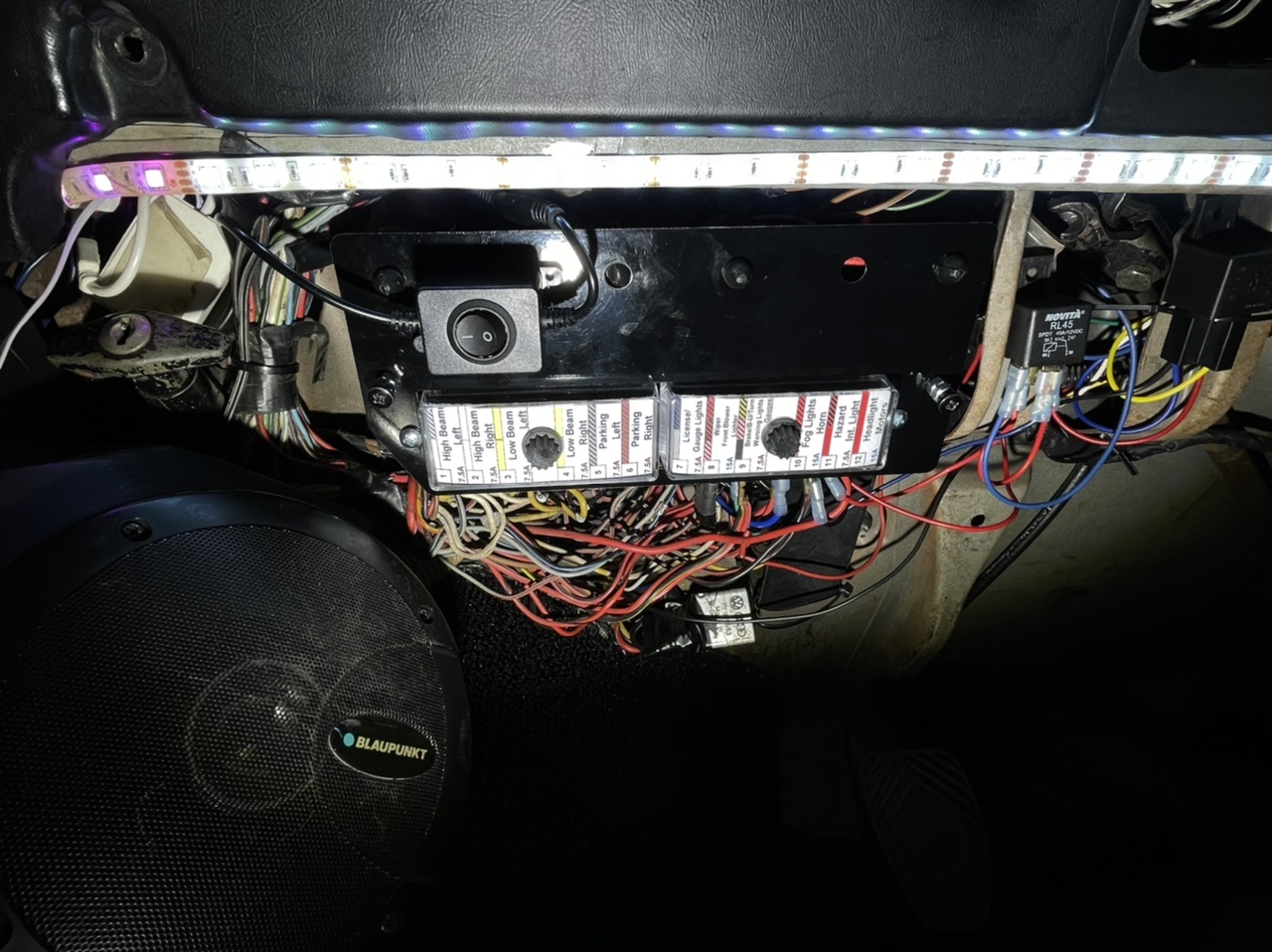 the new J-west Fuse board was a must i had a short in the old one- melting parts lol, the extra relays seen , one is for thr 911 windshield washer pump, and the Hella driving lights.
