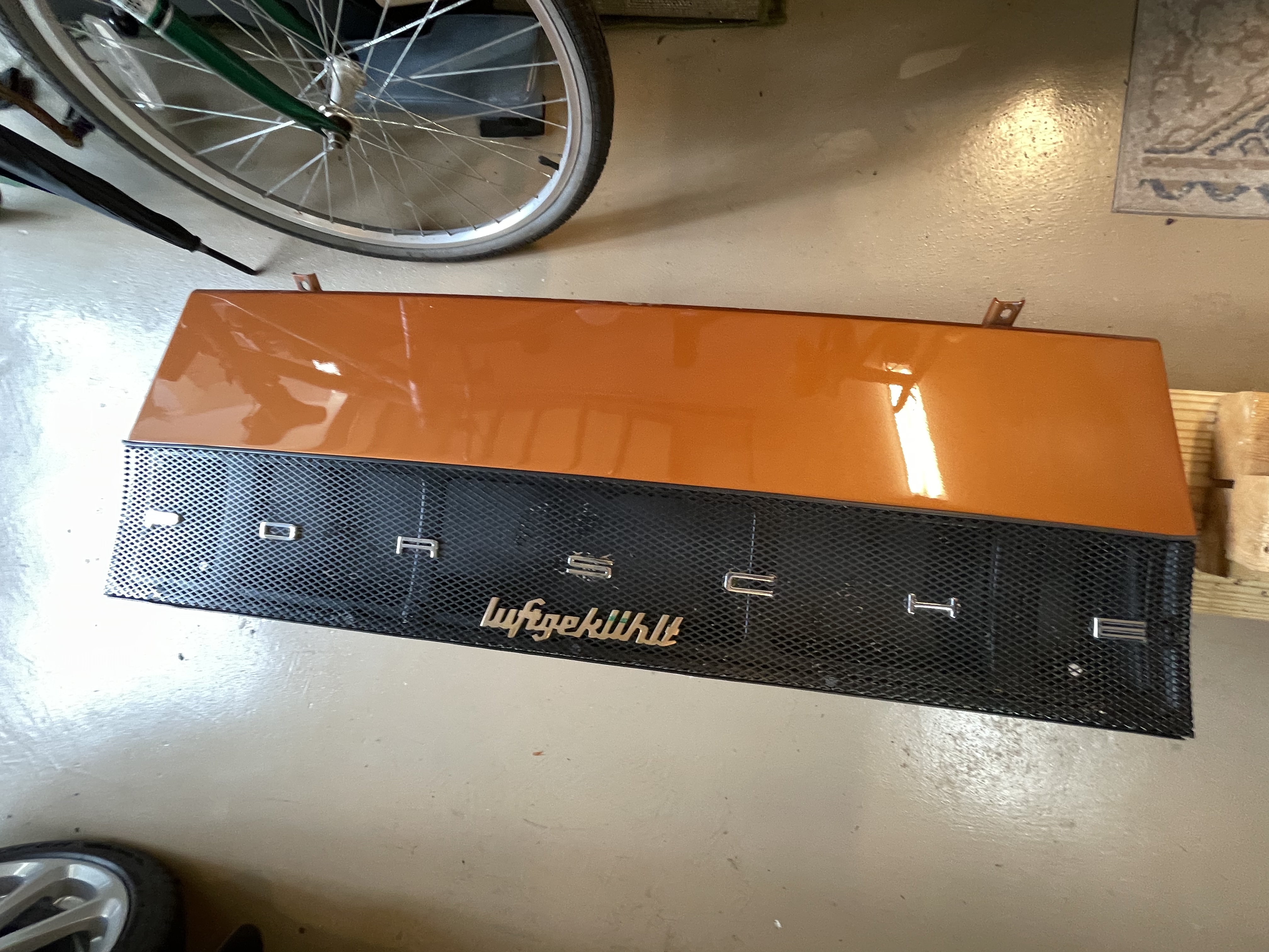 deck lid repair with all new seals, repainted , new stops , repainted mesh, new welting and edging, here it is scratched up pretty good, took the letters off and replaced the welting , the rubber stops, etc,