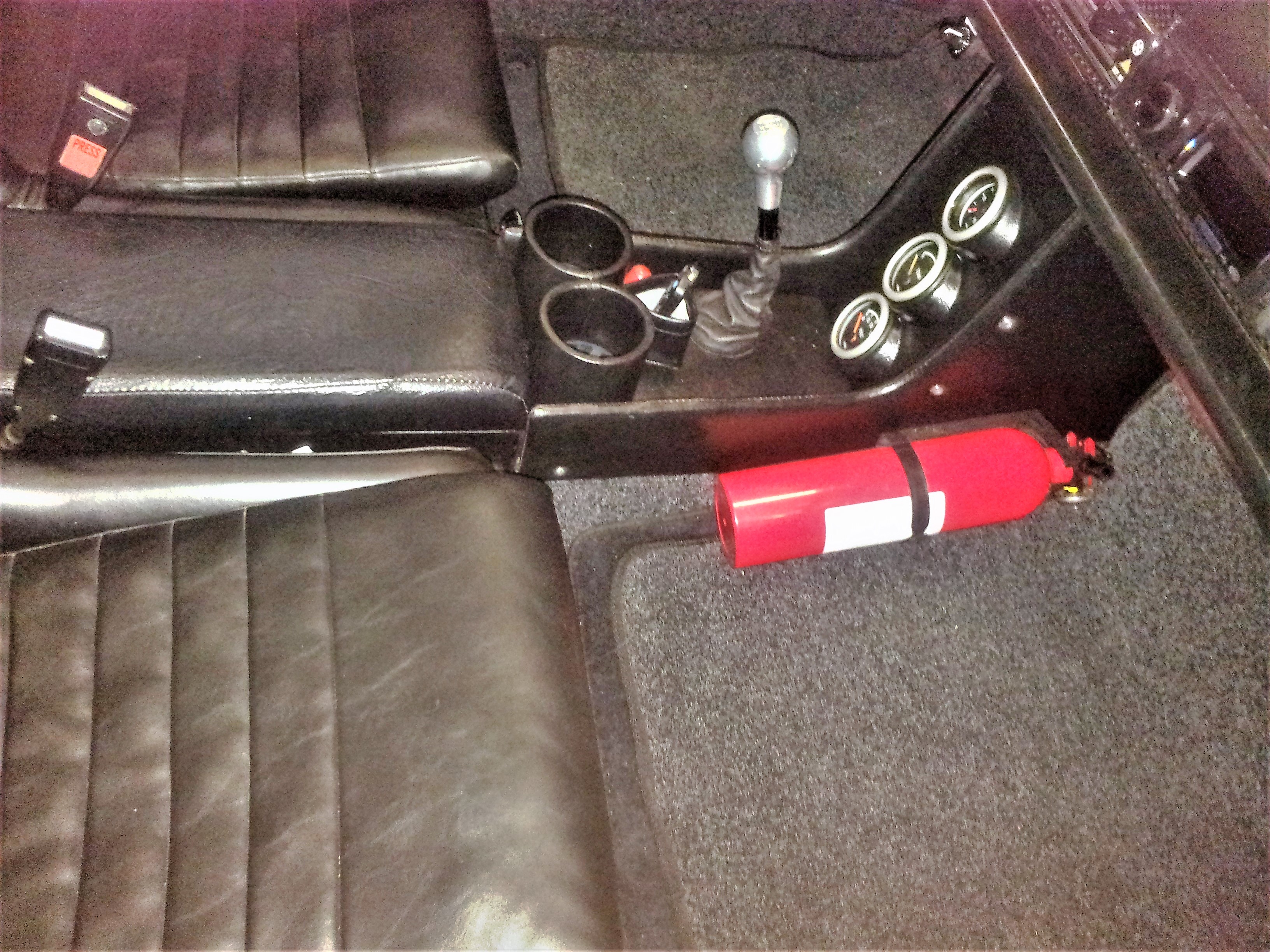 # Those small plastic tip Fire Extinguishers are junk # They don’t put out much of a Fire # The dry chemical Fire Ext can damage your Elec systems # The bigger the better I mounted my Ext in the front truck because you want to separate yourself as quickly as possible from a rear engine fire and you can mount a larger Ext. The extinguishers I have are a Purple K “great for fuel and metal fires” and a Halotron which is a replacement for Halon “great for Elec fires”. You can find these on Amazon. Trust me you want a larger Fire Extinguisher, those little ones shoot there load in seconds (IMG:style_emoticons/default/blink.gif) and then your screwed when the fire flashes back. You put big money in your car so spend a little more for Fire Protection. And yes I know if I am in a front end crash I am screwed. |