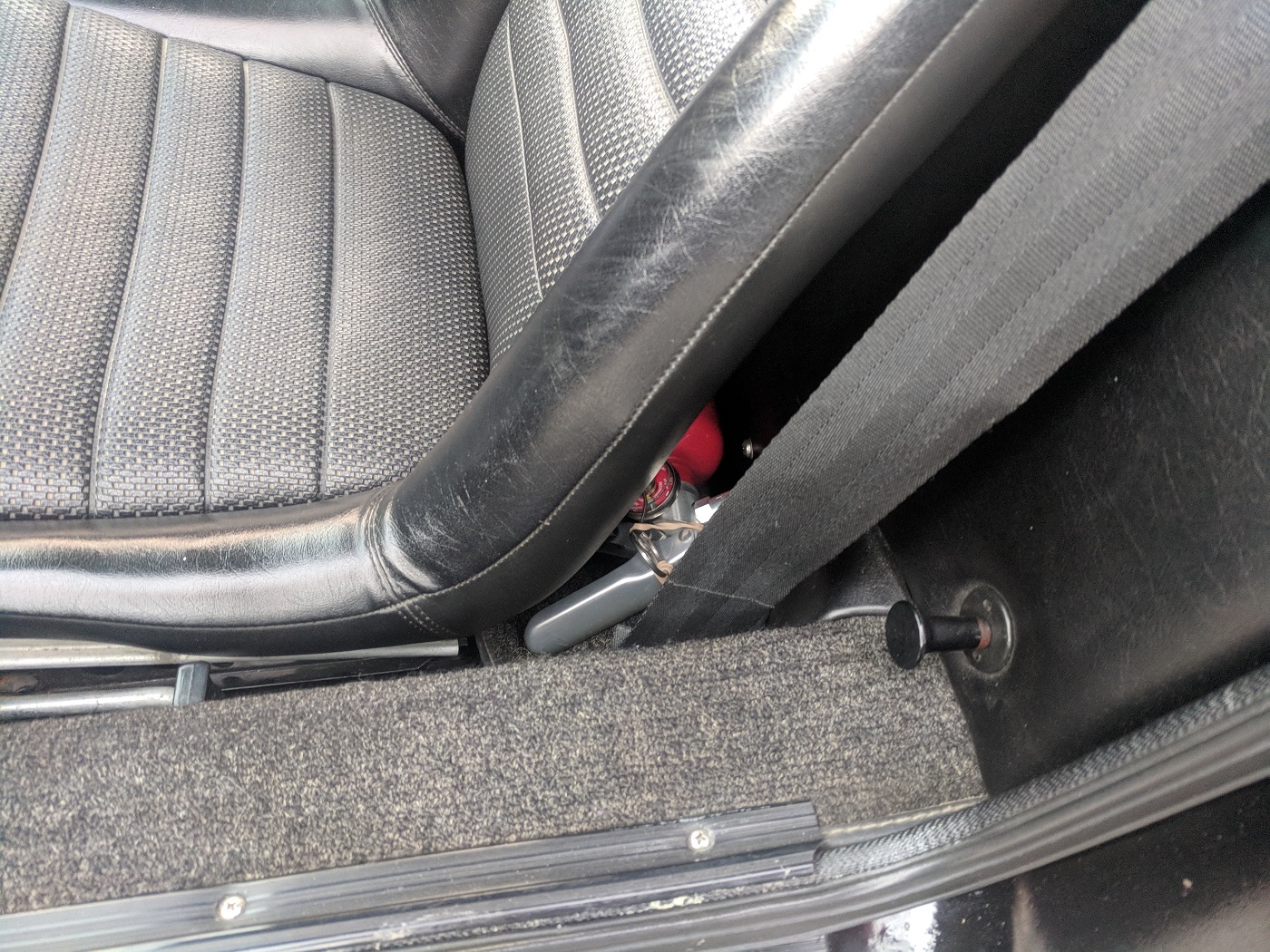 Halon extinguisher mounted to heavy-duty magnets attached to the (fixed) bottom of the passenger seat on a 1970/4 Magnets ? Has it detached from the magnets during driving ? Harbor freight magnets maybe or more stronger type ? Thanks Extremely hard "panic" stops and rather extreme cornering maneuvers (all on large, empty lots) do not dislodge this extinguisher mount. The magnets were obtained from a new car dealer that I had a long association with. The magnets are typically used at dealerships to mount license plates to cars for test drives or transport moves to other locations (think dealer trades). Paul Having run several PCA track events and knowing how you mount is secured you would never pass tech inspection. The reason being if you were a involved in a severe front or side impact the mount will dislodge because of its mass and the G force. This has the potential to hit you inflicting severe injury or death. Likewise in a roll over accident involving high Gs the mount could be dislodged and hit your bean killing you. The magnets are a clever idea but a very dangerous one too. |