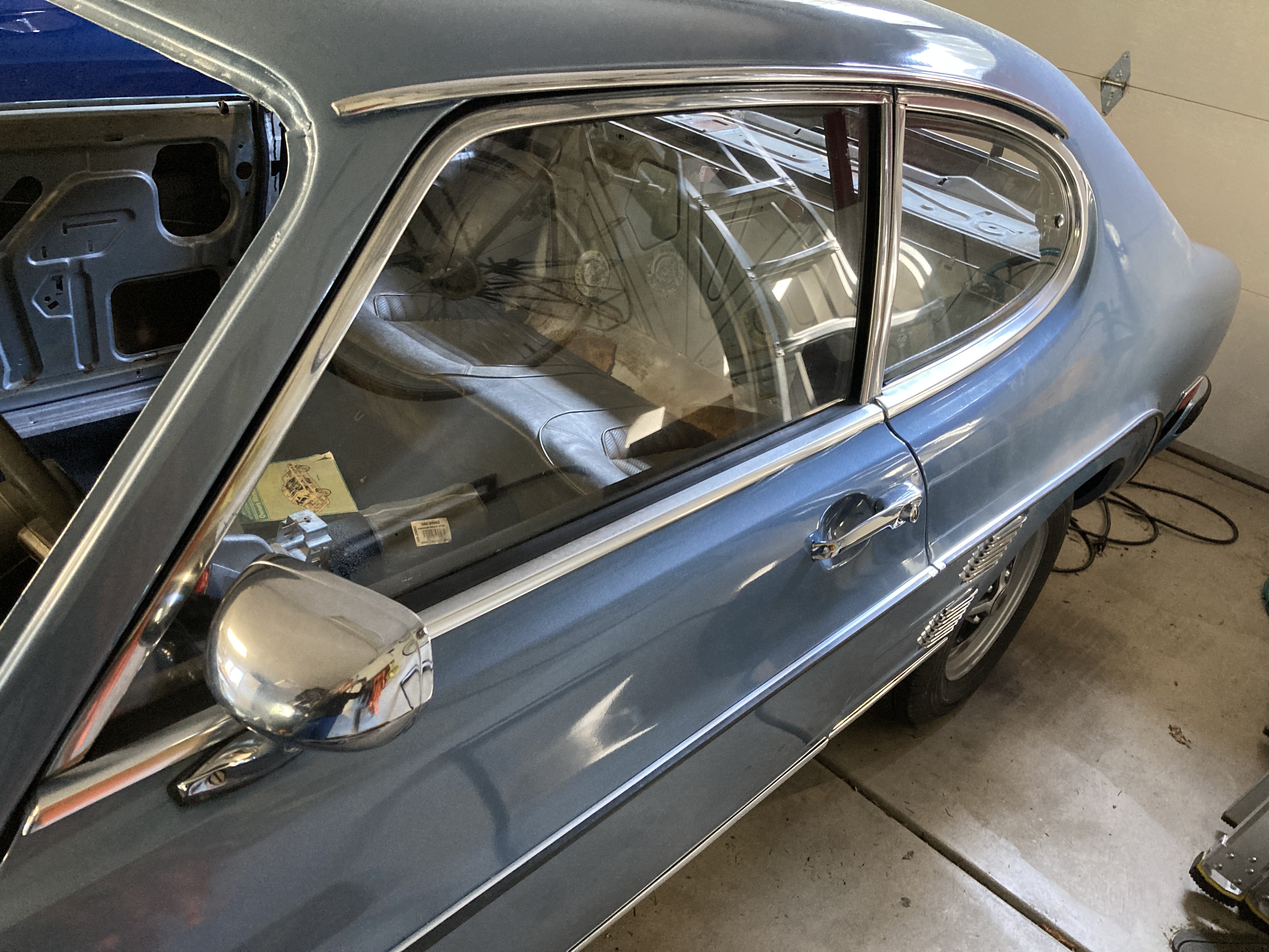 Back on the ground again, with almost all of the exterior trim installed. Installed the new steering rack internal bushing yesterday. Starting on one of my less favored jobs now—new headliner.