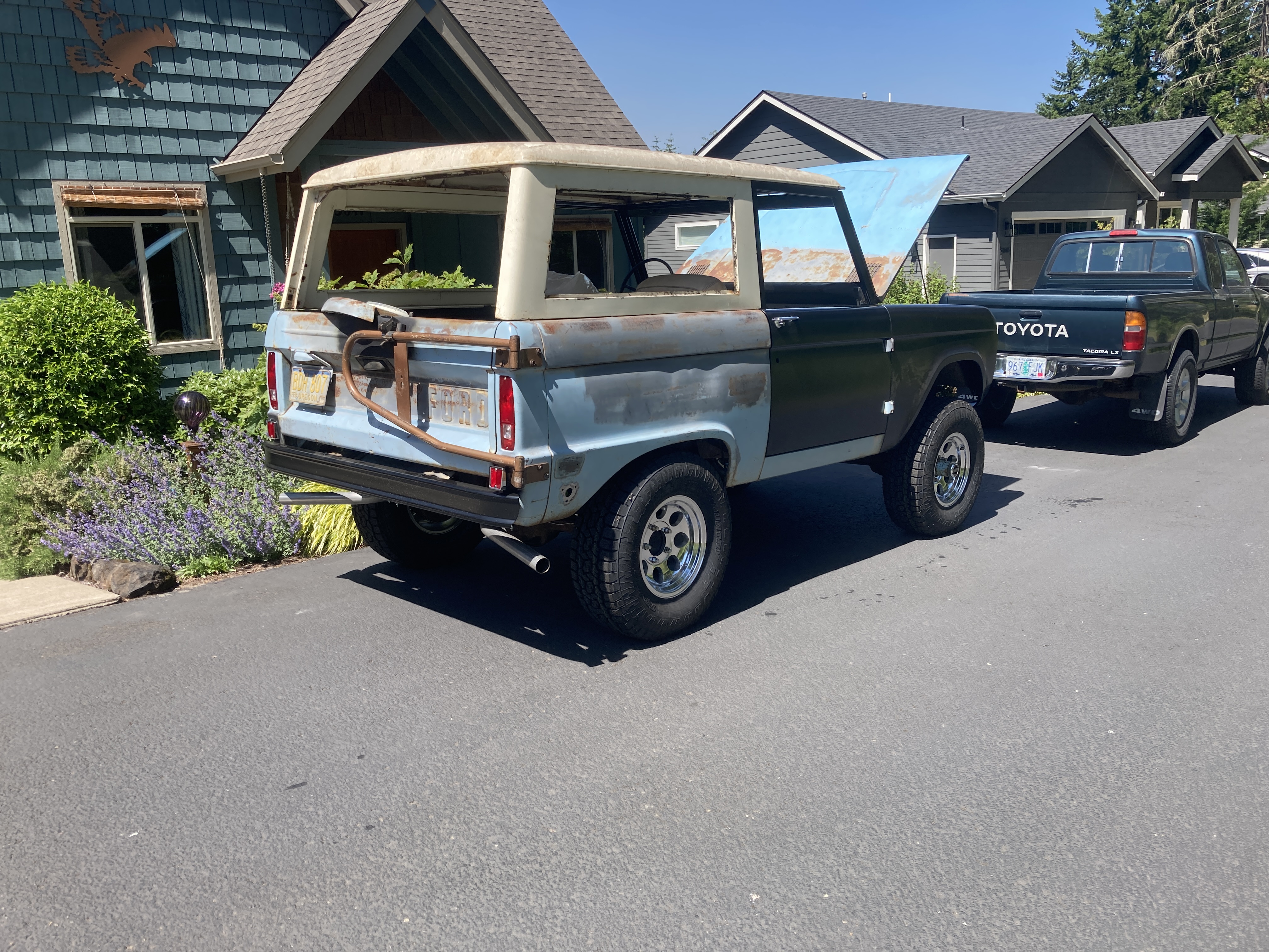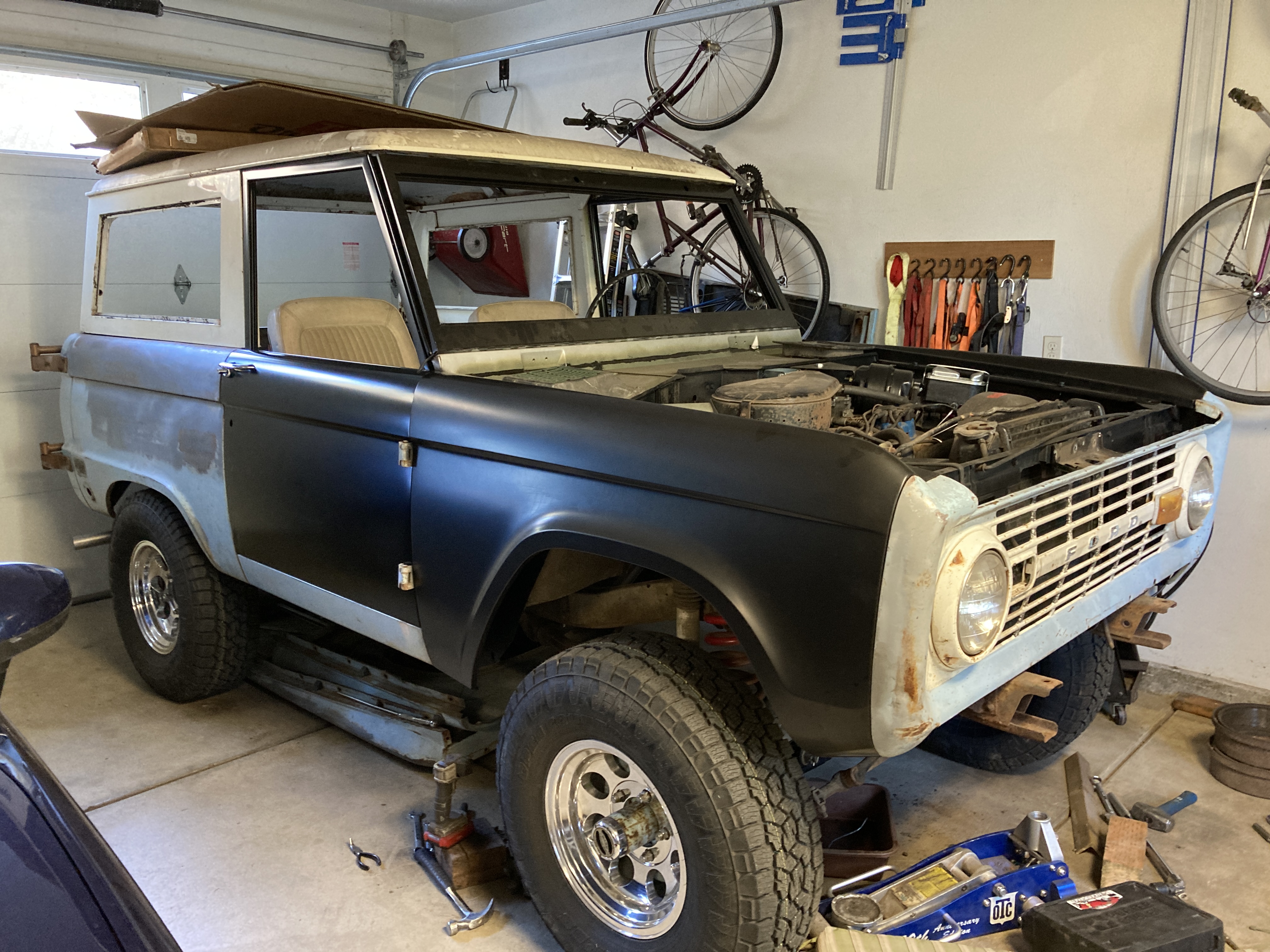 Nice to see progress on the Bronco. If you're converting to dual exhaust, are you thinking about switching to a 4bbl carb? BTW, a set of rolling car dollies might give you the room to fit the right fender without having to turn the Bronco around. I had a set and considered them cheap garage square footage. |
