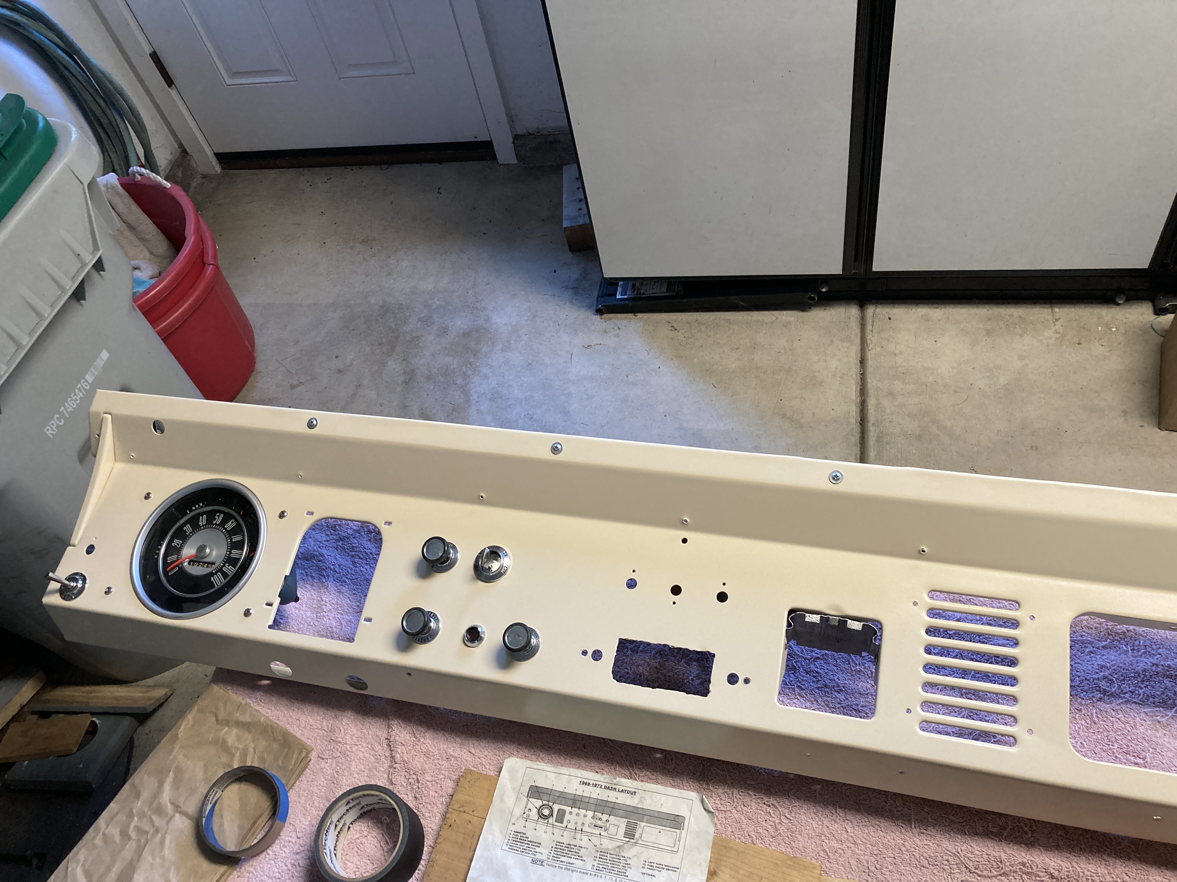 We couldn't wait for you to finish this one Arne so we picked up this 72': Good for you, Dan. Looks like a nice one, and I figure I won't be done for at least 6 months, maybe 12. Earlier this week I pulled the steering column and dash out, and installed pre-formed firewall insulation. Then I installed the rebuilt heater box, connected the new heater core using molded hoses, and refilled the cooling system. Started and warmed the engine, and tested the heater successfully. After the heater was in place, I spent some time doing final tidying of all the new wiring under the dash. The new fusebox is mounted so that it will protrude into the back of the glovebox, after I cut a hole for it. The only wiring not done yet is the wiper motor, as I want to paint the windshield frame before fishing the wiring through it. As for paint prep, I've started stripping the dash panel to bare metal. I hope to get primer and paint on it over the weekend, but there are other things around here that MUST be done before the weather turns, so the dash work might stretch later into next week. ![]() ![]() |
