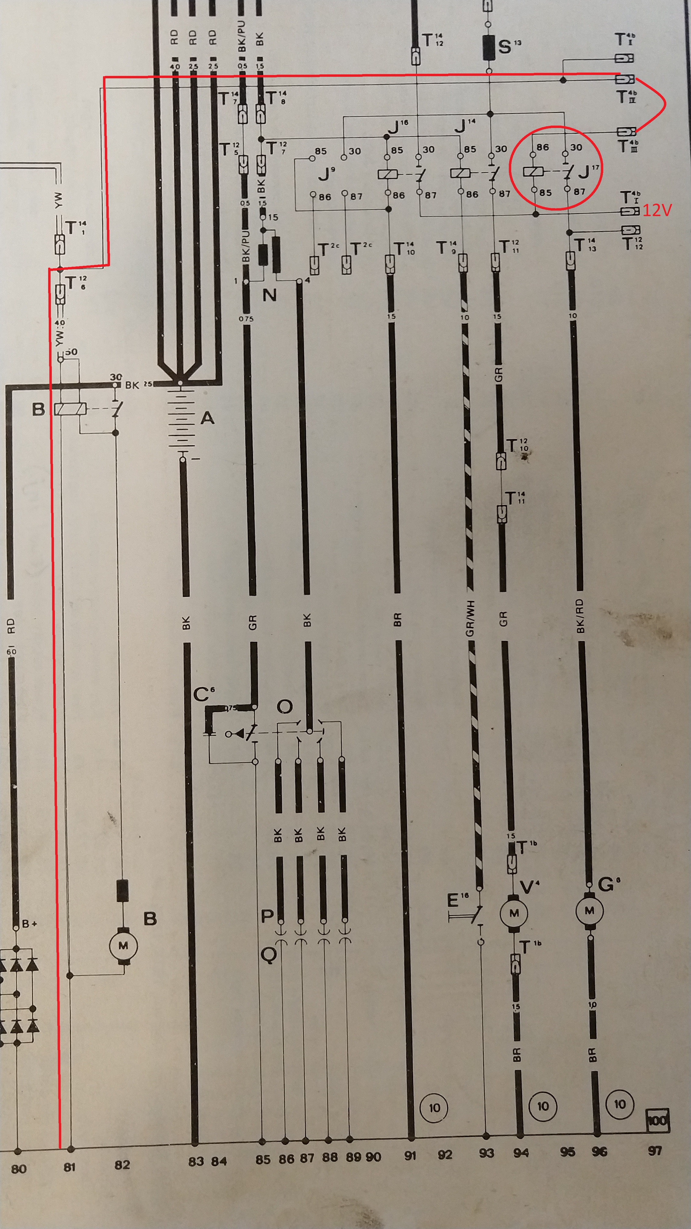 I was told to install that jumper for the fuel pump by a few highly respected/knowledgeable on this board ... (for a carbureted motor) (IMG:style_emoticons/default/confused24.gif) This connection has been socialized many times and succinctly documented by SirAndy in this thread: How To > HOW TO: run the fuel pump for carb conversions, the easy solution! The fuel pump relay coil is grounded as shown by SirAndy in this picture. What was done on Gatornapper's car is quite unique and not ideal but does work. On his list of things to do on his 914 is correcting this connection. (IMG:style_emoticons/default/beerchug.gif) Attached image(s)