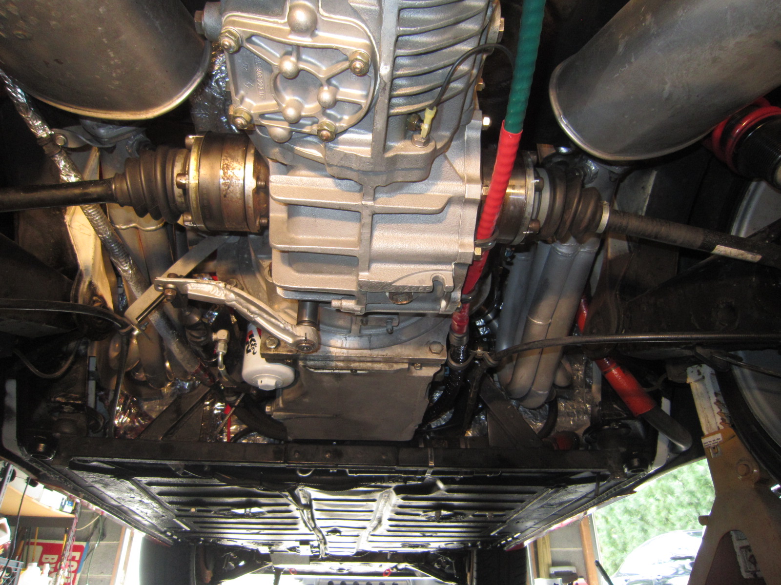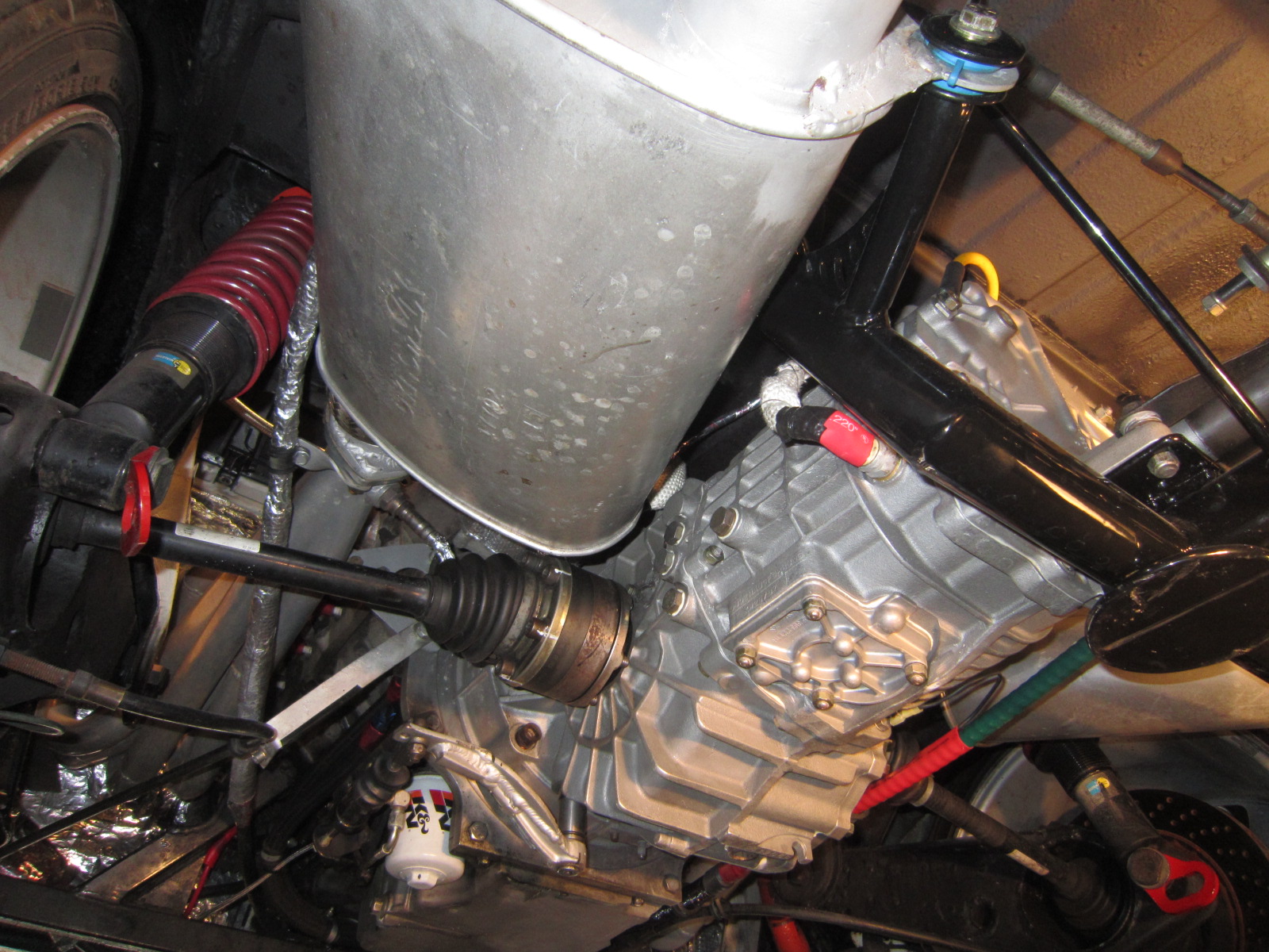 Bummer, man. Sorry to see those pictures. Way beyond my capabilities to fix. But.. is that a trailer hitch back there attached to the engine/trans cradle?? Yes it is a custom fabricated welded gusseted and powder coated piece made from 1.5 inch seamless roll bar tuning that we call the octopus because it does so many things! It is the transaxle mount, muffler attachment points, shifter cable attachment points, jacking point, tow point and yes a trailer hitch to tow a small tire trailer to the track. |