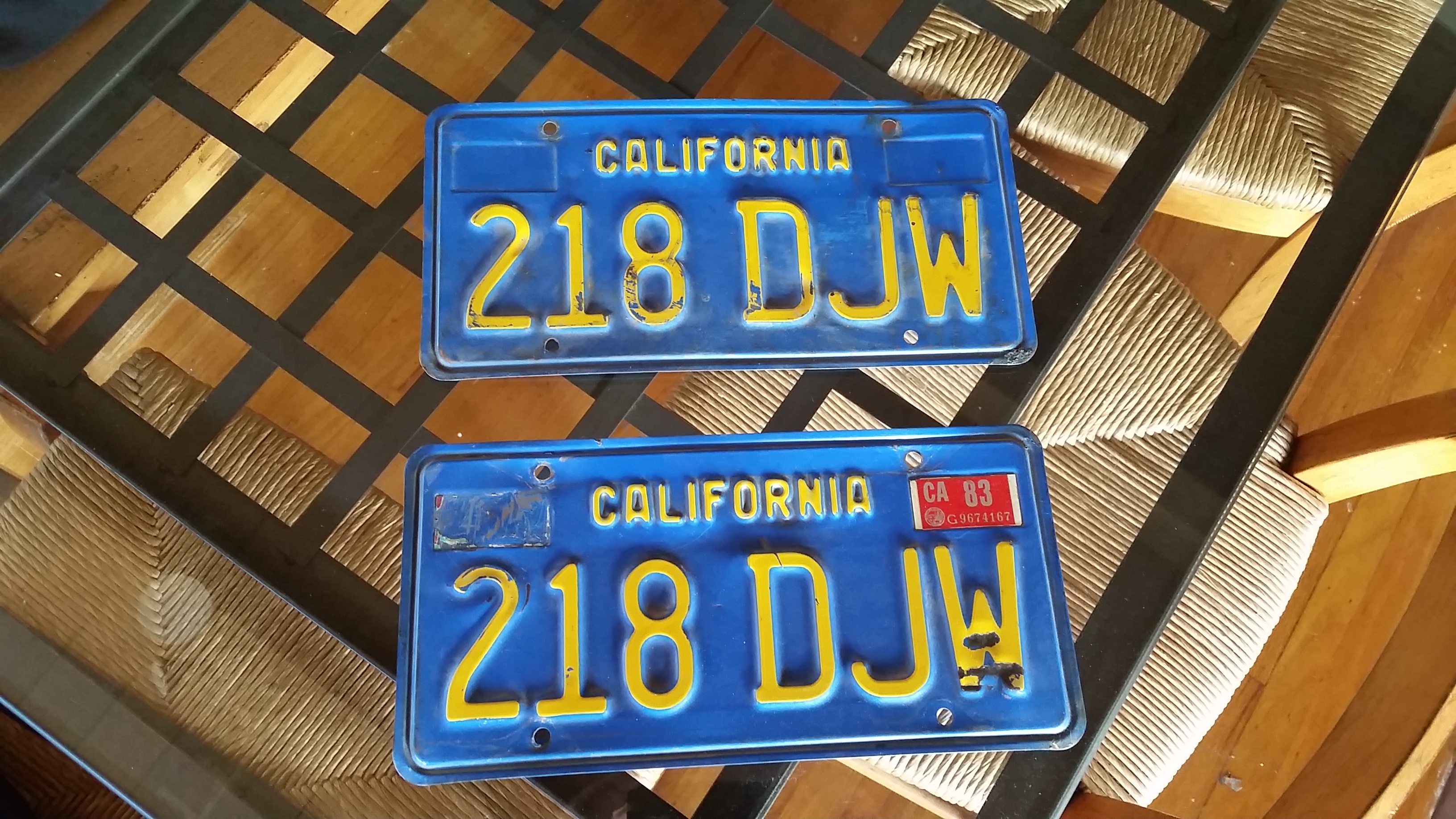 I bought a car just to get the plates off of it. They were a perfect matching set of California blue plates. The car was a 74 1.8 L. But it was in terrible condition. It had been sitting in the high desert in Nevada for a long time. After I got it home and had the plates checked, it had about a mountain of back DMV fees. Well over $600 I believe. Now they just hang on my wall all shiny and blue.