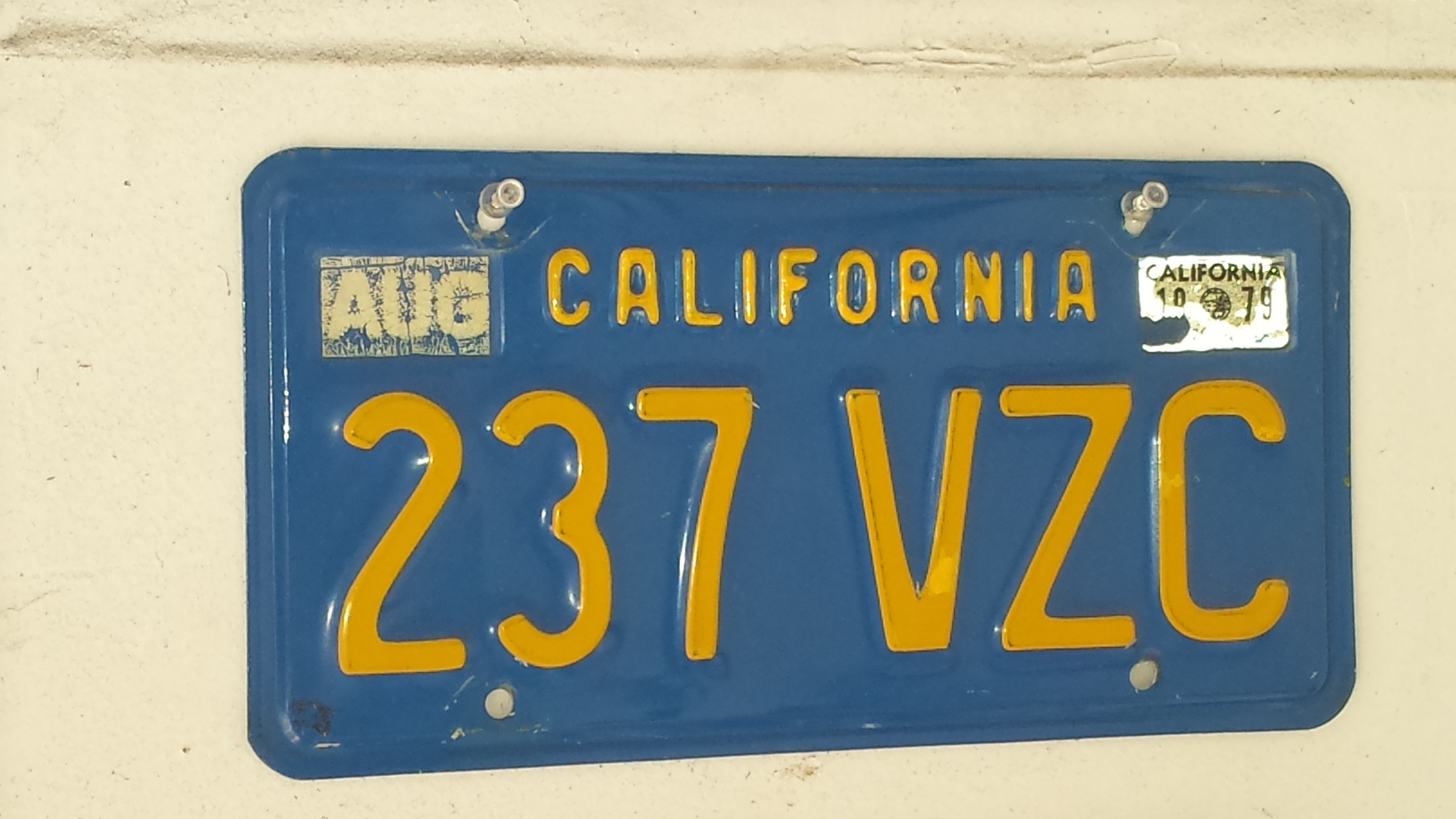 Yeah, what my plan was was to get a personalized plate that was 237 VZC and then just use the Blue Plate instead of the modern California white plates. That's no longer an option since that number still has back fees on it. And they've stopped the use of 3# 3 letter combos for that reason.
