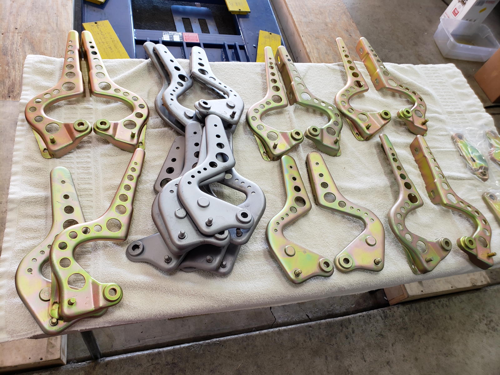 I have some of my refurbished GT Modified front & rear trunk hinges at plating. Should be back by next Wednesday. So if you are interested I'll have plated (Yellow Zinc), raw bead blasted, or primered available. PM me if interested These would look great on your 914 Oscar |