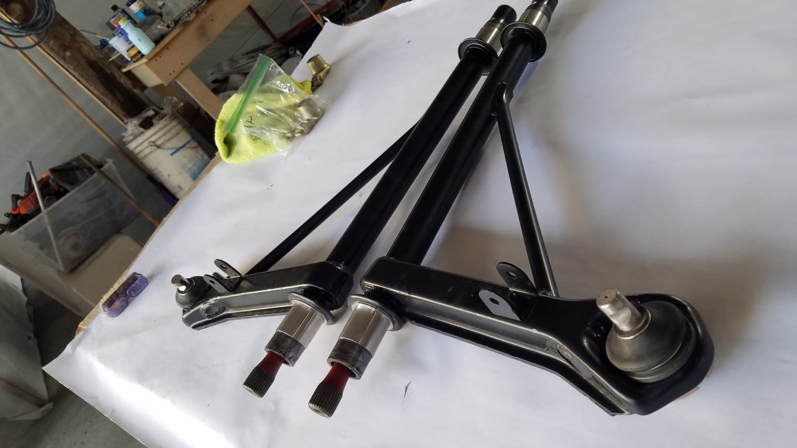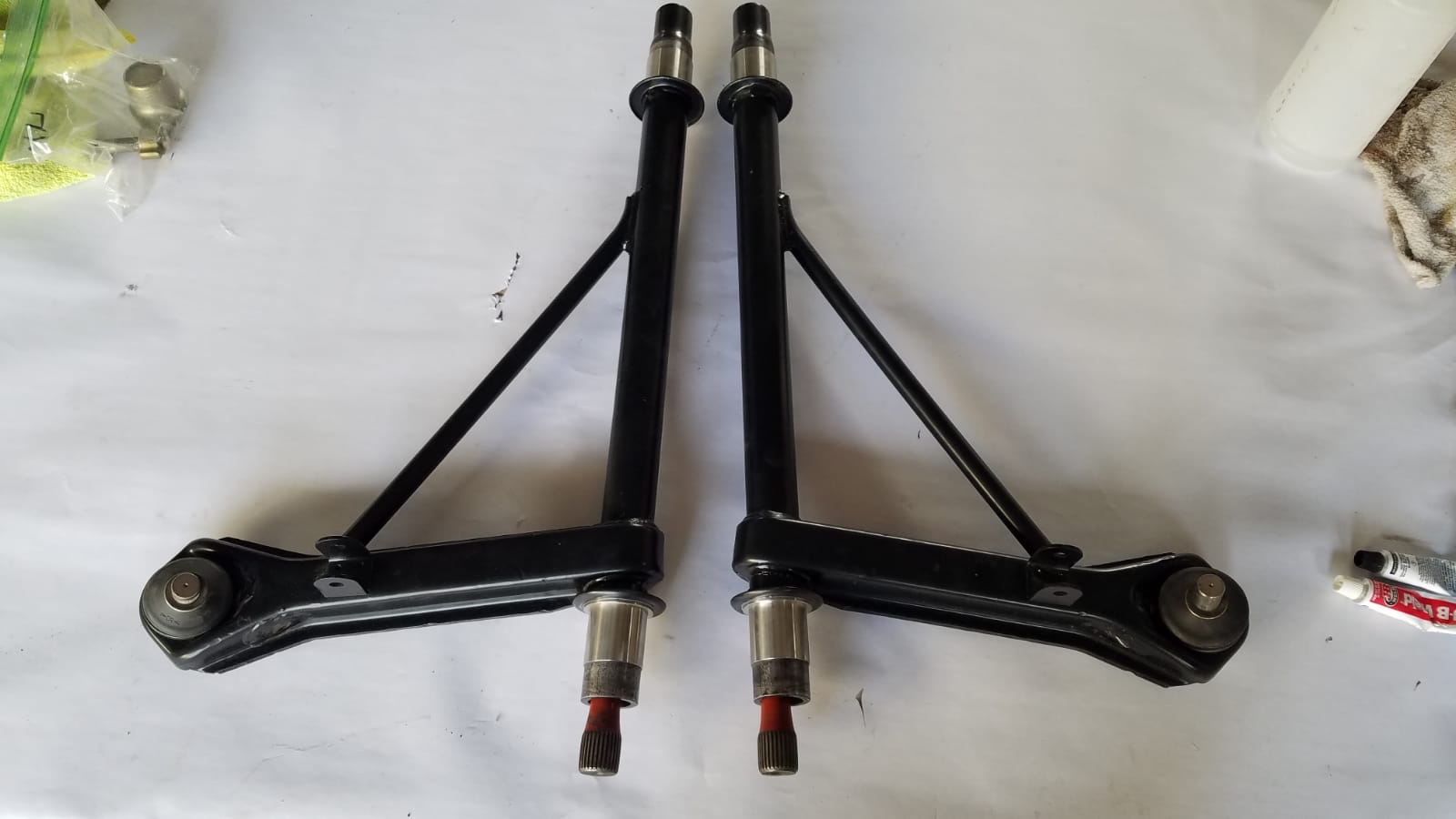 Rebel Racing front bushing set installed. I used JB Weld to apply the races provided in the kit to the A-arms. I love how silky smooth they feel. New ball joints installed.