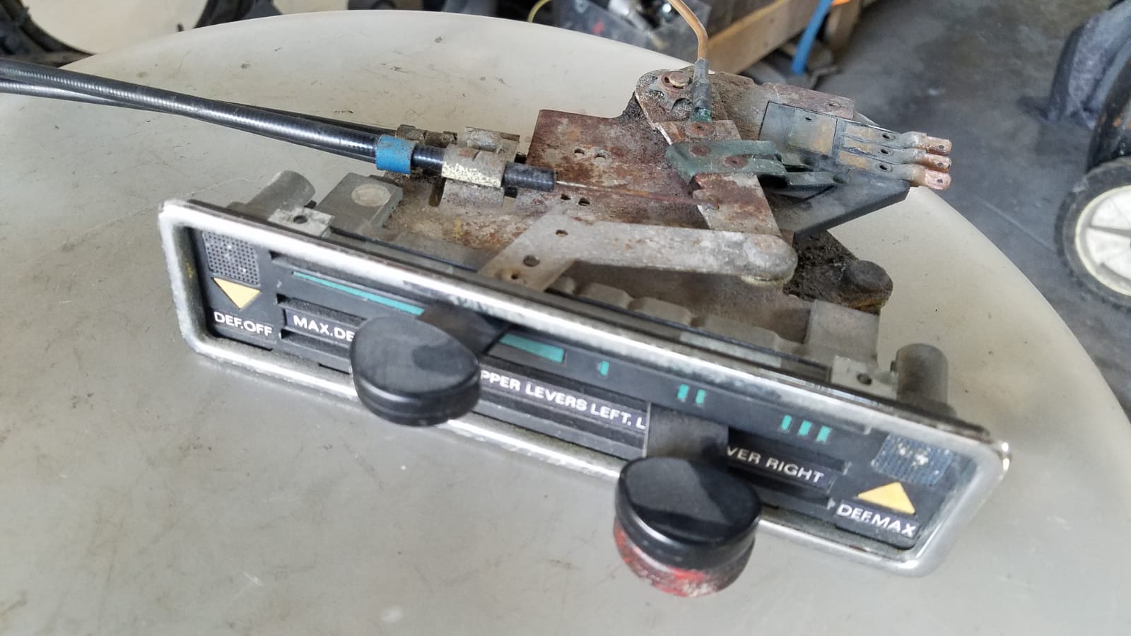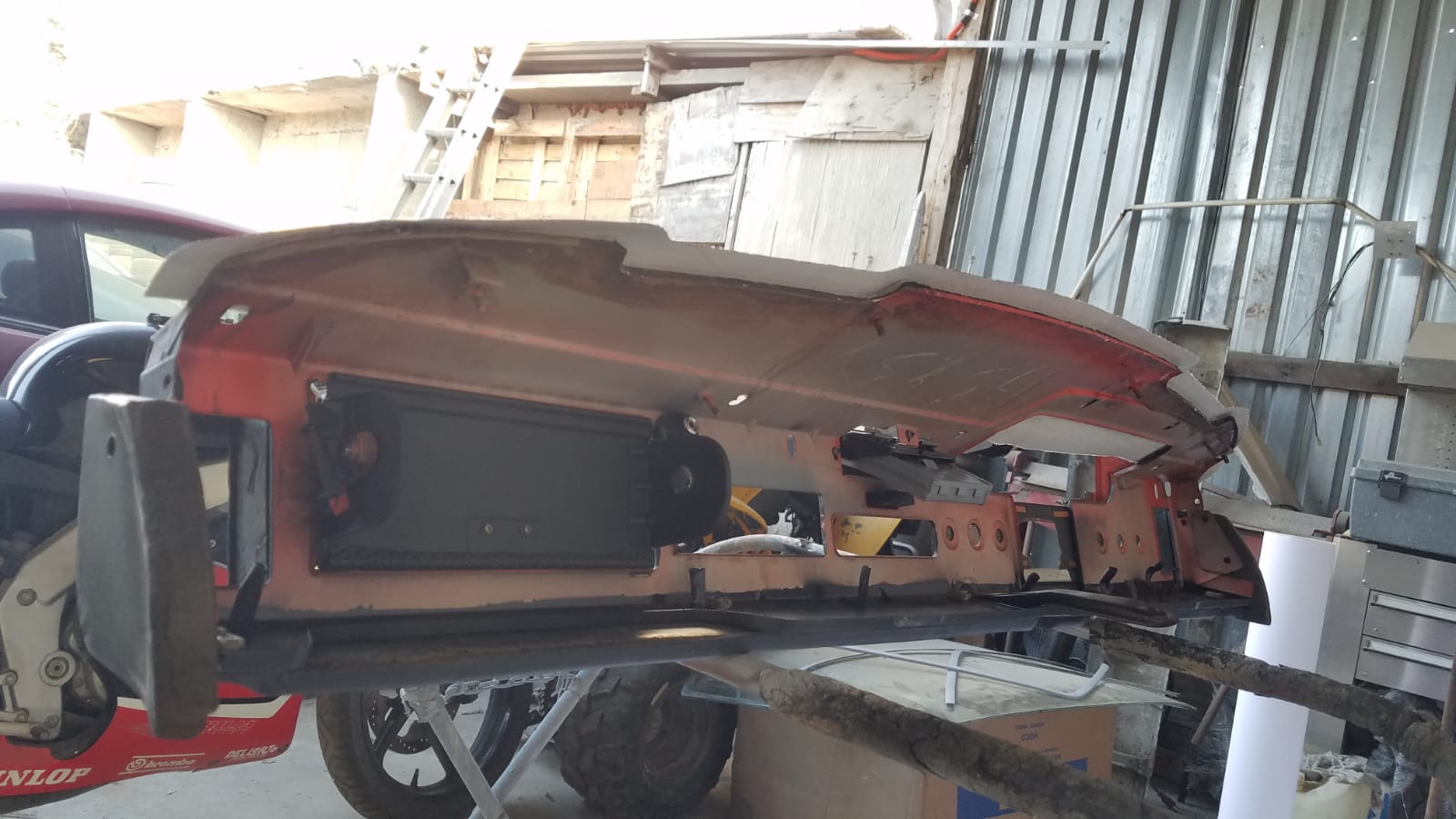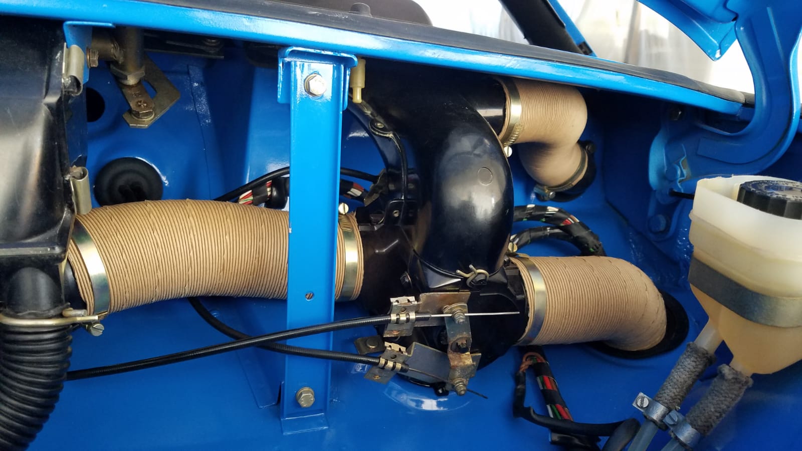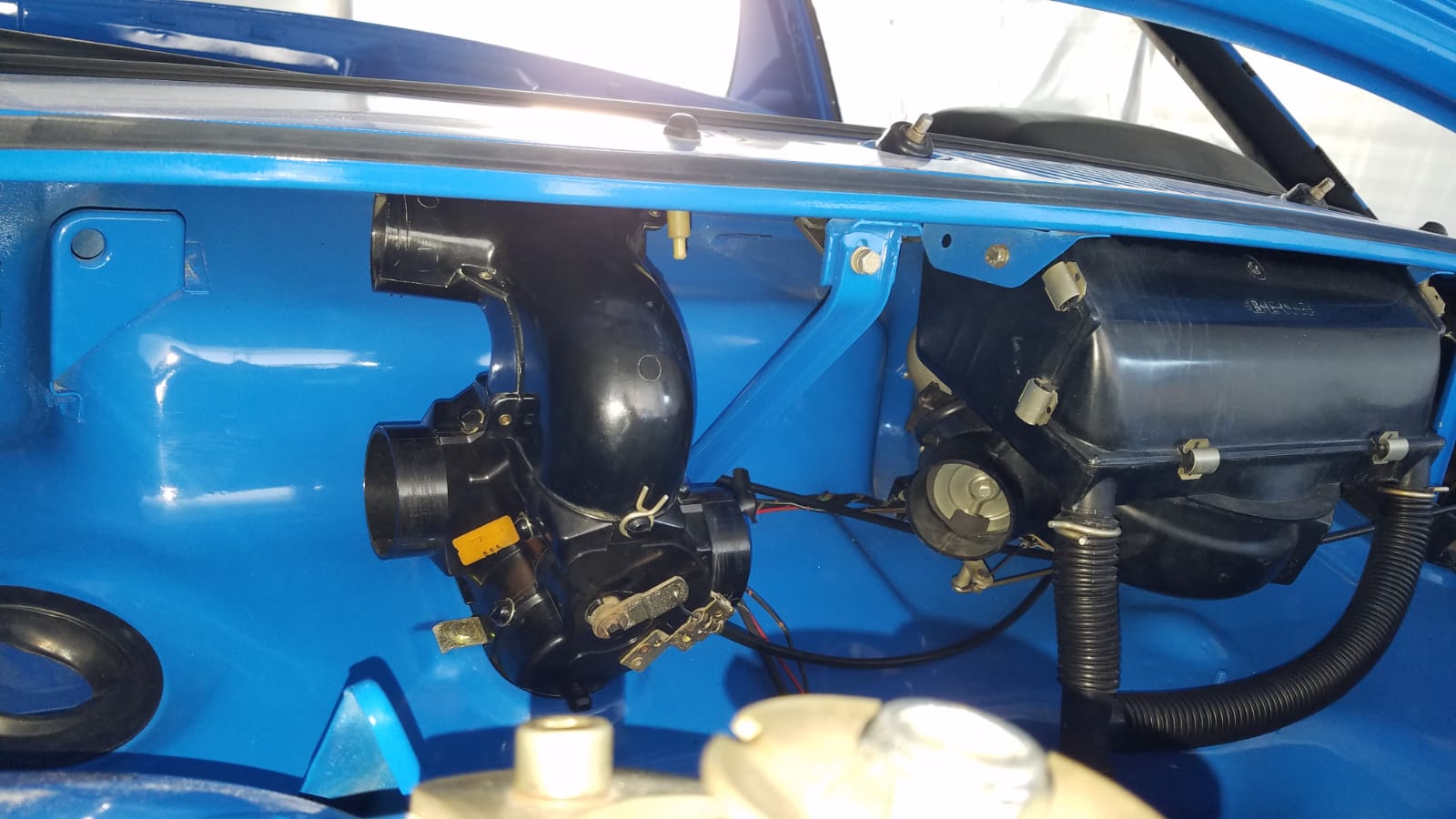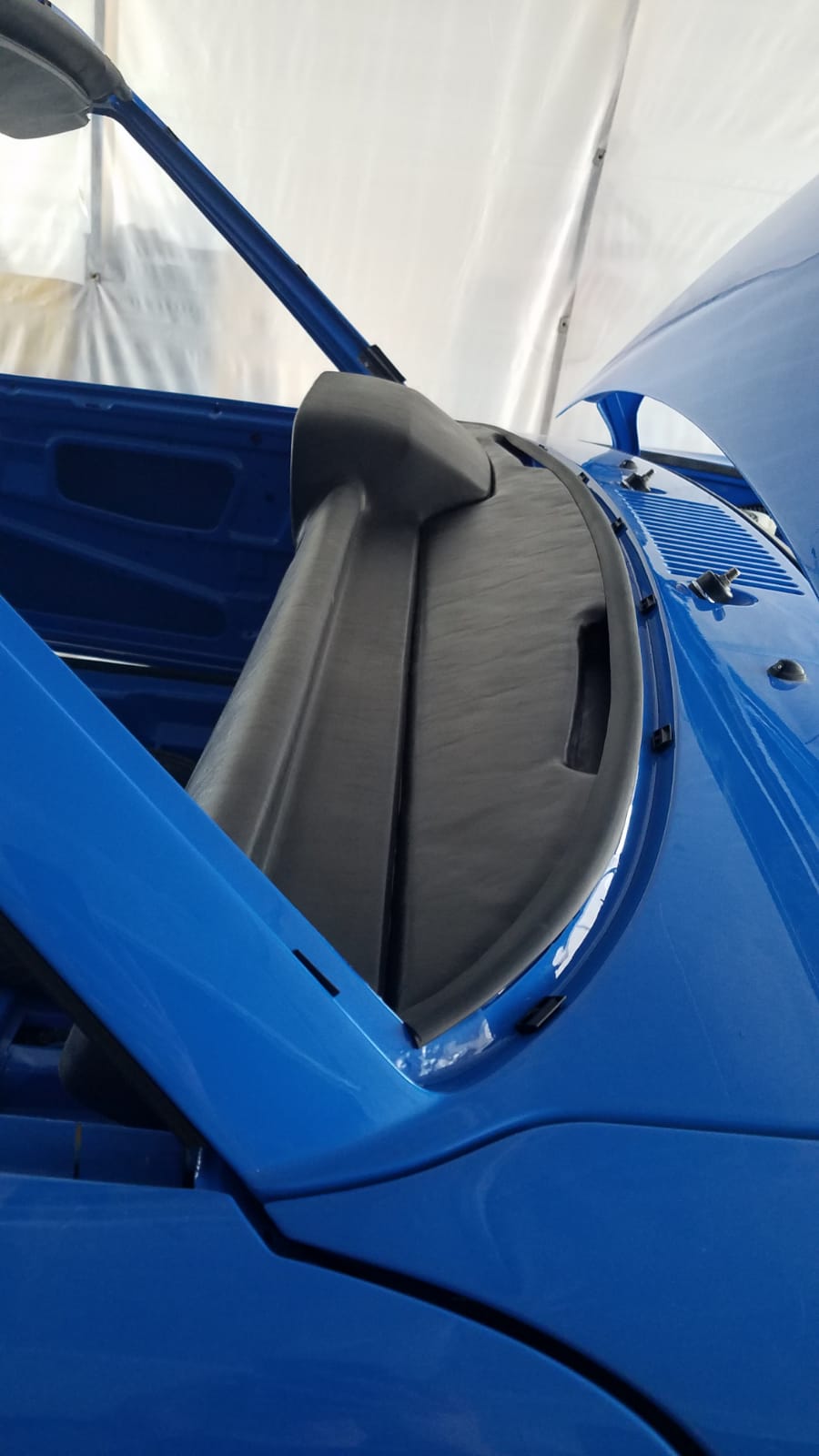 This pictures shows the rubber seal between the dash and the windshield. Now to deal with the wiring harness and all the accessories. |