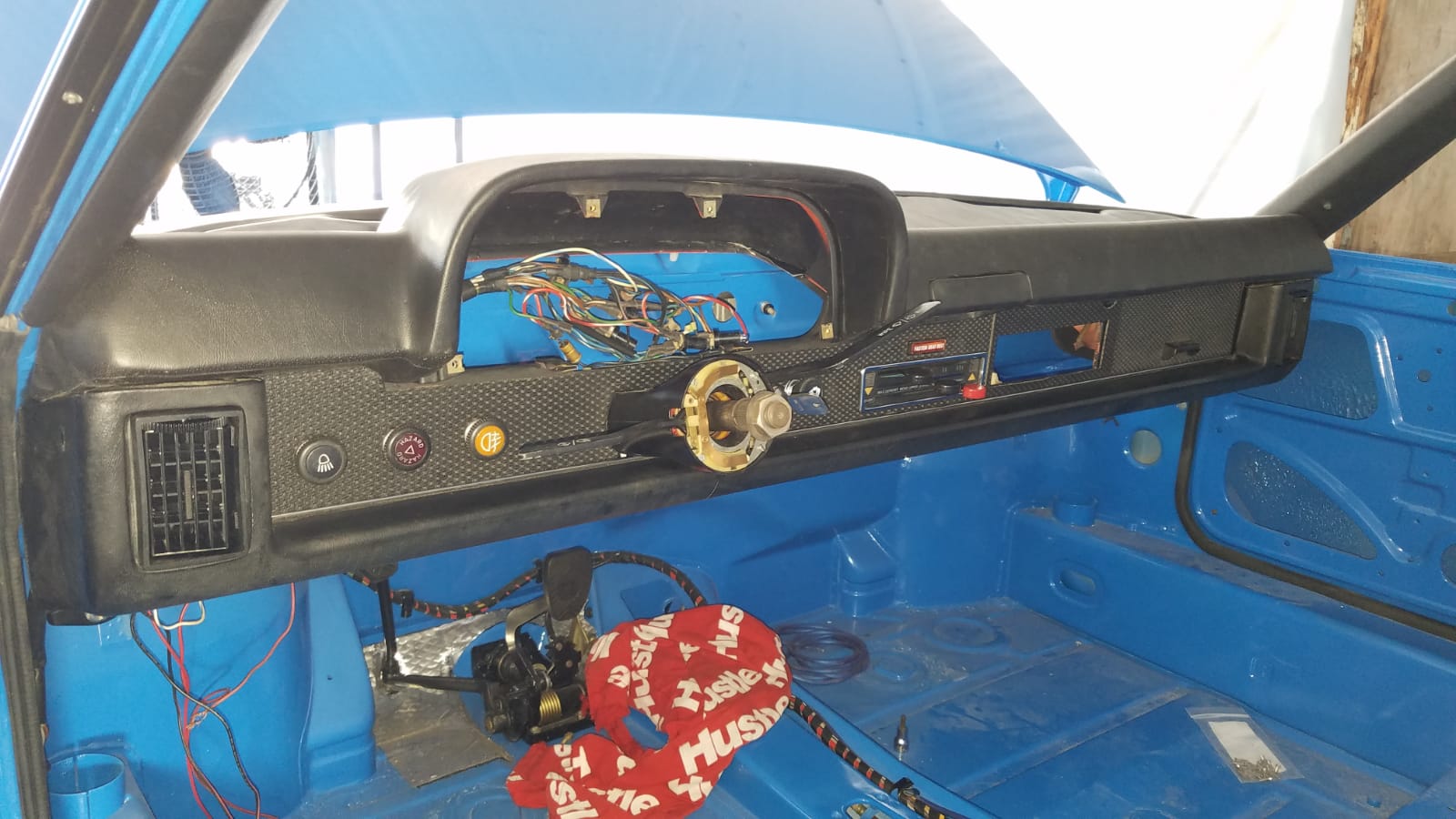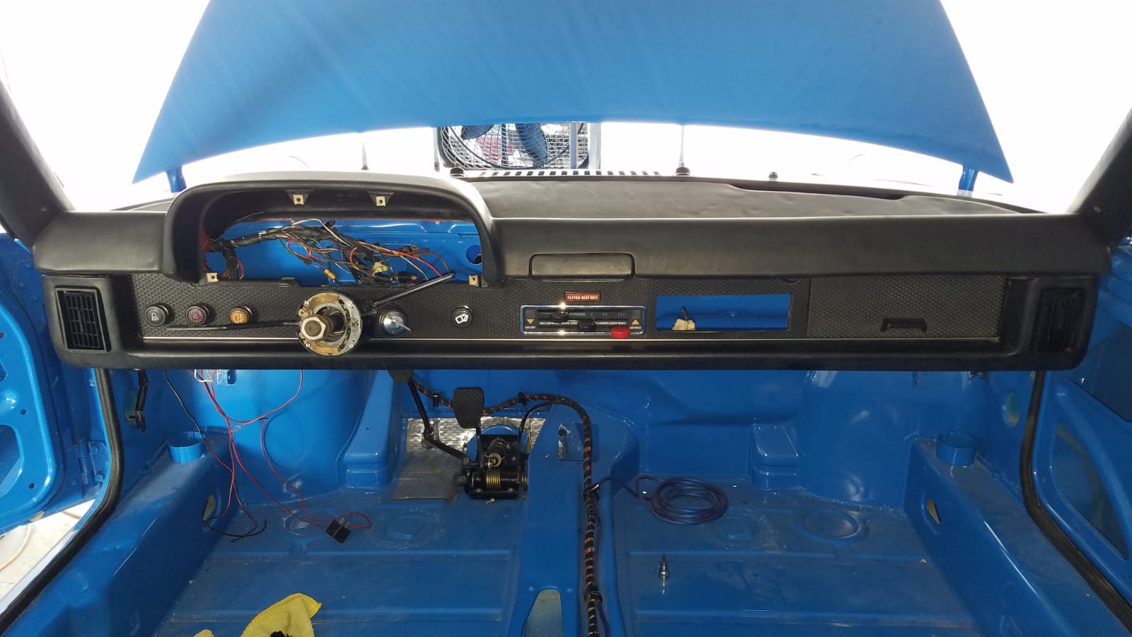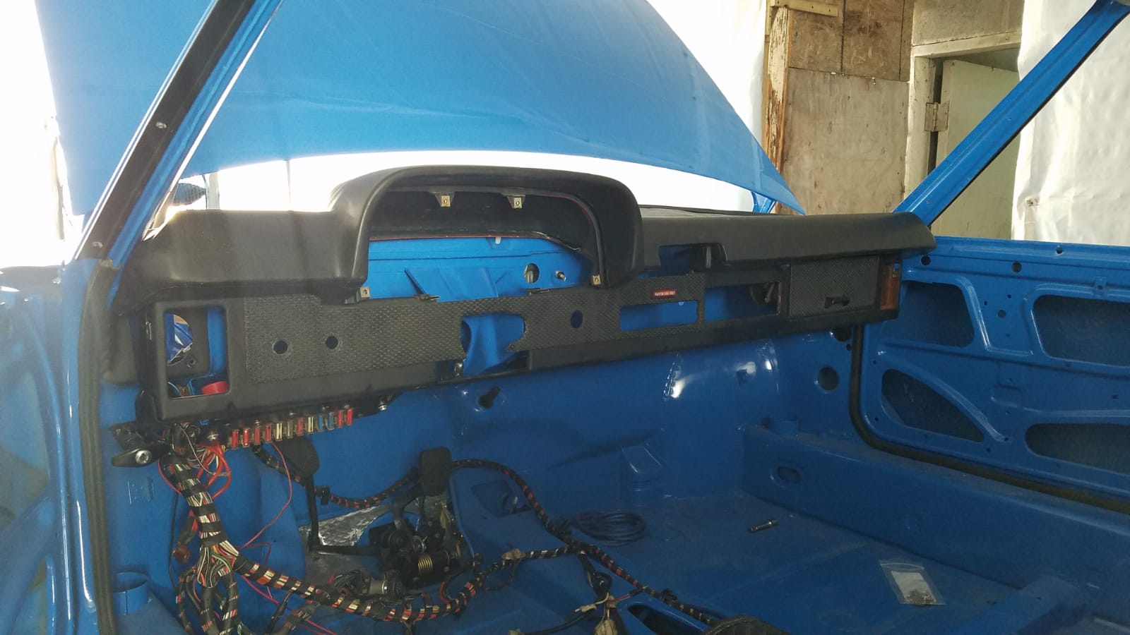 Well, it's starting to look like a car inside now, and I can't wait to finish putting it together. Still quite a ways to go yet though (IMG:style_emoticons/default/blink.gif) Here I installed the knee pad, switches, air controls, air registers and started sorting out the wiring.