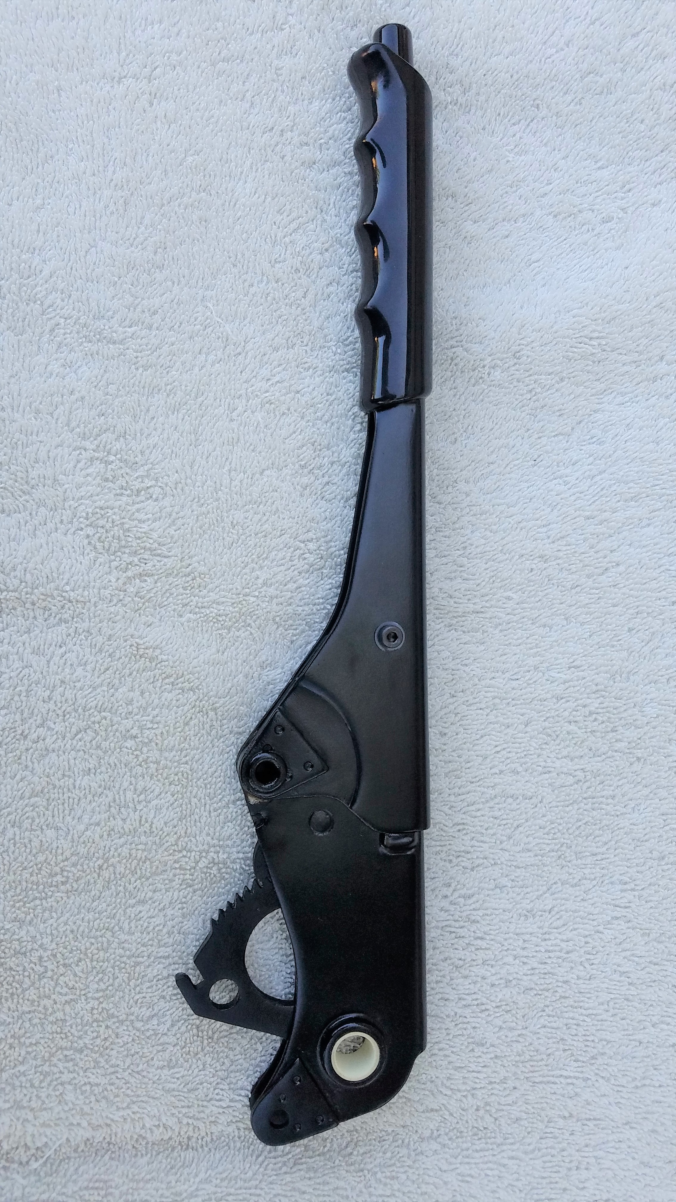 Here is what it looked like when I first removed it from the car. It didn't have the spring, handle or any of the internals. The hole for the cable was deformed so I welded it up and then drilled a new hole |