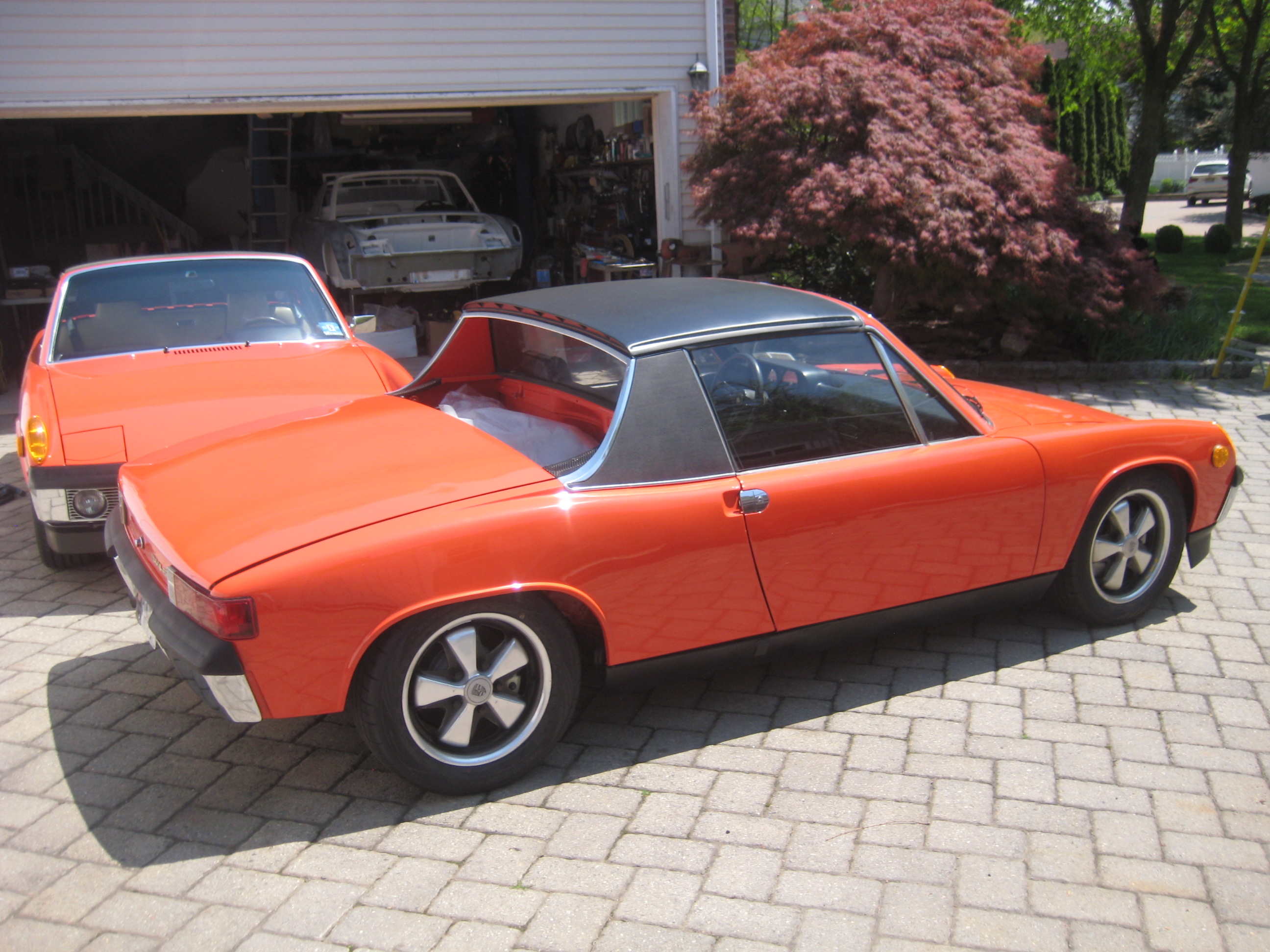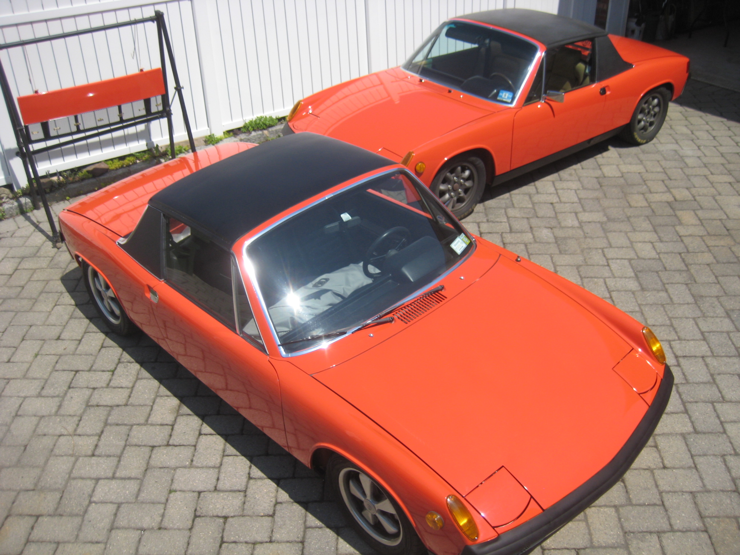 The other car is 914 043 1108 Thirteen apart. My chassis 131279 The other car is chassis 131270 Eight chassis apart My engine is 6404638 The other car has engine 6404639 !!!!!!!! Bingo ! Consecutive engine numbers !! There's more. My friend EJ got his 6 # 1208 a few months ago and needed someone to reassemble it. The car had sat as a stalled restoration since 1991 The engine had been rebuilt but was never started I'm the lucky guy who did the honors. Unbelievably, the engine had been rebuilt by Fred Apgar, who I worked for in 1978 ! Here they are in my driveway today. Attached thumbnail(s) |