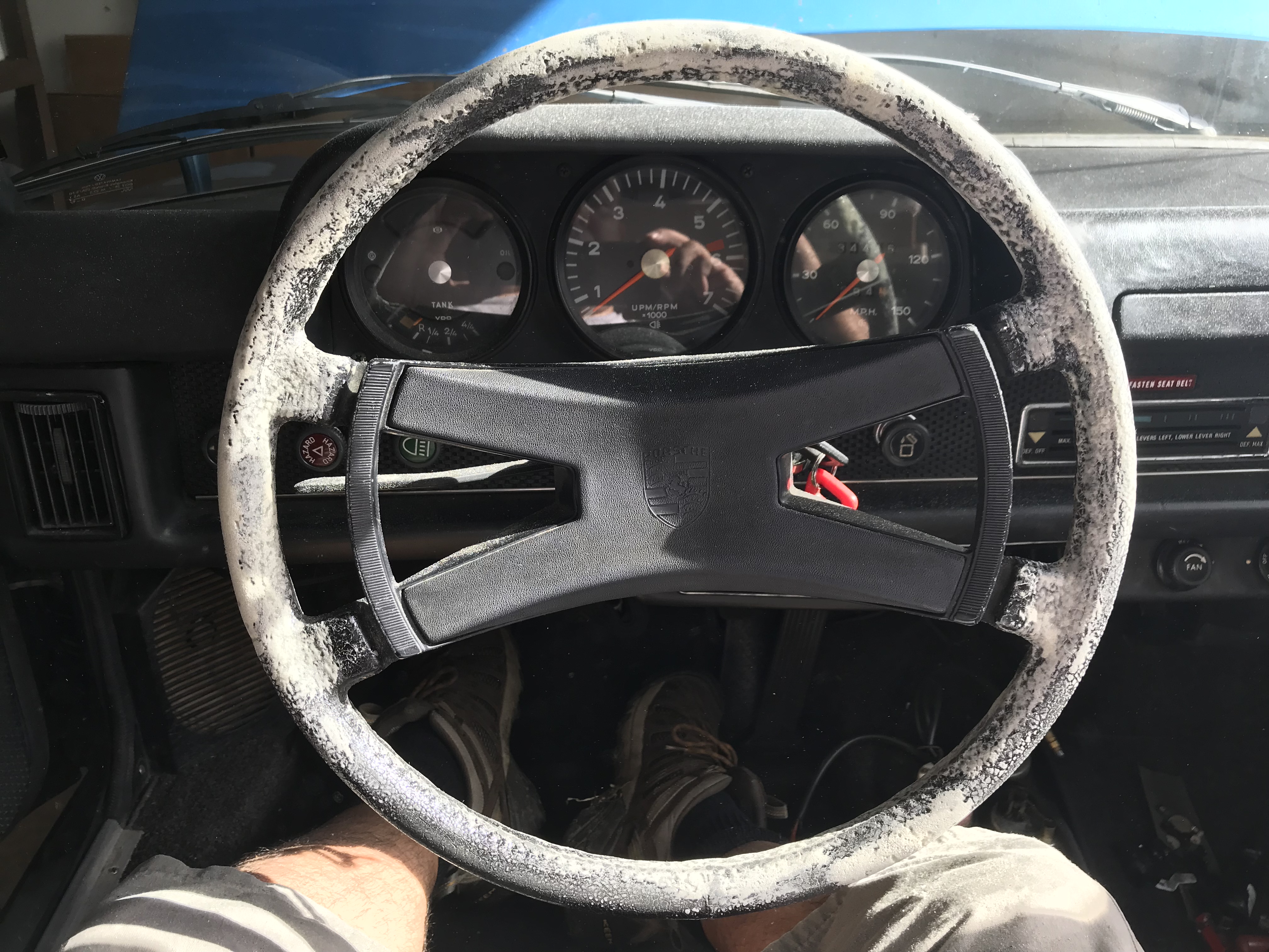Getting ready for an Alan Gunn R914rsr leather kit last night and found a solution to the deteriorating rubber. The top was separated and the rubber was in bad shape. I drilled some holes in the separated section and blew some water in the holes. Then I forced original Gorilla glue in the holes. Then I used a small brush typically used for flux to cover all the rubber. I used the brush to keep the sections that were ok from expanding and let it expand where chunks of rubber were missing. Sanded it this morning with 80 grit. I didn’t need to get it perfect because I think the felt and leather will cover but I feel like with more work I could have almost made it perfect.