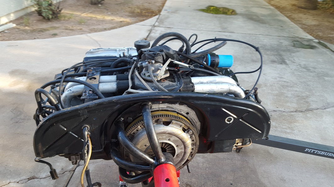 I have the transmission all bolted up to the engine. I also replaced the alternator with one that had an internal voltage regulator so won't have to use the stock relay board. Perry Kiehl fabricated a conversion wiring harness for me, it is some great craftsmanship. It would be a serious horror show to see what it would look like if I made one (IMG:style_emoticons/default/laugh.gif)