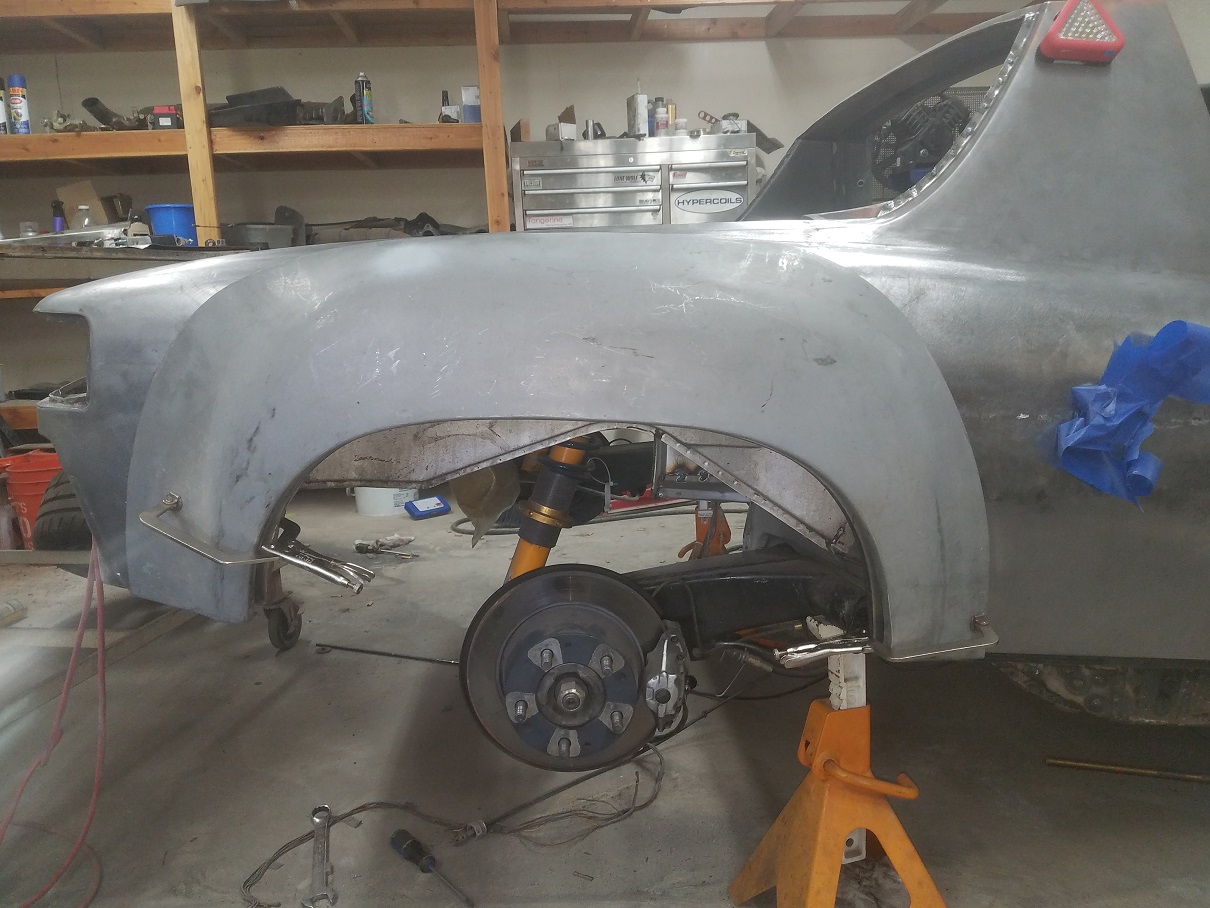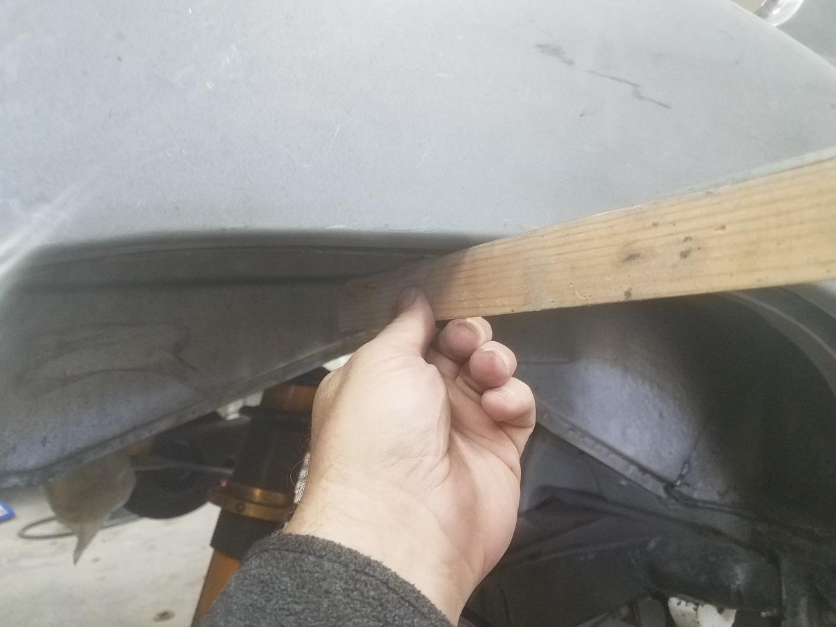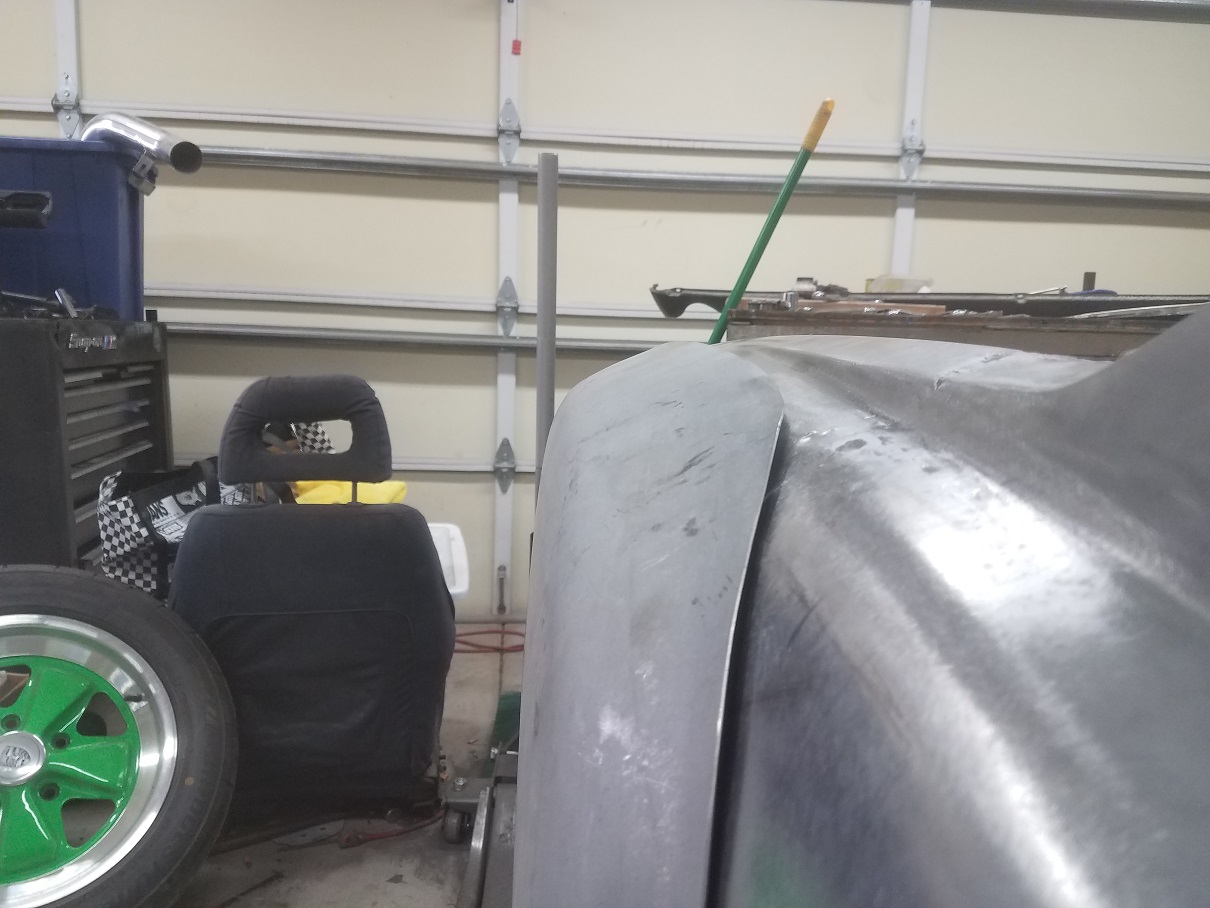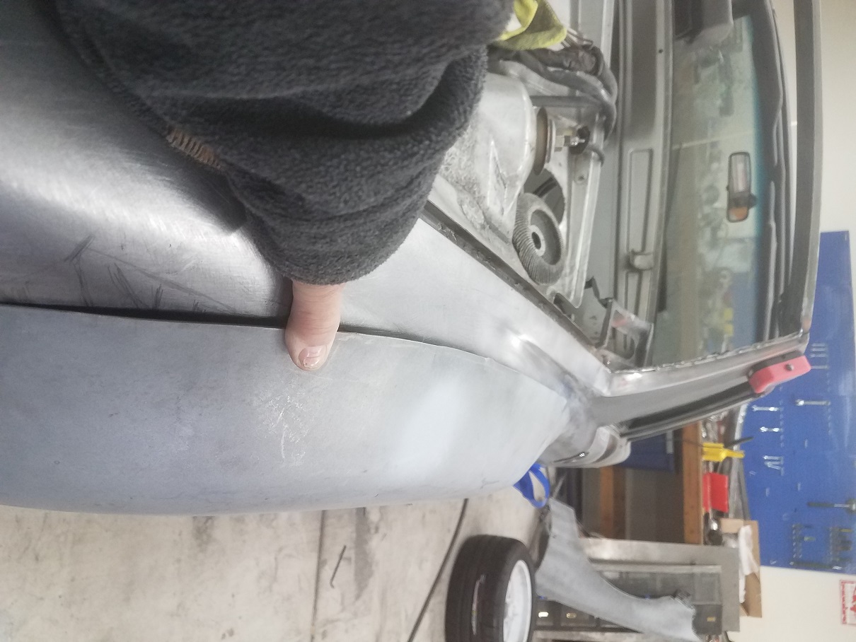 Takes 3 cuts one at the top, and one about mid way up the side in front of the wheel, and one on the rear to keep the shape of the wheel arch. Then pull out to where you want, and run a filler in all the areas. My car ran a bit of bondo to get it a 20/20 car, 20 feet and 20 mph, it looked stock. In reality there is plenty of metal in there if you wanted to stretch it a bit. Lots of time with a palm nailer and a polished head will get it done. They also now make heads for short stroke air chisels you can move some serious metal with them. I did it all by hand with my trusty English leg wheel. A leather purse with a bag of shot zipped in it, don't tell the wife, it had a bunch of ugly ass Gs all over it, it was just calling me to hit it with a hammer for days on end. She complained a year latter about a Gucci this or that, (IMG:style_emoticons/default/confused24.gif) (IMG:style_emoticons/default/lol-2.gif) No it was a cheap leather purse all black that she gave me. Luckily she is not into fancy purse with Gs, just cars, specifically German cars that tend to cost me more coin than a purse with a G on it. I am one lucky SOB |