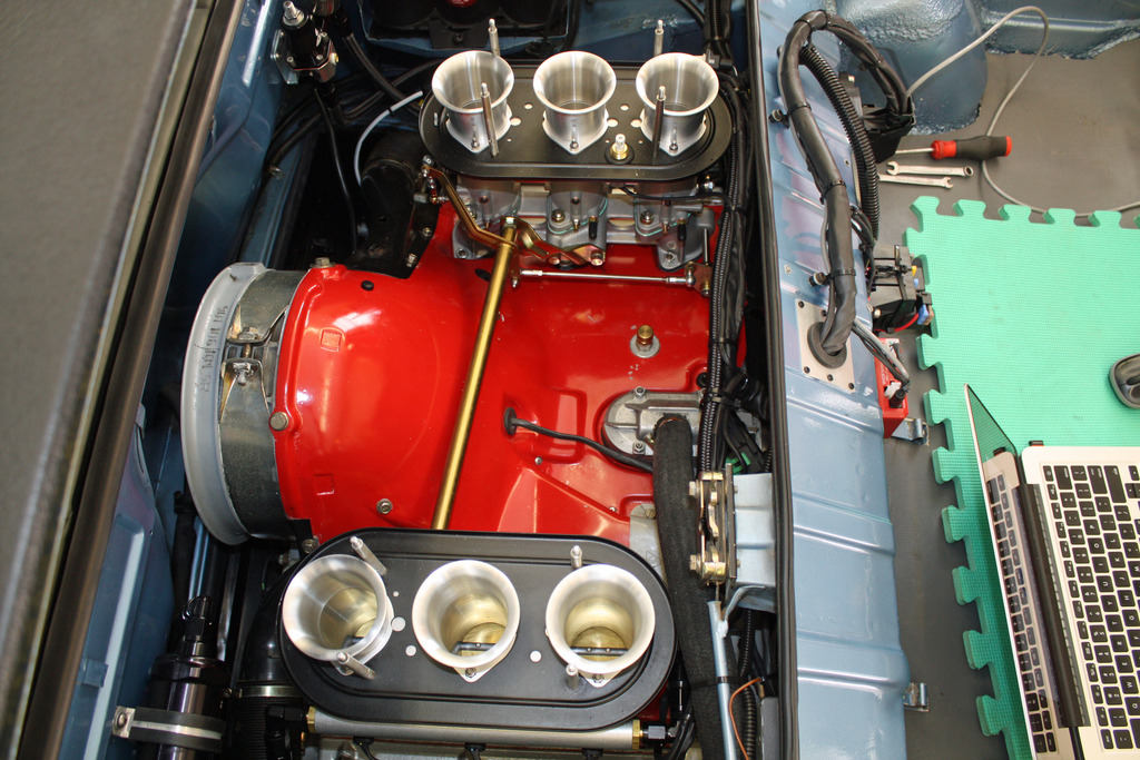 So I hung up and installed the stock starter. I tried it just before I called him and it started!! After getting him back on the phone, I got it to start. It was idling roughly, but idling. He was looking at the readouts when I decided to give it some gas to see if it would smooth out. It died and then would not restart. His conclusion was that we still had an issue with something messing with the crank sensor signal. His solution was for me to install a 1K ohm-1/2 watt resistor between the red and black wires of the crank sensor. I called around and could not find anyone local selling resistors. Times like this are when we miss Radio Shack!! So I called my son and asked him where he would go to get a resistor. A little later he texted me back that they had a 1K ohm-1/8 watt resistor there at TRD. Since the cranks sensor signal is very low voltage, he thought it would work. It just so happens that he was coming to the house after work so he brought two with him. Last Saturday I dd a Craigslist search for some garage cabinets. I came across an ad for four cabinets. Three were 78" long, 30" high and 12" deep. Another cabinet was 52" long. They were taken out of a medical clinic and were in excellent condition. Best of all, they were free as they wanted them out of their sun room. On Sunday, I hooked up my little utility trailer to the Audi and we picked them up. I plan on using two of the 78" cabinets while I gave the other two to Matt. Which is why he was coming to the house. (IMG:http://www.914world.com/bbs2/uploads_offsite/i188.photobucket.com-22140-1552358798.1.jpg) (IMG:http://www.914world.com/bbs2/uploads_offsite/i188.photobucket.com-22140-1552358799.2.jpg) Before we did anything with the cabinets, we began discussing the issue with the car. He told me that he could not see why a starter would dirty up a crank signal. I told him what had transpired earlier and, after a bit, he said, let's see it we can get it to start. I cranked it over and it started. Again the idle was very rough. Back in 2006 Matt had built a fuel injection system from scratch for his Camaro. He used an earlier version of the TEC ECU so he was familiar with the readouts. He did all of his own tuning on that car. The Manifold Air Pressure (MAP) readings jumped out at him as he thought they were way too high and causing the computer to call for lots of fuel. We could tell it was running very rich. It was five o'clock here, but only two on the west coast. Richard was in and he and Matt were soon discussing the readings. He told Matt that the cams were too radical for the MAP sensor to work. He had Matt disconnect the main hose and plug it. He also wants me to remove all of the hoses that run to the throttle bodies and install a bolt in those places. The MAP will stay in the system but will become a barometer. He wanted us to back out idle screws all the way and then screw them in 3/4 or a turn. And then we could work on the idle. I started the car and Matt went back and forth adjusting the idle but it did't seem to make any difference. It was idling at 500 rpm. He had me give it some more gas and then, when I let off, the idle went way up. We shut it down at this point and told Richard we would call him back once we had the idle set. After disconnecting the linkage, Matt started over and, again, it did not seem to make and difference where he set the idle screw. He then noticed it was running very lean. So he richened it up and the idle immediately went up quite a bit. Now, when he made an adjustment, something actually happened. This is where we left it for today. Tomorrow I am going to go through Richard's procedure for balancing the intakes with a sync meter. Once I have done that, I will be calling Richard back to have him make final adjustments. I had a small drop of fuel near the fuel pump area that I need to look into. Also, that original oil leak is still there now that the oil was under pressure. I will see if I can figure out some way to tighten that line without removing the tank. Matt looked at it and said, "Good luck with that!" |