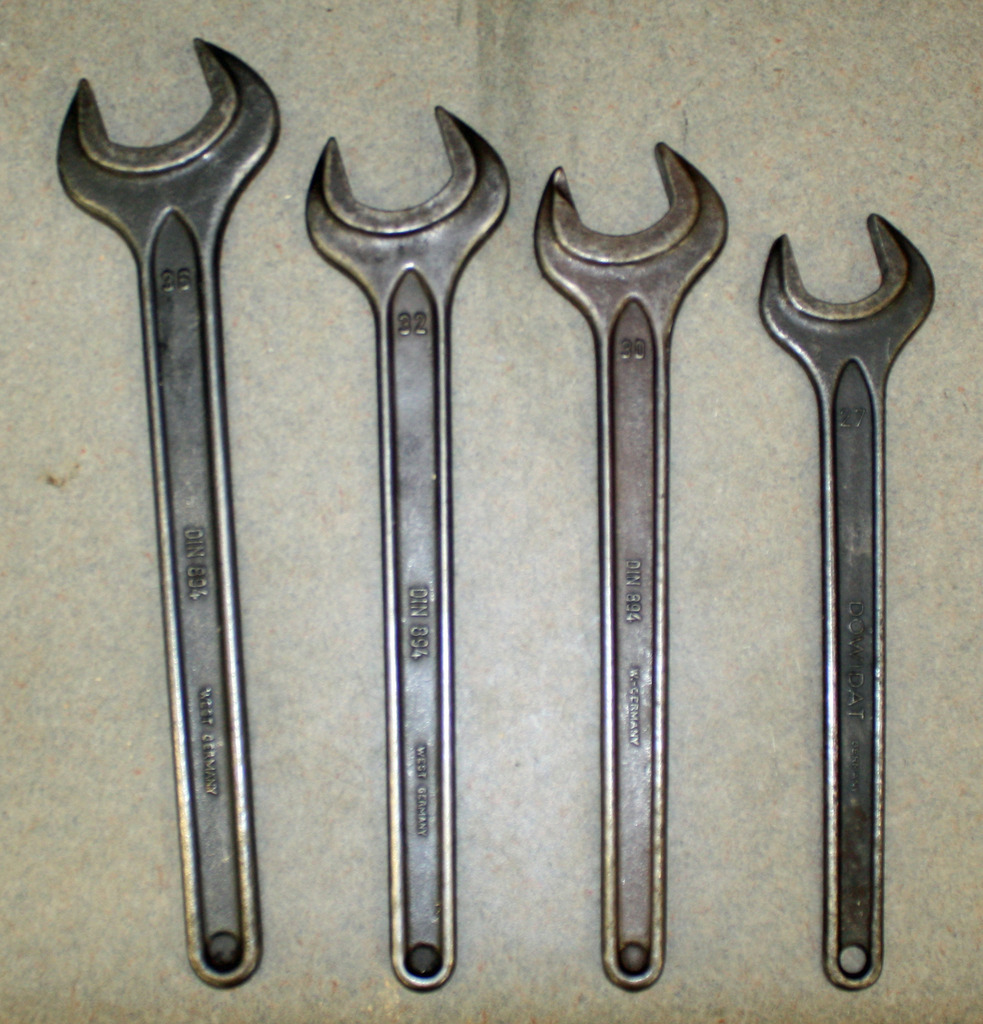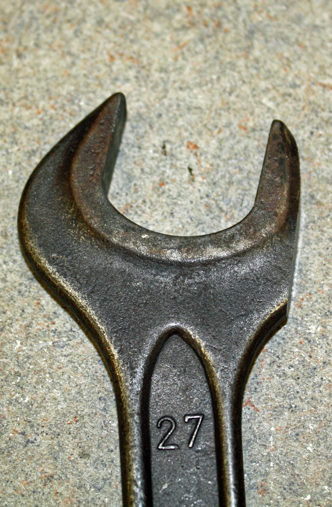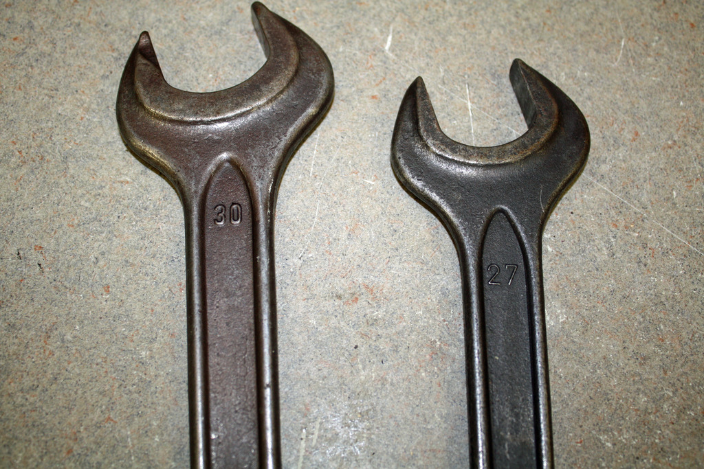 Before I began troubleshooting cylinder one, I worked on the two oil leaks. Both were at connections to lines. The one on the bottom was easy to get to, but I needed a 1/3/16 wrench for one side of the AN fittings. I didn't have a wrench that size. I was about to go uptown to buy one when I wondered if my old 911 oil line wrenches might work. I dug them out and, sure enough, the 27mm and 30mm wrenches fit perfectly. After tightening the center line, it was time to figure out how to get the 27mm wrench on that fitting under the tank. After grinding off a significant amount on the 27mm wrench, I was finally able to make it work. With it in place, I used the 30mm to tighten the line. I ran the motor later one while doing the troubleshooting and both lines were dry after I shut off the motor.
