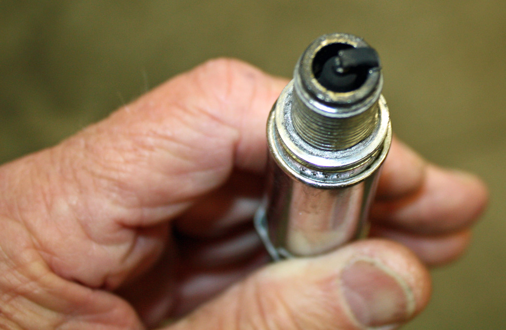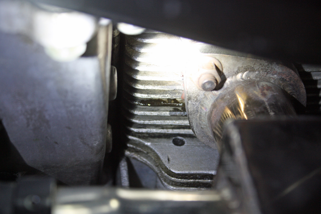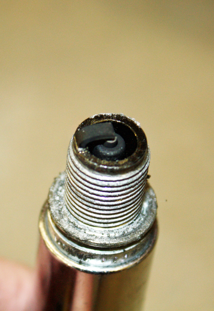 To try to eliminate various items, I switched the coil packs on cylinder one and two with no difference. I then switched the spark plugs, again, with no difference. The cylinder two spark plug looked pretty much the same as cylinder one. I also noticed a new oil leak on the bottom of the number one jug.