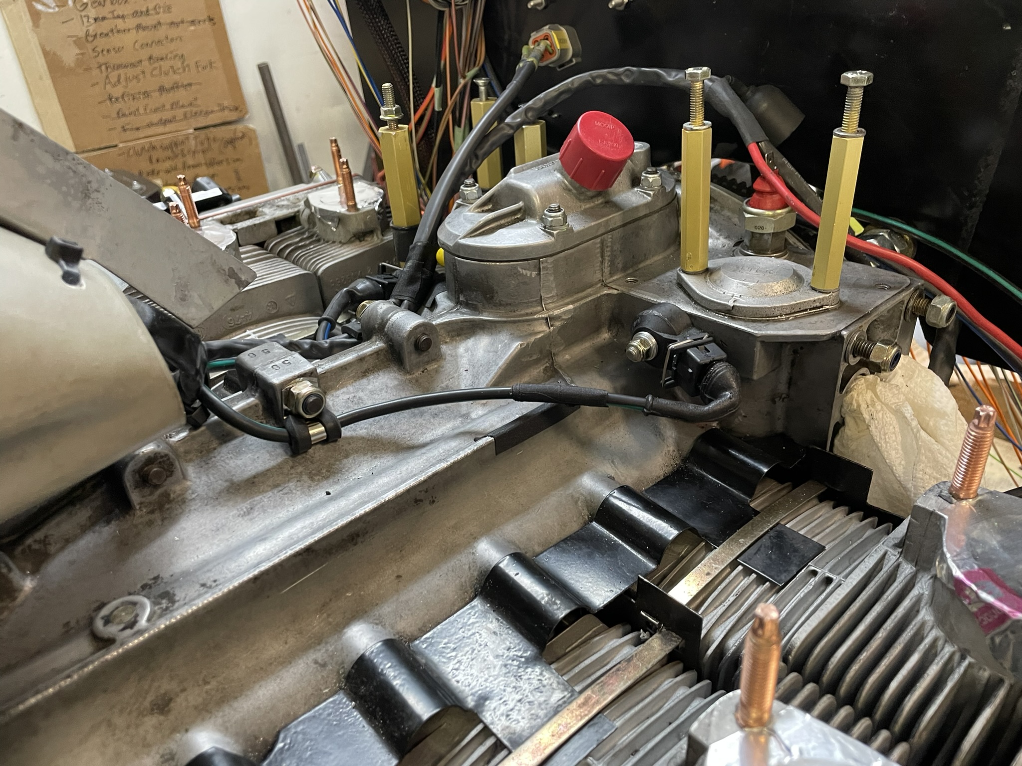The result? A robust, reliable harness that should stand the test of time. The setup includes two wideband sensors and two knock sensors, plus a drive-by-wire system that uses an E36 M3 throttle actuator. It has a built-in TPS (Throttle Position Sensor) and an additional TPS on the PMO injector. These two constantly compare data to ensure there’s no malfunction—redundancy for the win! To make life easier, I bought an engine-running stand from Amazon (seriously, how cool is it that you can just buy one of these on Amazon?), then welded up adapters to match the 914 engine and transmission mounts. For now, I used the 901 transmission just to keep everything in place. This stand turned out to be a game-changer because I wanted to sort out the starting and no-load running of the engine before heading to the dyno. And boy, was I glad I did. I ran into some headaches with the cam sensor phasing. The Haltech is particular about the cam sensor being in a specific window relative to the crank sensor, and troubleshooting that would’ve been a nightmare with the engine already in the car. On the stand, though? Piece of cake (well, mostly). I also was able to go through each sensor and make sure it was reading correctly. I had a few errors...as always, but again how nice it was to do it outside the car! Once I had it running, I started it cold every morning for a few weekends, dialing in the cold start parameters. It was so satisfying to tweak it, start it again, and see the improvements. By the time it’s ready for the dyno, the engine will already be in a great spot. Here is a video of the throttle actuator working (a happy day!): Throttle Actuator Video |
