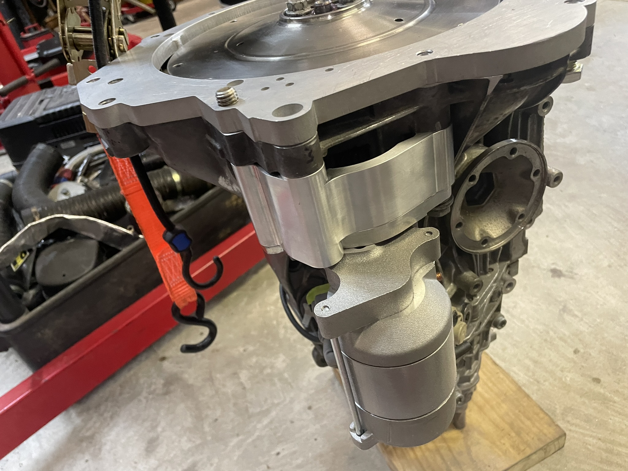 On to the transmission...The first challenge was to create an adapter that goes from the 911 engine to the 012 bellhousing. So I bought some giant digital calipers and spent a bunch of time measuring. Since there will be a certain amount of error in this, I 3D printed it a couple times to get it dialed in. Then I uploaded it to send cut send and got one cut out of acrylic. Still another could of adjustments and I ordered one from them made from 1/2" 6061 aluminum. It is a little tricky because I needed to step it up past the oil cooler on the driver's side. According to my measurements, the input shaft on the 901 transmission sticks out 10mm past the face of the bellhousing. The 012 transmission has the input shaft recessed by 9 mm relative to that surface. This means you have to cut 19mm plus the thickness of the adapter plate off the bellhousing of the 012 transmission. (31.7 mm). I did this and leveled it out using a dial guage to within 0.005" relative to the input shaft by hand. I also cut the hole for the starter and its adapter. How did you cut the bell housing? Will the throw out bearing "travel" work with that much cut off? Nicely done! |