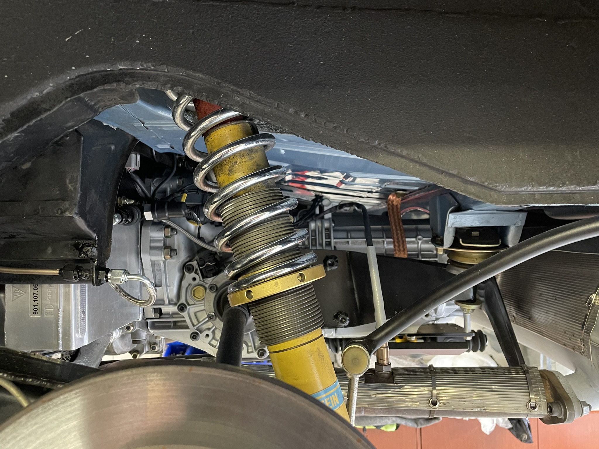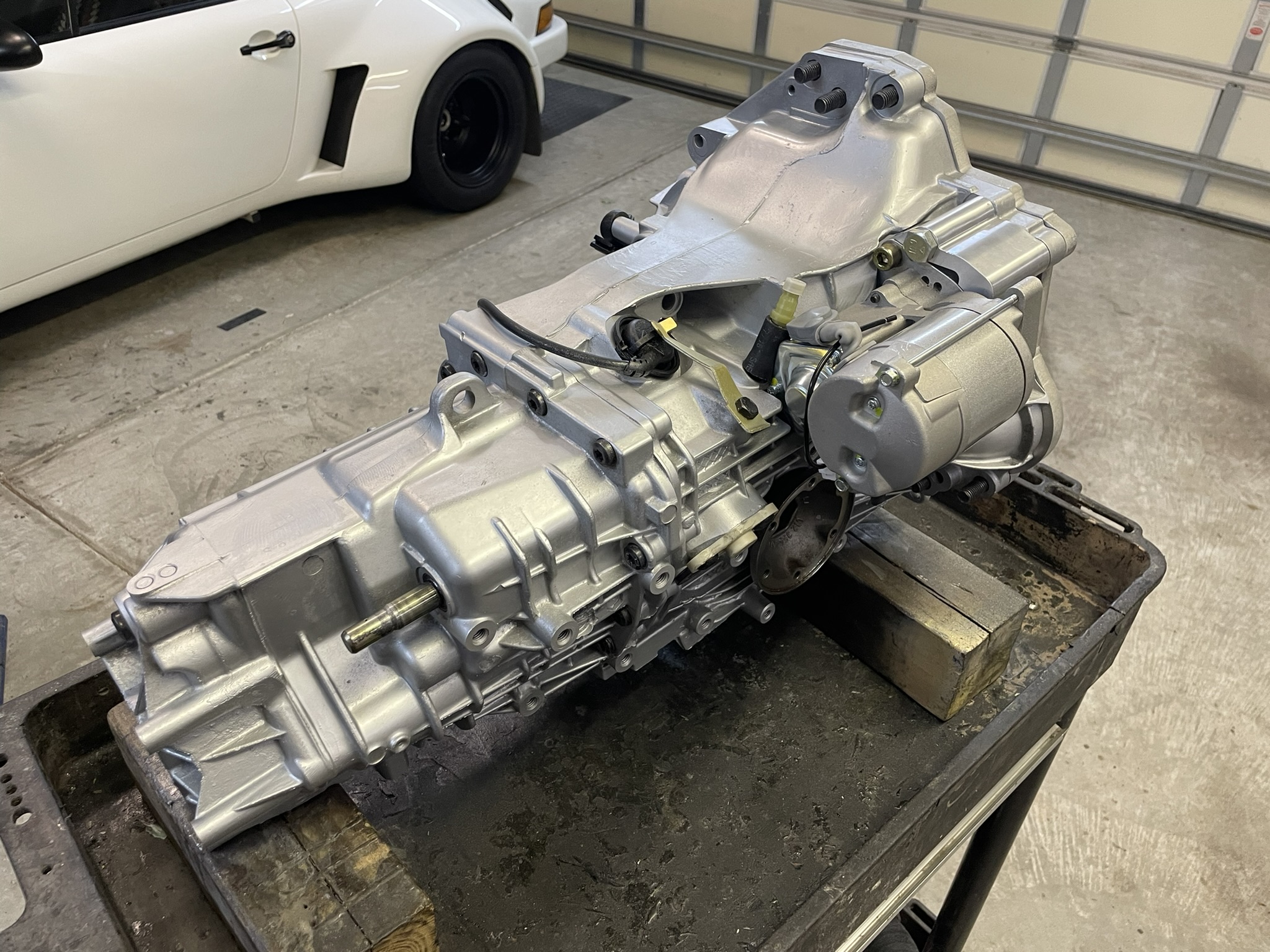 First up: the Electromotive ECU. Let’s be honest—it was great in its time, but it’s like comparing a flip phone to a smartphone. So, I treated the car to a cutting-edge Haltech R3. This ECU is a total game-changer. It has a built in PDM so it can manage the fuel pump, ignition, injectors, and even the auxiliary oil cooler fan directly. Translation? No more clunky relays, and everything is controlled with precision. And here’s the best part: I can connect to it over WiFi and monitor or tune it straight from my phone. I still use the PC for most of it, but that is handy for minor tuning! Oh, and why not make it drive by wire? Who says classic cars can’t live in the future? Next on the list: the gearbox. While the engine is a masterpiece, the original 901 gearbox was… well, not. I considered upgrading to a 915, but side-shift versions are as rare as unicorns, and to be honest, I wasn’t impressed when I drove one. Maybe it was a bad example, but the shifts felt slow and uninspiring. So, I went bold and decided to adapt an 012 5-speed gearbox from an early Boxster. It’s a fantastic modern gearbox, and while most use cables for shifting, I opted for the Audi version with a shaft mechanism to preserve that crisp, direct feel. Of course, swapping this gearbox into an early 911 isn’t exactly plug-and-play. Here’s what I was up against: