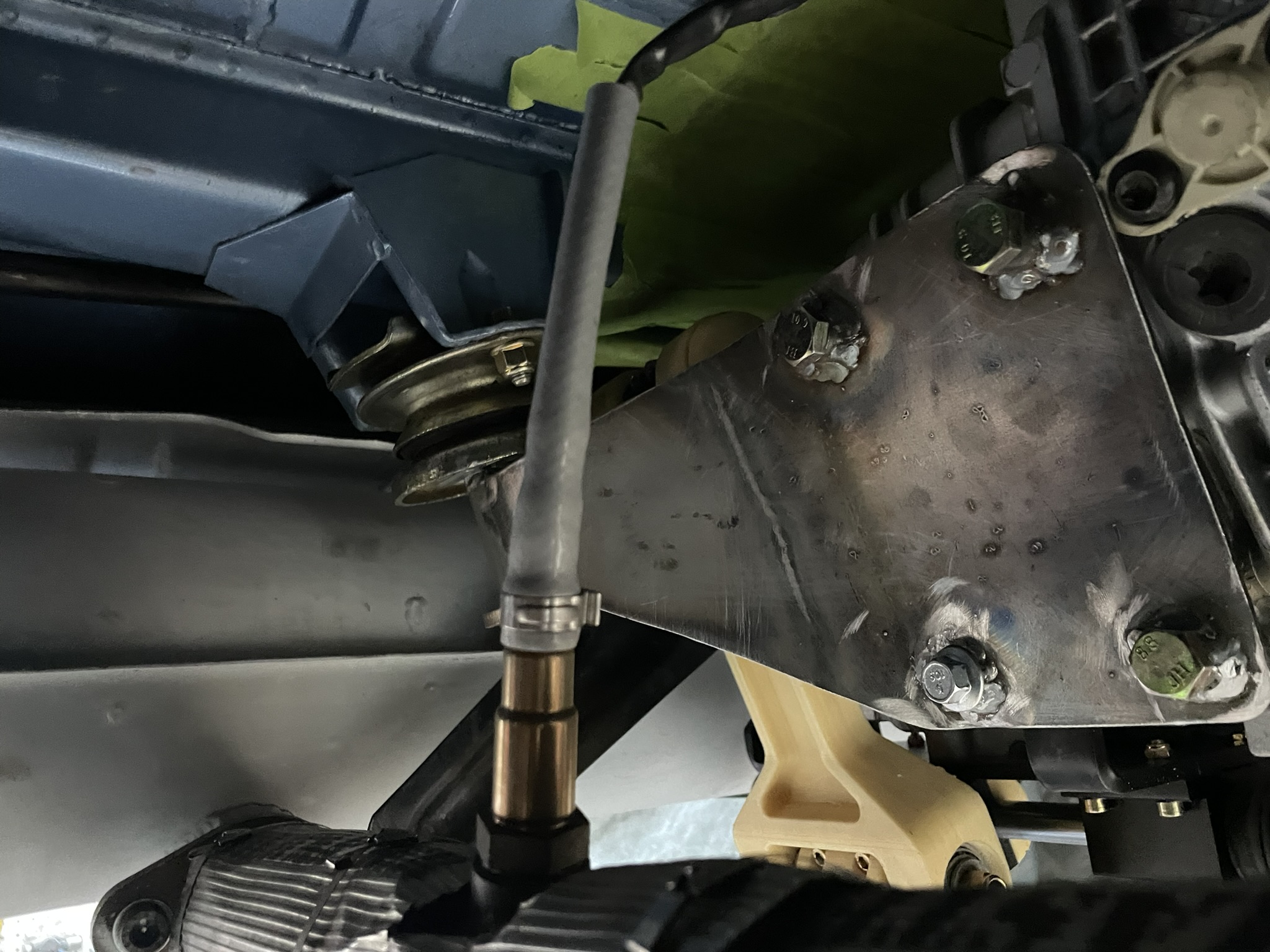 Next, I cut some 1/8" steel plate and bent it to span the gap between the spacers. After marking and drilling the necessary holes, I welded the whole assembly together. The result is a sturdy, custom mounting solution that fits perfectly and keeps everything secure. Notice the 3D printed thing in the background...foreshadowing... |