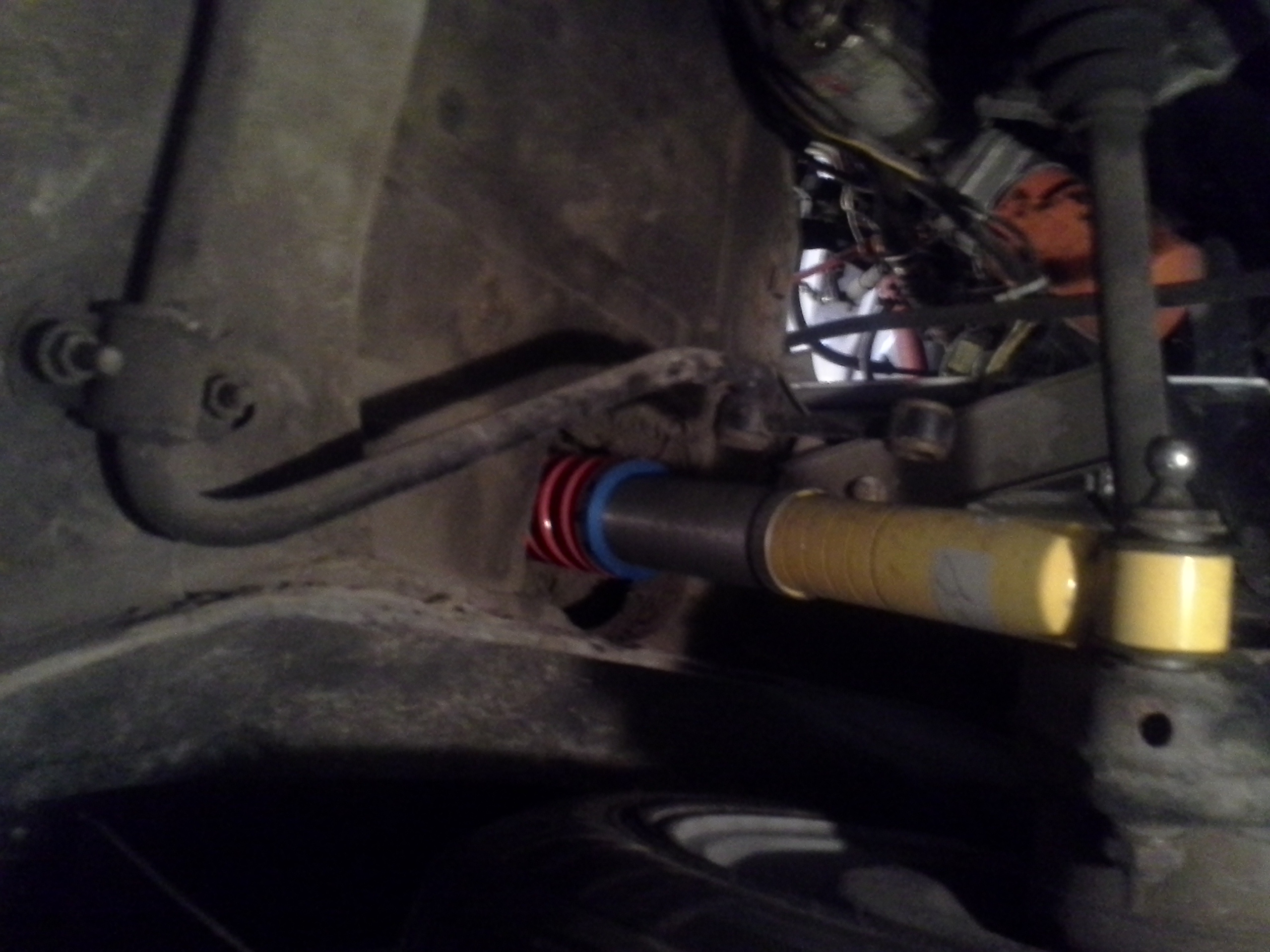 Before w/150 lb 8" Eibach Notice that the sleeve extends above the top of the shock with the 8" spring. Not good practice as far as I'm concerned. On my car at least I wound say a 10" spring is the minimum. Not available anywhere I could find on this continent in that ID. Bought them online from England form Rallyuts.com. 160 lb 12" available just about any length and 10 lb increments. After |