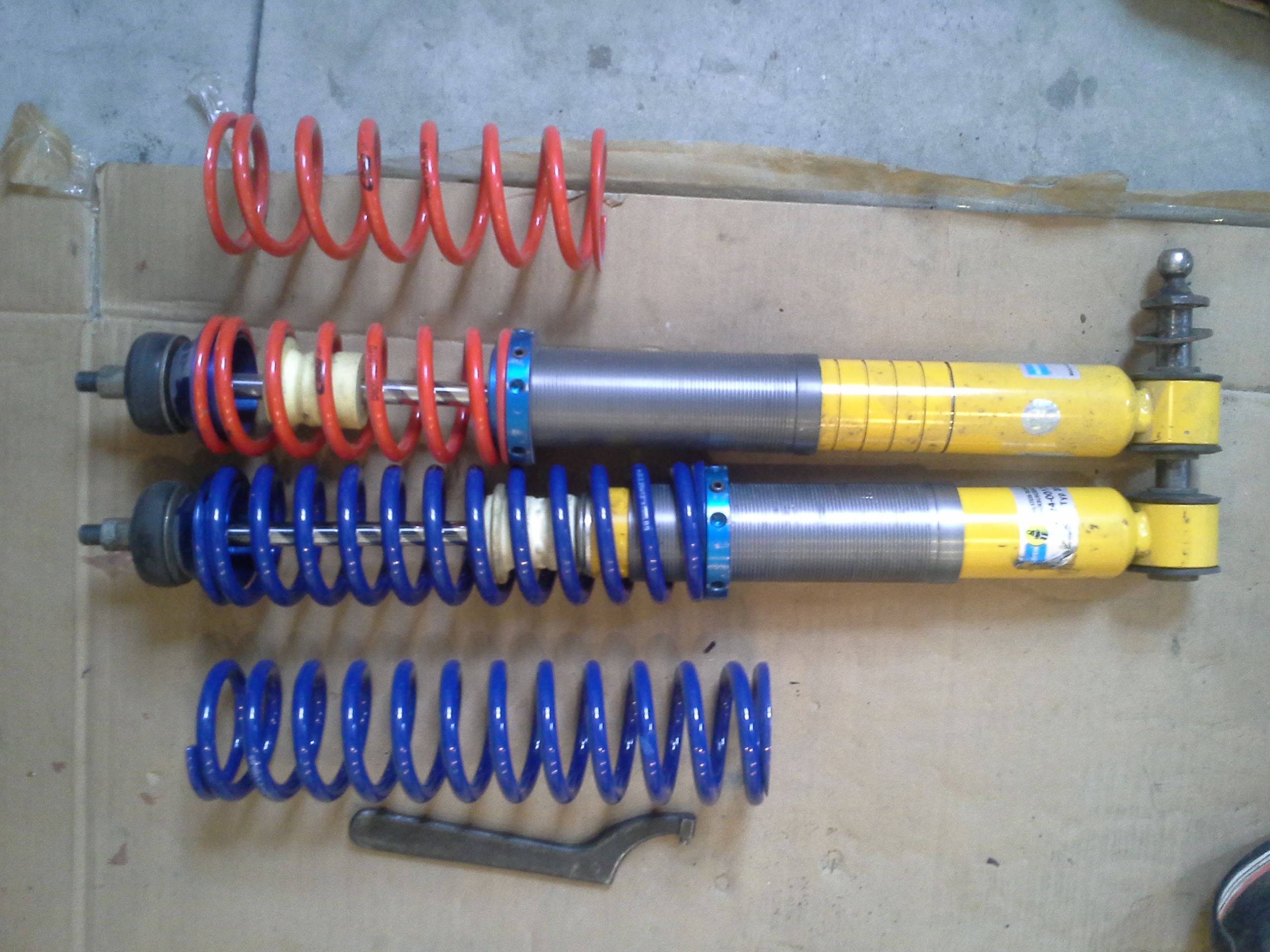 Spacers are here from maddog..... Bit the bullet and ordered a set of coilovers and new bilstiens (auto Atlanta) I hope 140 lb springs isn't overkill! Parts are in, fast shipping! Anyone have a recommendation on which groove to use to put it together? Rigs are in the bottom groove out of the box. I don't think the back of the car is much heavier than stock. Kit came with 150 lb springs... I have those Bilisteins too, but not the coil overs, but have thought about getting them. on the question about where to set your retaining ring, at least with a stock spring and set up I have found that the top #1 slot is too bouncy, and that in my case #2 or #3 will be best, I am at the #3 from top now and am going to move it up to #2. At #3 I am a bit lower in rear than front than I want to be, and this is easier than having to crank the front down and re do alignment up there. will see how that feels in the seat . How much did the coil over springs with out the shocks cost? |