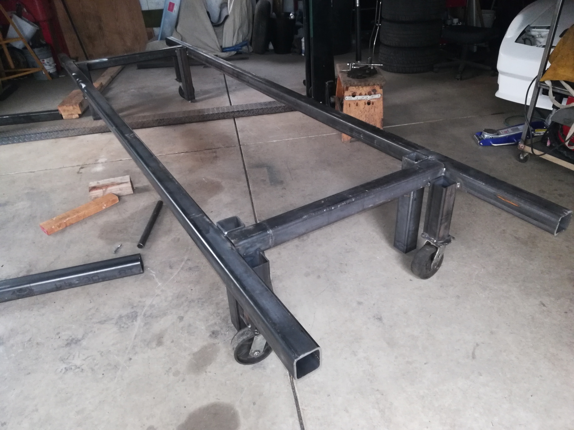 Also how about a sliding "L" bracket that bolts to the leg and allows for the jig to be more stable? It could also be bolted to the floor. I worry about it toppling with the chassis on it or at least not being perfectly stable. With this you could still level the jig with the feet, but then attach these L brackets after all is said and positioned. This is a good idea. Chris mentioned attaching it to the floor for pulling. I may just wait to see if I have to pull something. I could put stabilizers on it to prevent rolling over, but we'll see if that's even necessary. I found this one that someone made. I wish mine was this light. it looks like good bracing to make it strong enough to stay in shape. ![]() ![]() |