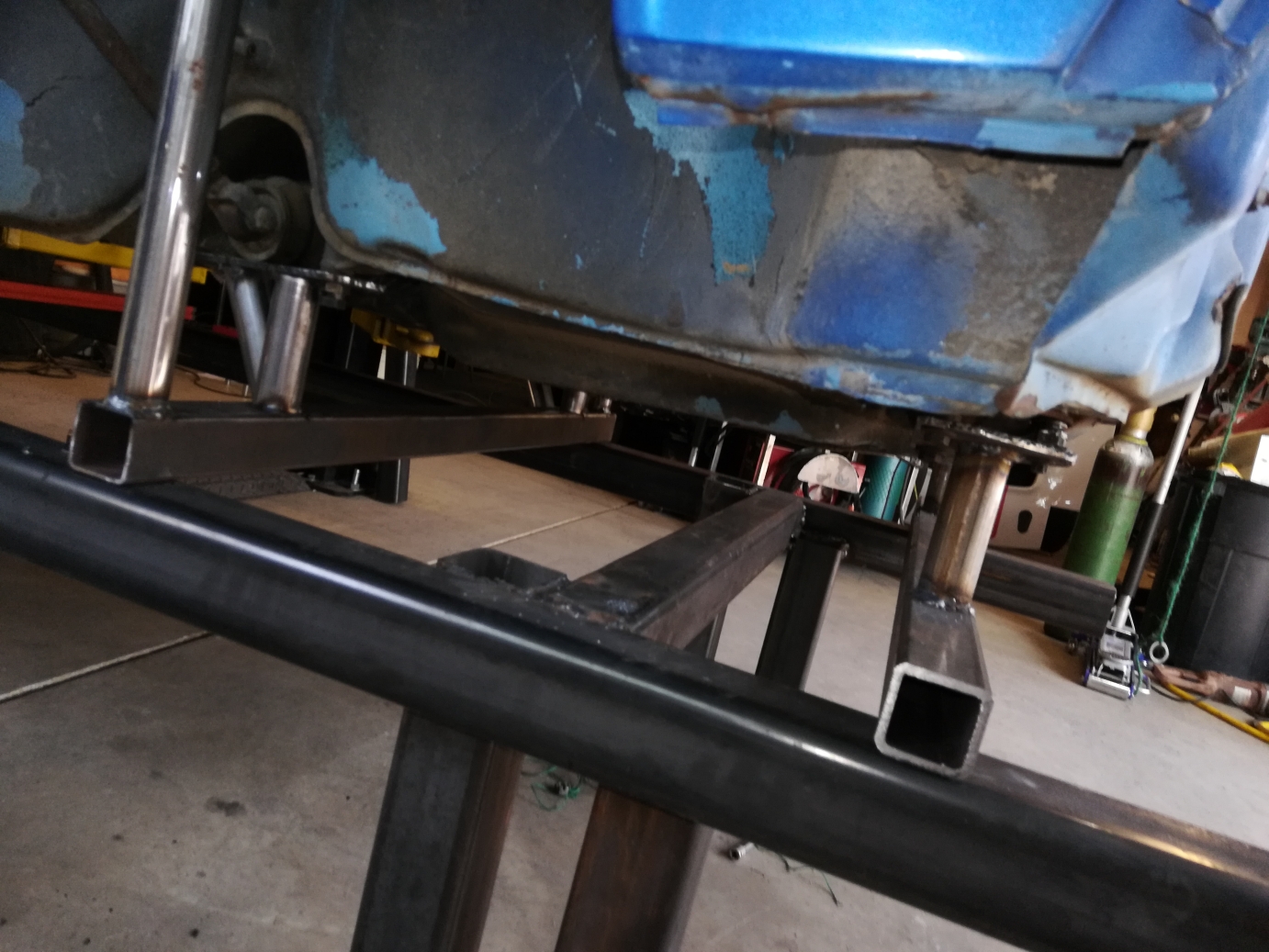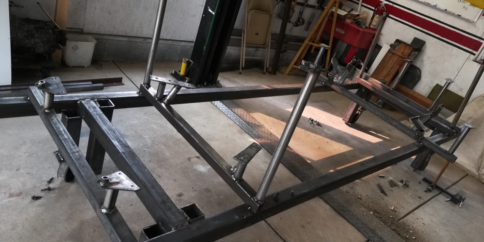 The weekend was a wash, but weekdays are for working so I got a bit done. I made the mounting plates for each of the chassis mounting points. (minus the bumper mounts, since apparently I assumed too much..) So, now I'm working on cross members that will accept the arms that will weld to the plates. I have two mocked up, in the pictures below. I decided on round 1.5" tubing instead of square tube mostly due to being able to index the tube to get a nice perpendicular (isn't that a fun word) connection to the jig cross members.. I'm finding that I will probably need to finish weld at least 2 of them so that I can hang the Jig frame and get the exact measurements of the other arms. I'm thinking that I will go and get some more 2" square tube along with some 6" bolts to go thru the 3" + 2" square and mount them to the main Jig for consistency. Before I do that I will align and level the main Jig frame. (not that I think it matters but only because it may at some point down the road.) then I will trim and final weld the 2 end mounting points. (rear trans mount and front lower control arms mount). Then build and tack weld the remaining arms. if all looks good, finish weld and call it good. I may add some cross bracing that will reinforce the arm positioning. I'll have a better idea once I get that far. |