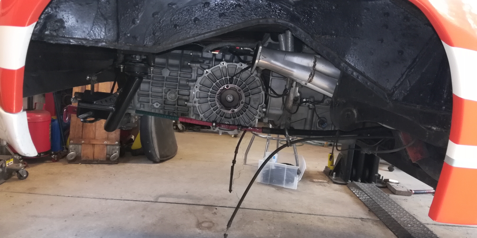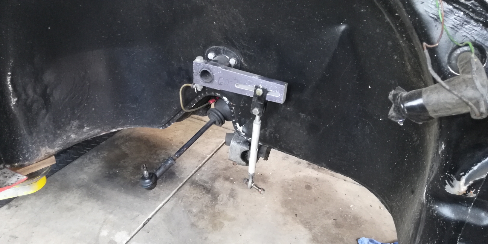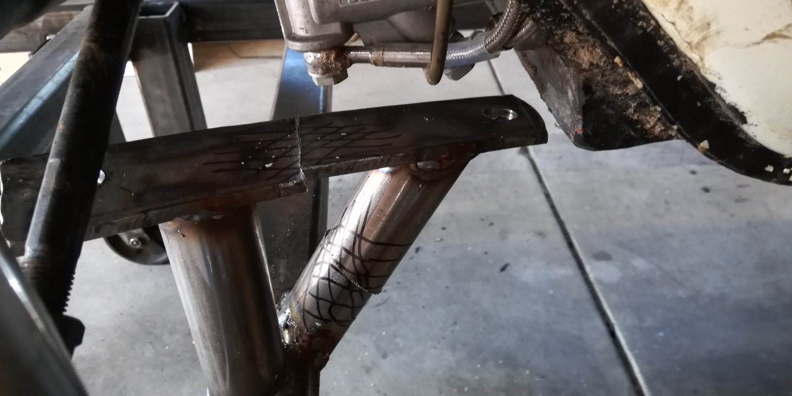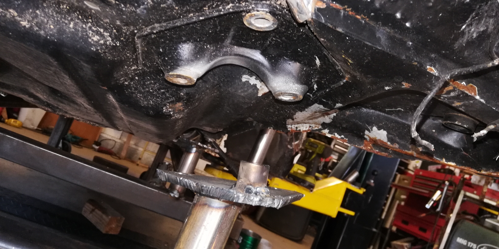 I want to point out that the suspension points is there on your car just the one piece shown was removed to fit the box for the peddles for brake and clutch master. My V8 car with 930 is the same. Bill that built your car was very kind to me and gave me the bent metal to fit these parts. The suspension is bolted to the front points and the point where the rack is. The under-sway bar point on the driver’s side is not there and our cars (mine and yours) need the over the top bar like you have. Now the cover will not have 4 points to bolt up. I am working that out