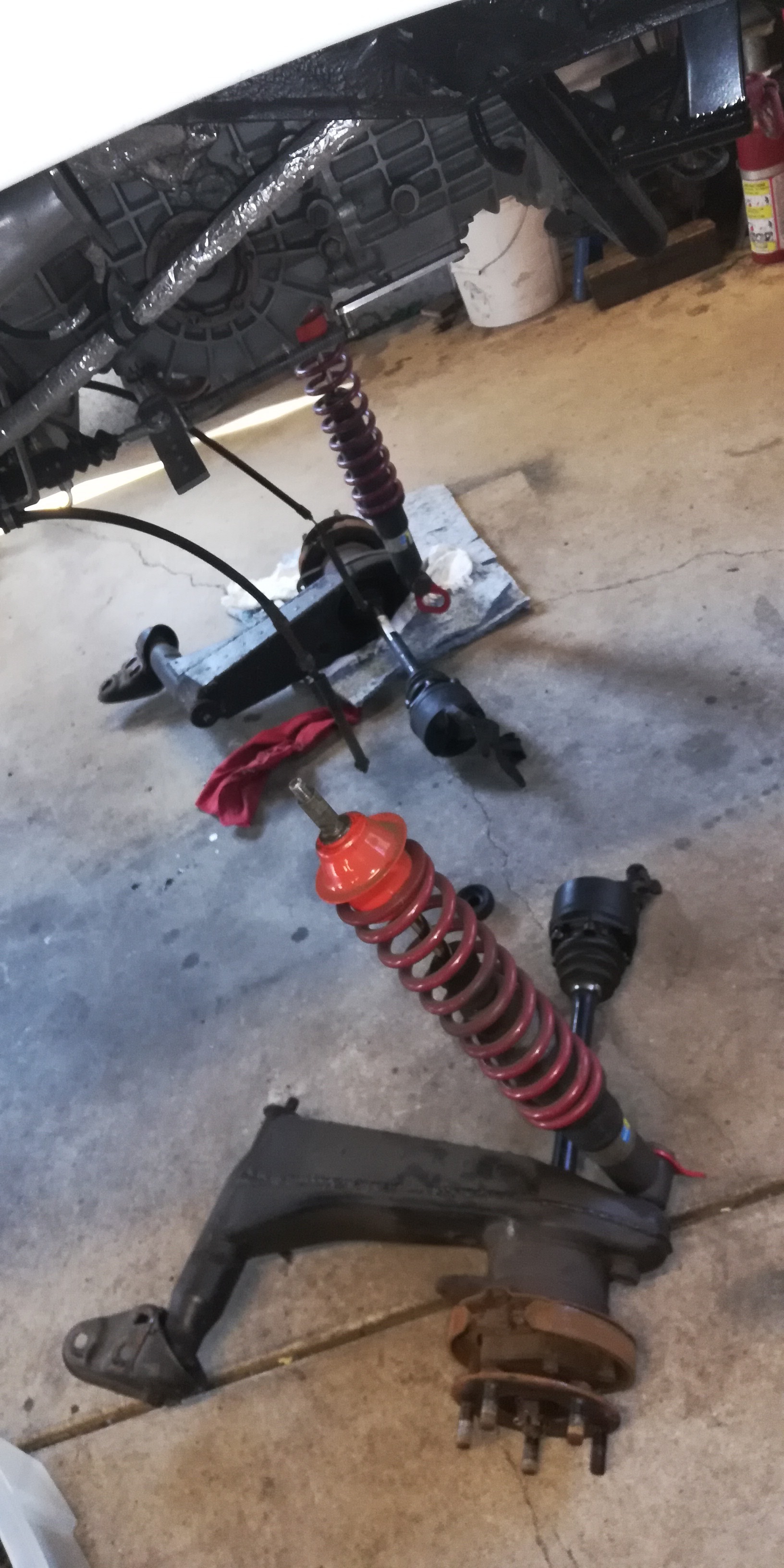 If I convert the 911 Bilstein struts over to coil overs... https://www.rsrproducts.com/product-page/re...t-coil-over-kit Would I be able to use the 914 control arms from the other car and connect them to the 911 struts/tie rods/and aluminum center section. Just how interchangeable are the 914 and 911 lower control arms? trying to kill to birds with one stone. or leave it as is.. (still need to repair broken lower control arm, possibly RS lower ball joint.) Porsche 930 Turbo (1988) front suspension complete with aluminum cross member • Tangerine Racing 32 mm thru body front sway bar kit with adjustable drop links • Porsche 930 22 mm Torsion Bars • Elephant Racing poly bronze control arm bushings • Elephant Racing de-cambered ball joints • Rear trailing arms boxed and strengthened • Bump steer kit • Steering rack limiter kit • Bilstein front struts and rear coil-overs • Eibach 250lb. rear springs, top hats modified with spring helper sleeve and powder coated, strengthened double wall rear shock towers |