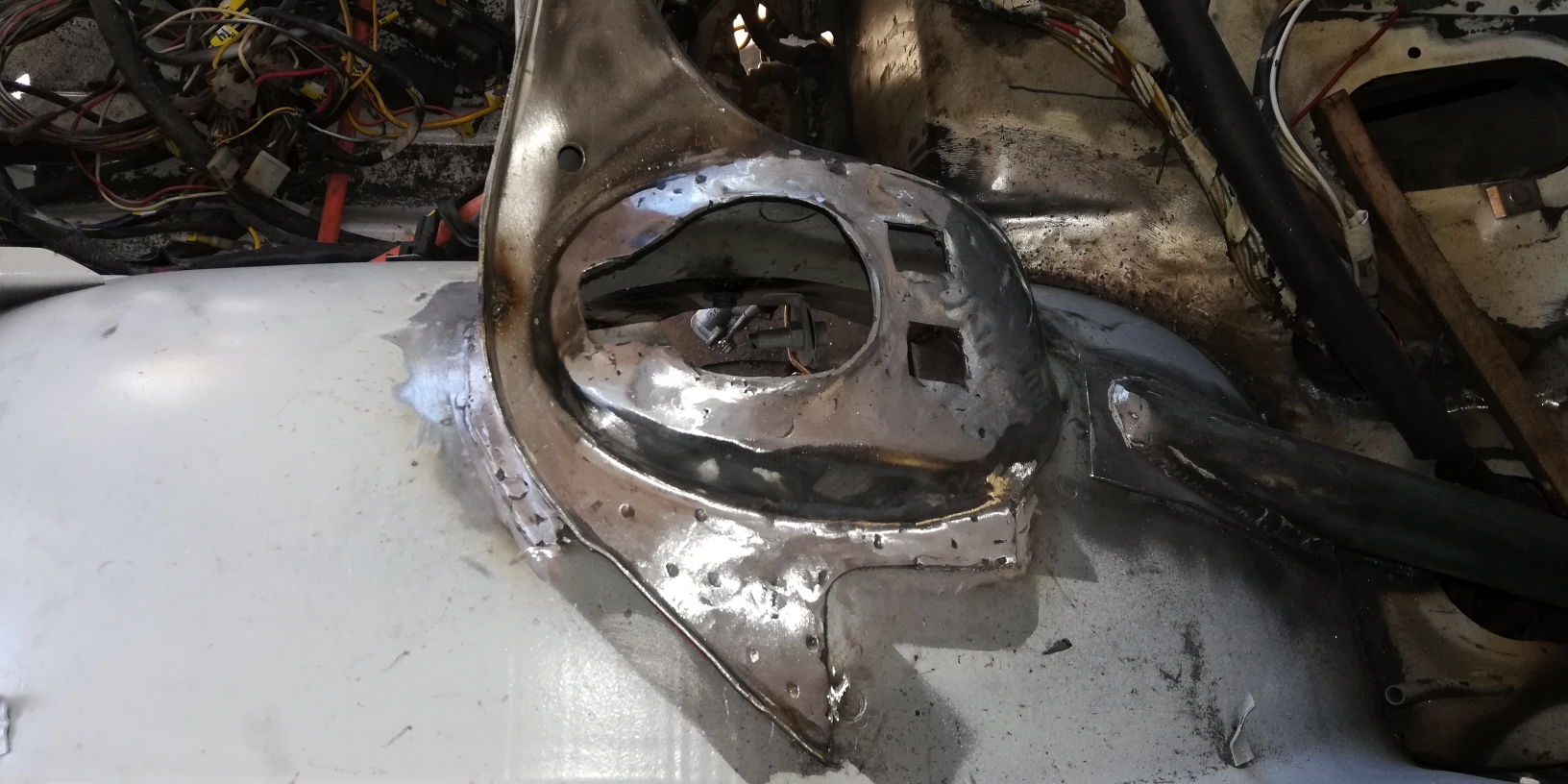 Welding update…. It’s DONE! (well mostly, I’m sure I’ll find more to do if I look hard enough) I spent some time cleaning up the areas that won’t be accessible after I get it assembled. So I put some primer and paint in the areas around the firewall and gas tank as well as under where the suspension will be mounted. Since the underside was previously painted black, I finished it off with a black matte. My next step was to attach the front suspension. Easier said than done. First I needed to mount the clutch master cyl. But, I wanted to mount it in the proper position not upside down as it was.. I found out quickly that they did it for a reason, because the master and the steering rack wants to occupy the same space. I’m sure a couple of you already told me that, but I had to try. So that means I had to bleed the clutch master right side up before mounting it upside down. That also means I had to connect the clutch slave, and the clutch slave bracket, but that means I had to reassemble the oil pickup tube and oil pan. Having done all that I realized that the clutch throwout lever wasn’t engaging properly so I had to pull the trans back and reengage it correctly. I had previously pulled the transaxle out but not put it back in correctly. (There are no books on this) Ok, where was I (are you still following this?) Can you see why this is taking so long? Now the transaxle is back in, correctly engaging the throwout bearing. The gearshift cables are re-connected. The slave cylinder is connected, and guess what. It didn’t need bleeding. It works great. So now I need to flip the slave cyl over to gain room for the steering rack and then… mount the wildwood brackets and pedals, mount the front suspension, run the fuel line, fuel pump, filters, fuel tank, etc cut out the opening for the radiator, fab up radiator mounting brackets, etc. run the hoses. Reassemble the heater, vent hoses, and water lines to the heater core. Cut out turn signal light openings in the fiberglass fenders. Then mount those lights. I also have to do the one part that is still 914. That is assemble the headlight buckets. Now comes the fun part. Wiring it all back up. I labeled it all and marked it down on paper and lots of photos. But it will still be ‘fun’. I left out an important part. That is mounting the fiberglass fender and front bumper assembly. So I’ll probably insert that in to the mix where appropriate. Oh and the windshield install. And the door. And a tune-up. And the seat mod, and roll bar mods. And some day I’ll get to paint… So, there are a few bits to accomplish in the next month before the first autocross. (IMG:style_emoticons/default/av-943.gif) (IMG:style_emoticons/default/av-943.gif) (IMG:style_emoticons/default/av-943.gif) Good work Dan! Been there done that regarding clutch lever! LOL That's why we put those really nice studs on the engine so it is easier to properly install the transaxle and specifically the fork. Re the master cylinder ...we re-enforced and fabbed up that floor mounting area with the wrong stroke master (Couldn't get enough throw with 1 1/8" so went to 1.4") and when we purchased the 1.4" master we realized the mounting bolts were opposite! I will never know WHY Wilwood in their infinite wisdom did that! After contemplating changes and a few beers later we decided the easiest solution was to mount it upside down after bleeding! (Reservoir/Low pressure side comes in from bottom instead of top). It works fine as long as no air gets in system. Make sure system adjusted correctly as you will have just enough throw to properly engage or disengage the clutch. Ask me how I know this... LOL Best, Paul |