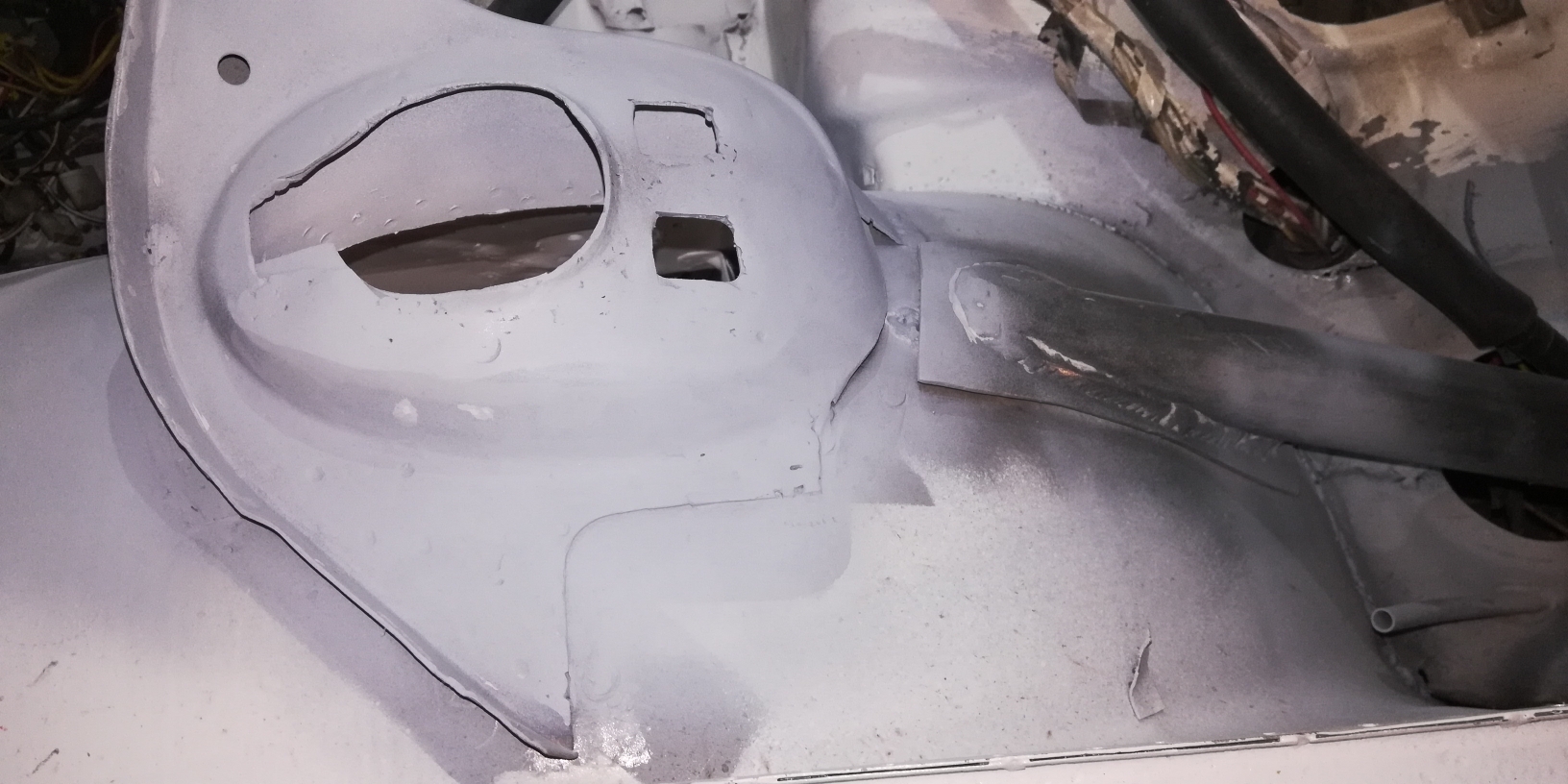 Congrats on another stage conquered. What is the heater setup like? That is one part I have not settled on yet. Basically the heater is a standard water heater core fed by 2 heater hoses coming from the v8. They feed down the driver’s side long and up into the front above the driver’s feet. They feed the custom box shown, (maybe a hot rod product?). That feeds what I believe are standard 914 air distribution valves. Here are a couple pictures before I molested it... Thanks for the pictures. So the hot water comes from the rear? I wonder if there’s any way to come from the front by the radiator? Generally cars get heat to the heater core before the radiator so it heats up the passengers first. Also with the thermostat opening at 160-200+ degrees that could take significant time before air starts blowing hot. Thus these systems take hot air directly from the engine and feed it back into the system between the thermostat and the block. There are 914 guys who have taken the easy route of pulling the heat closer to the radiator and I remember hearing that complaint. Thanks for the information. I have never worked with water before (IMG:style_emoticons/default/smile.gif) So run from the back it is. Unless, running an electric water pump changes things as I believe the heater core was fed off a section of the water pump. I'm confused LOL |